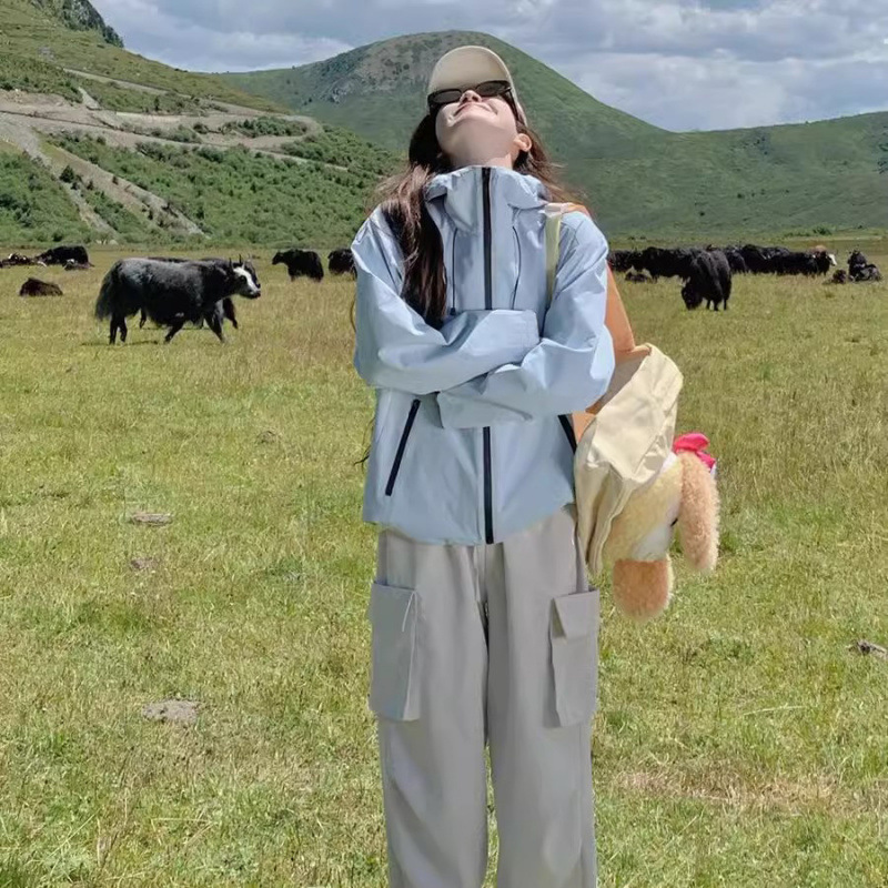 여성을위한 야외 후드 재킷 봄과 가을 새로운 작은 방풍 재킷 재킷 탑 여성 작업복 윈드 브레이커스토어 가기