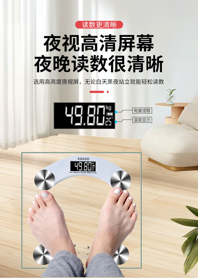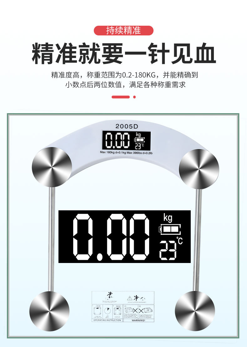 새로운 가정용 사각형 투명 유리 간단하고 아름다운 지능형 체중 측정 정확한 측정 전자 저울 체중계