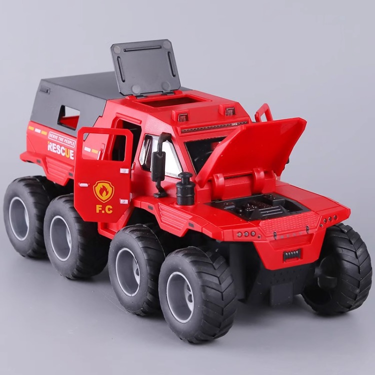 • [음향 및 조명효과/관성주행/도어열림] 빨간색 8륜 충격흡수 장갑 픽업트럭
