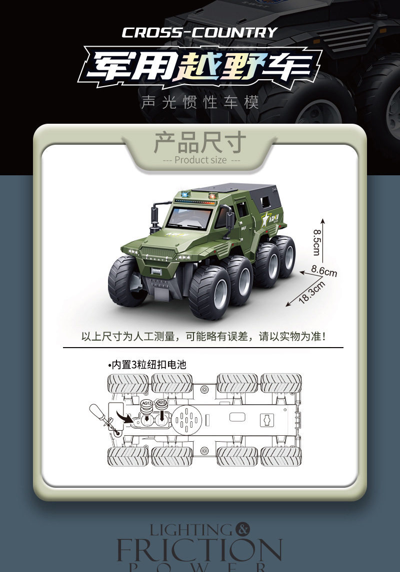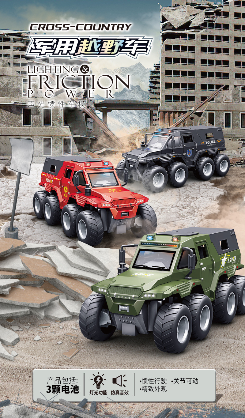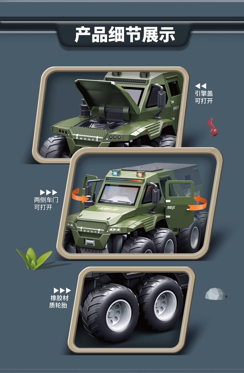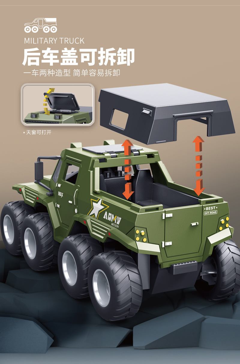 • [5도어/음향 및 조명효과/관성주행] 녹색 6륜 충격흡수 오프로드 차량