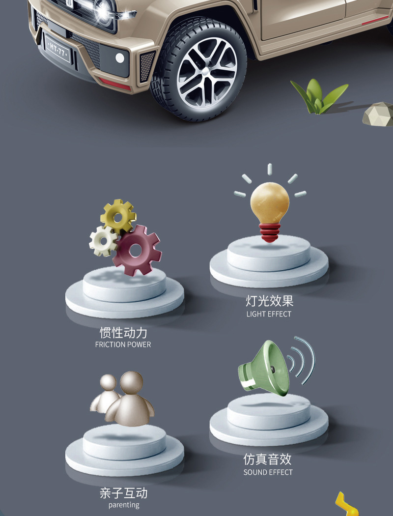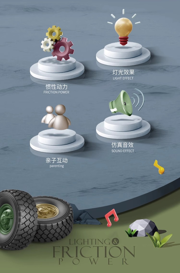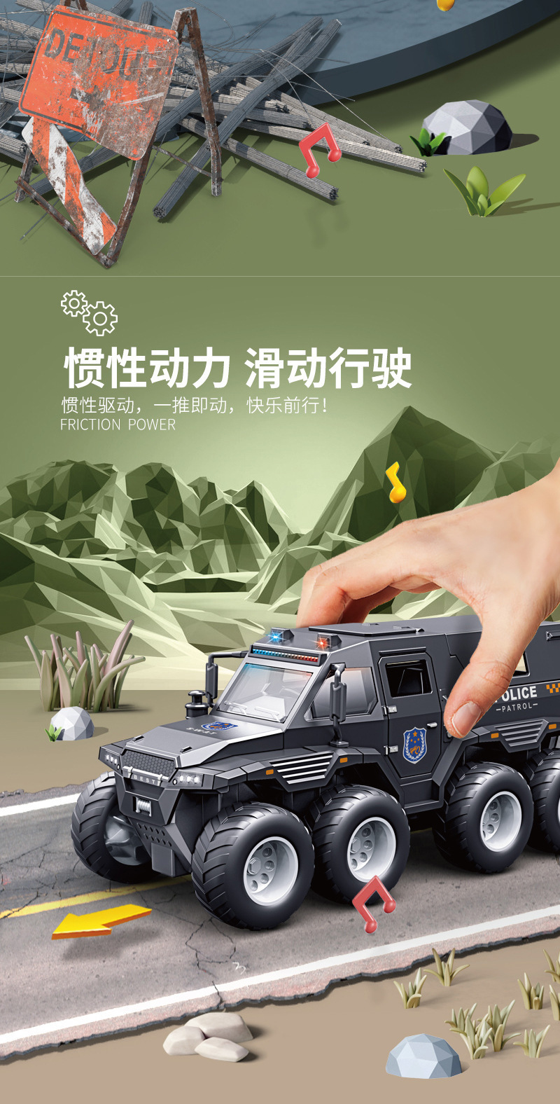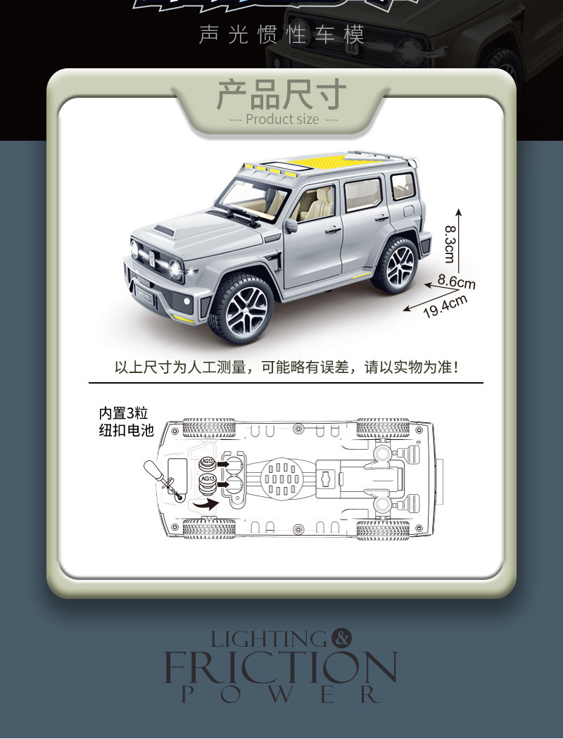 • [5도어/음향 및 조명효과/관성주행] 녹색 6륜 충격흡수 오프로드 차량