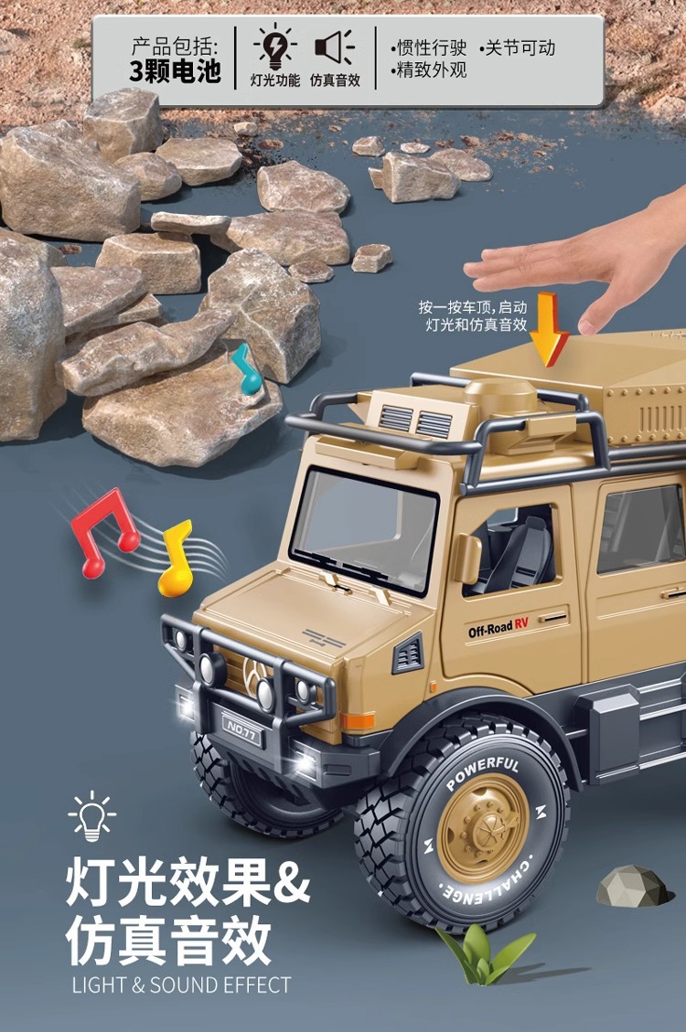 어린이 군사 모험 오프로드 RV 탱크 소리와 빛 관성 도어 개방 시뮬레이션 지프 장난감 모델 노점