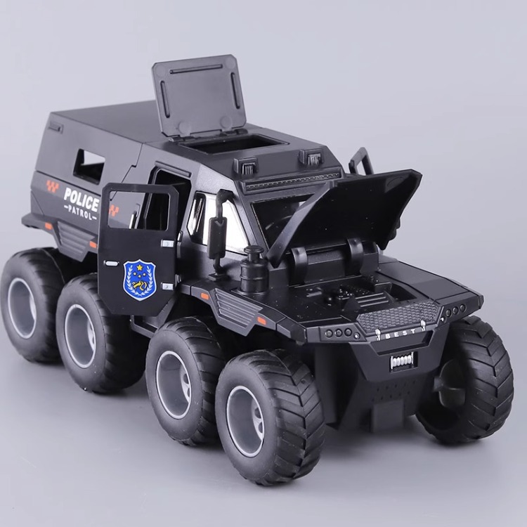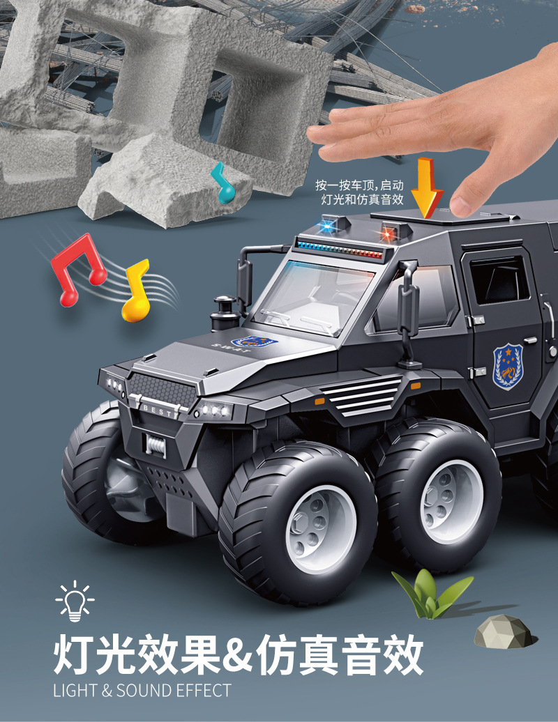 • [음향 및 조명효과/관성주행/도어열림] 검은색 8륜 충격흡수 장갑 픽업트럭