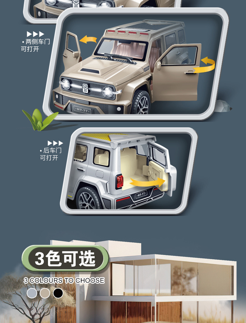 어린이 군사 모험 오프로드 RV 탱크 소리와 빛 관성 도어 개방 시뮬레이션 지프 장난감 모델 노점스토어 가기