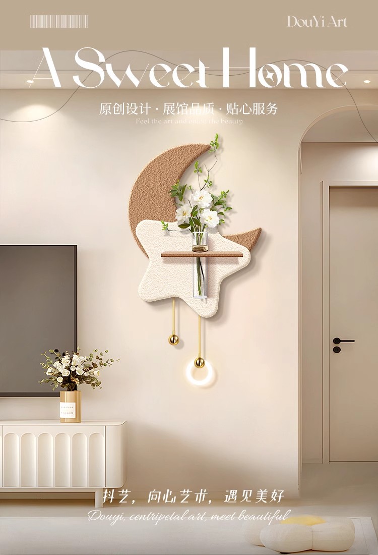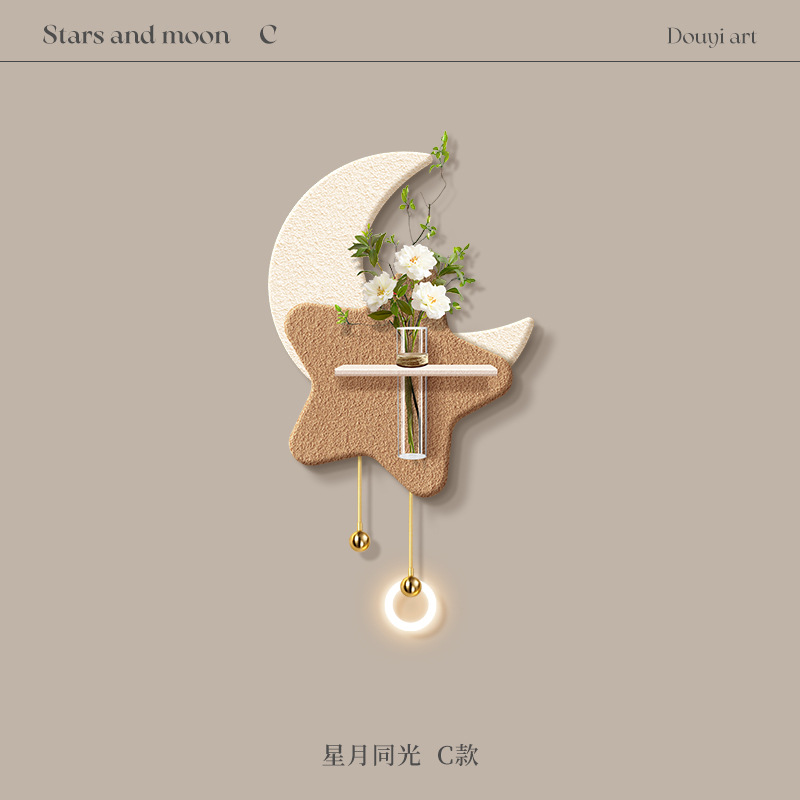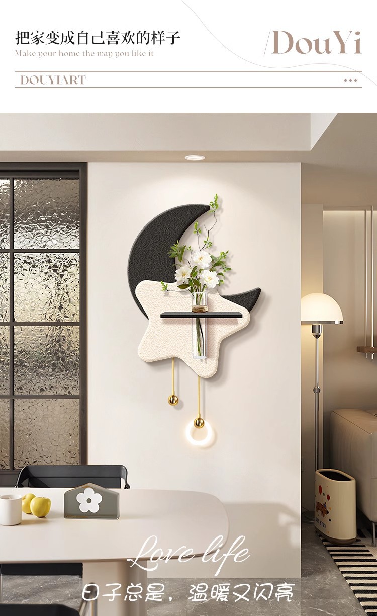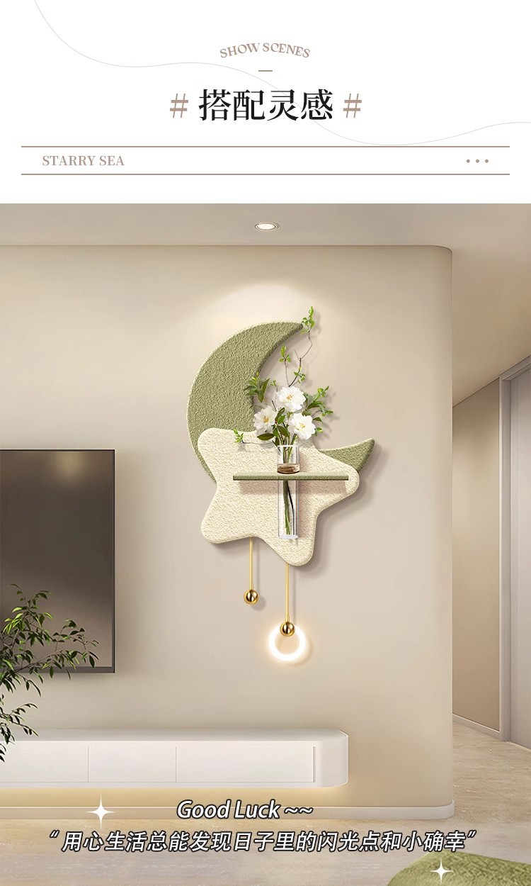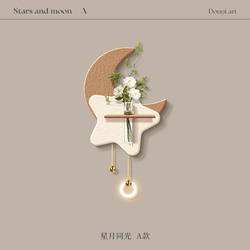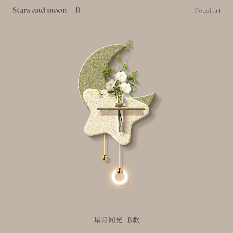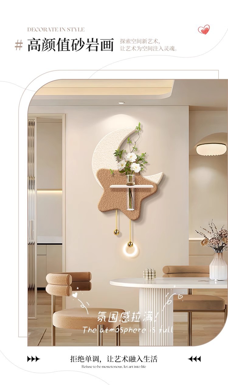 크림 스타일 거실 TV 배경 벽 장식 그림 수경 녹색 식물 입구 교수형 그림 하이 엔드 문 벽 램프 교수형 장식스토어 가기