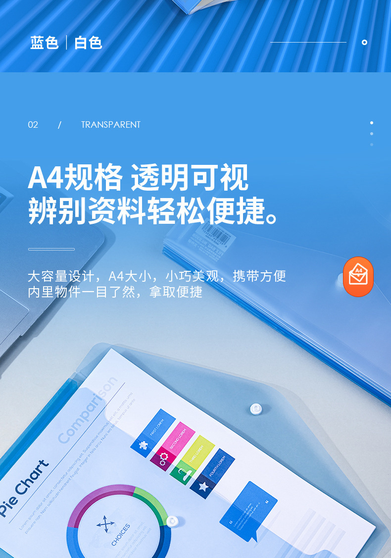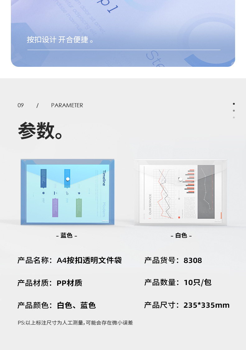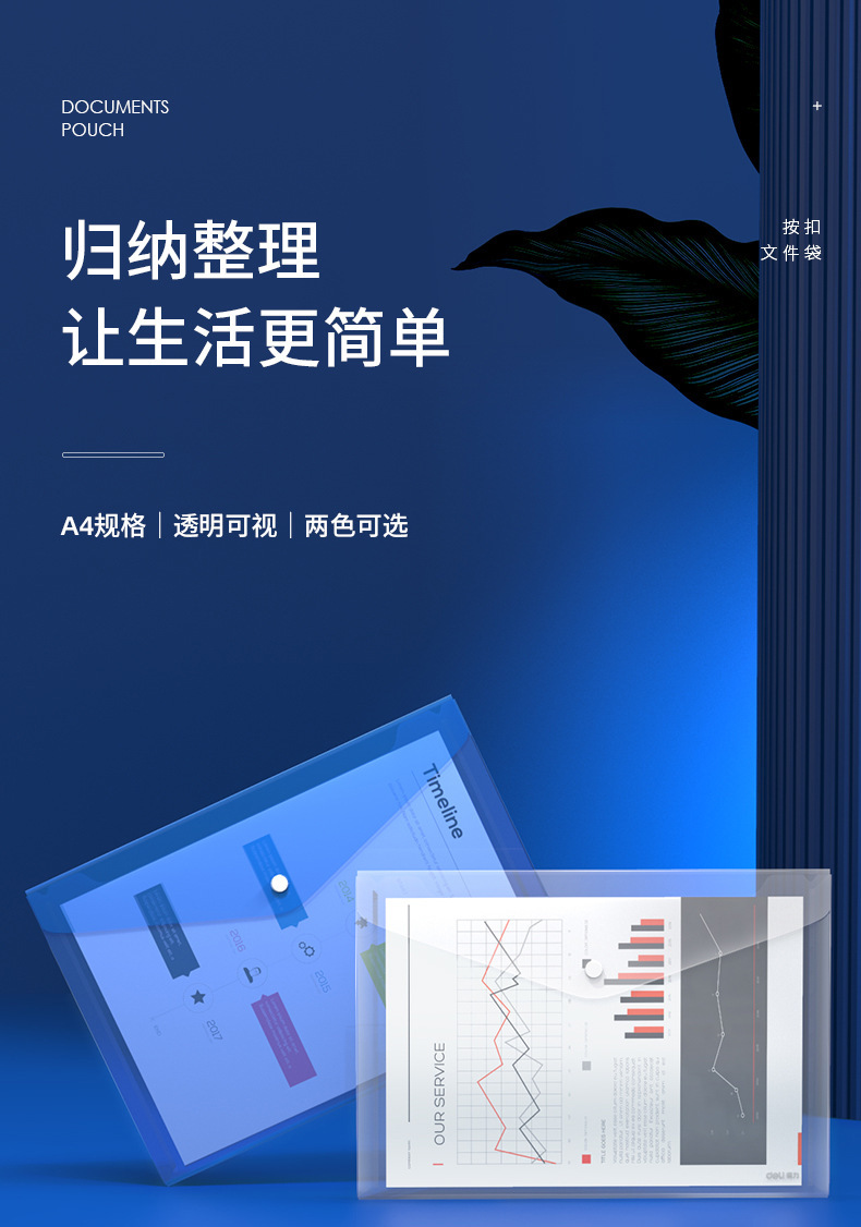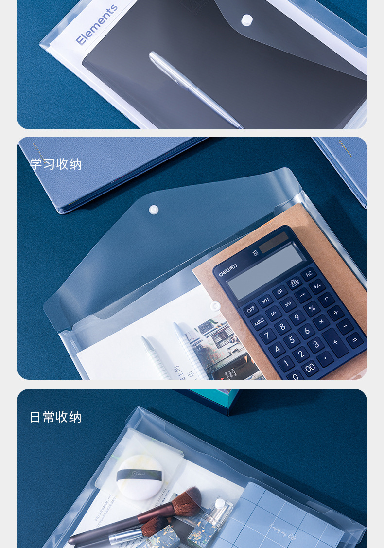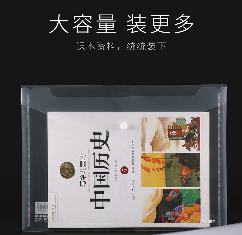 델리 8308 투명 A4 스냅 파일 가방 버튼 정보 가방 주제 가방 보관 가방 스냅 가방 파일 가방