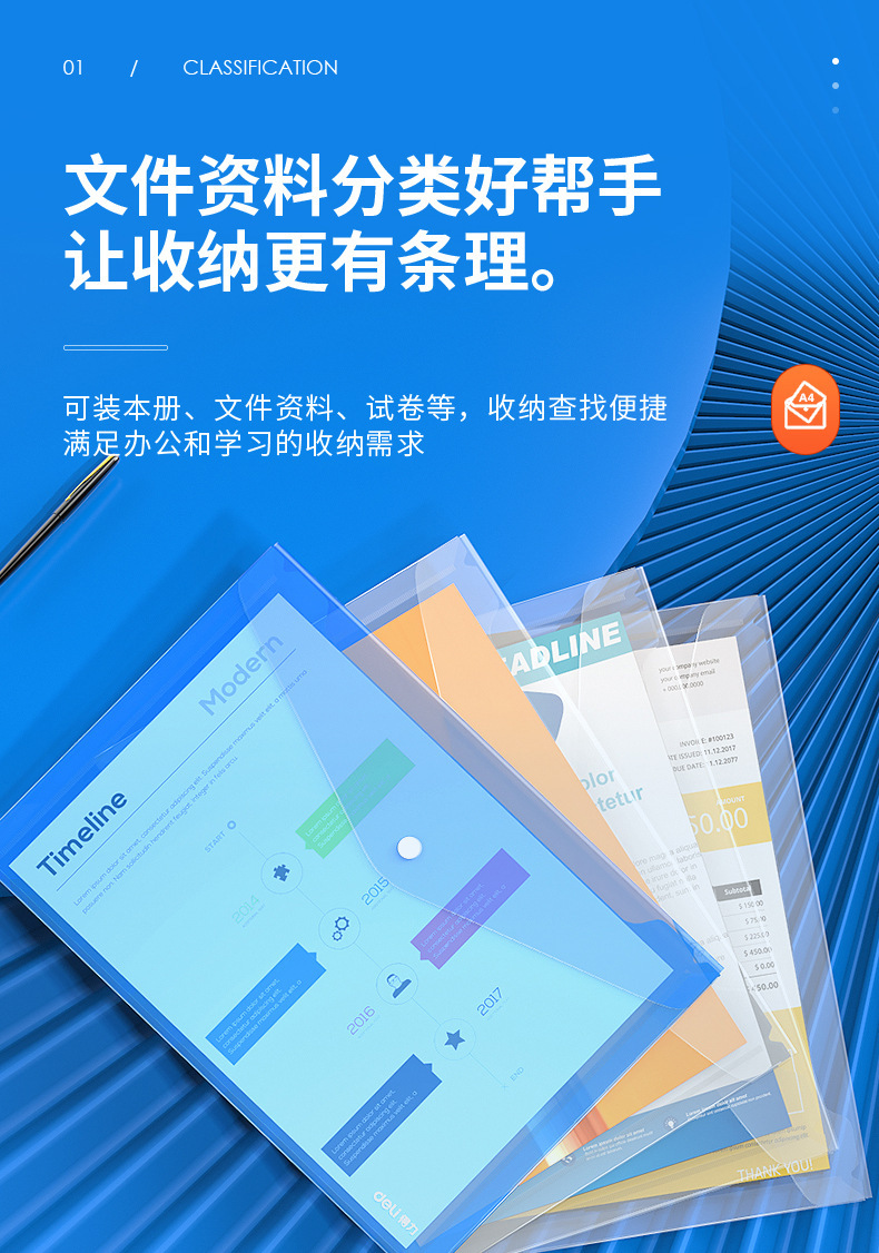 델리 8308 투명 A4 스냅 파일 가방 버튼 정보 가방 주제 가방 보관 가방 스냅 가방 파일 가방스토어 가기