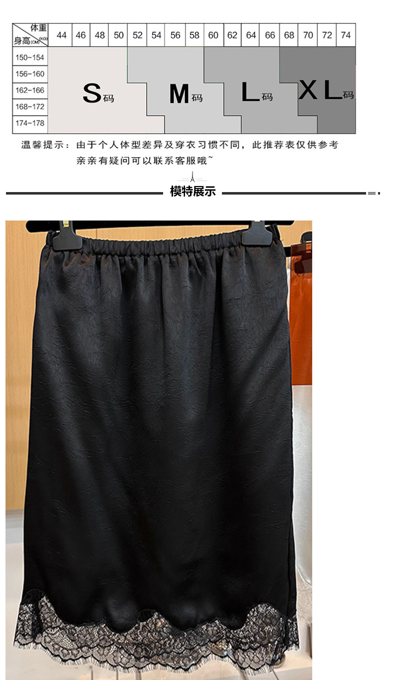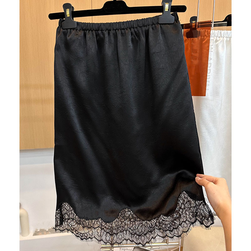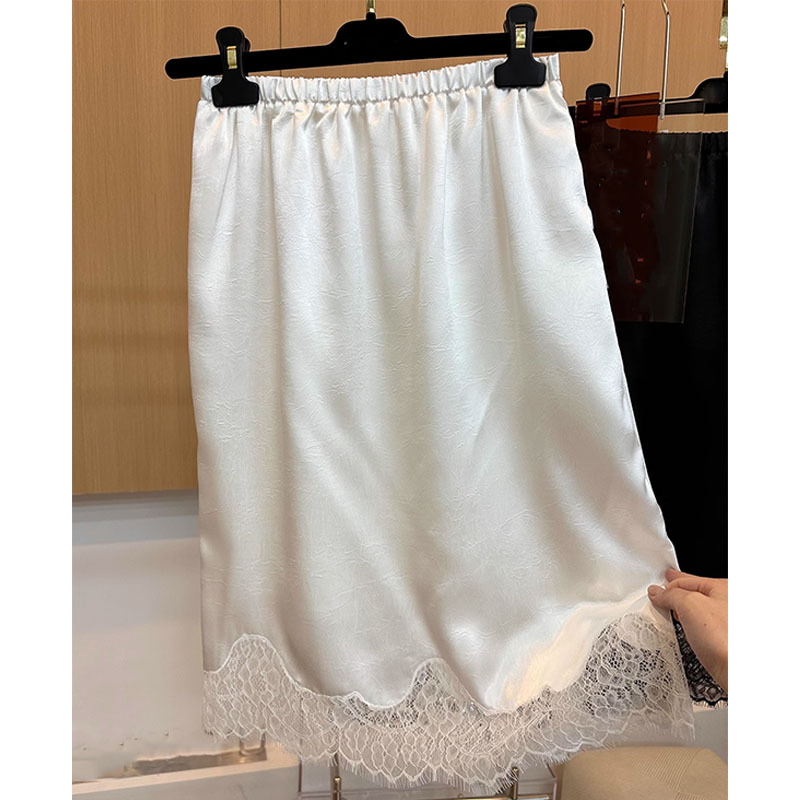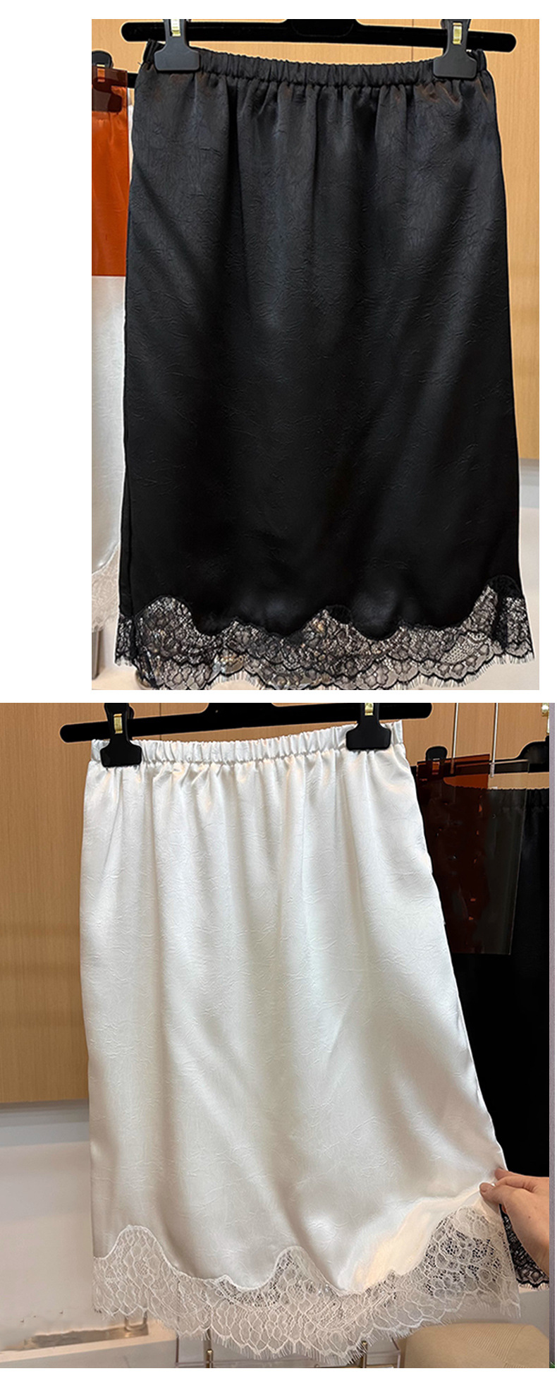 심천 2025 새로운 Nanyou 여성 유럽 스타일 크로 셰 뜨개질 레이스 스플 라이스 하이 웨이스트 새틴 자카드 a 라인 스커트 여성용스토어 가기