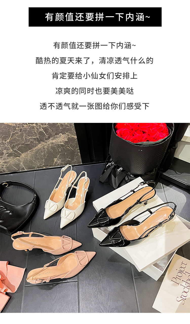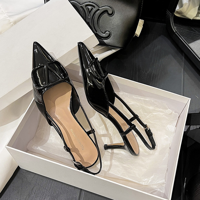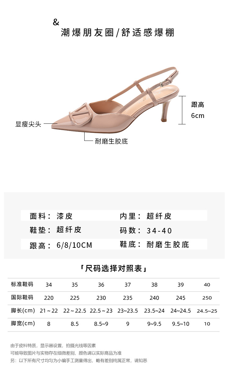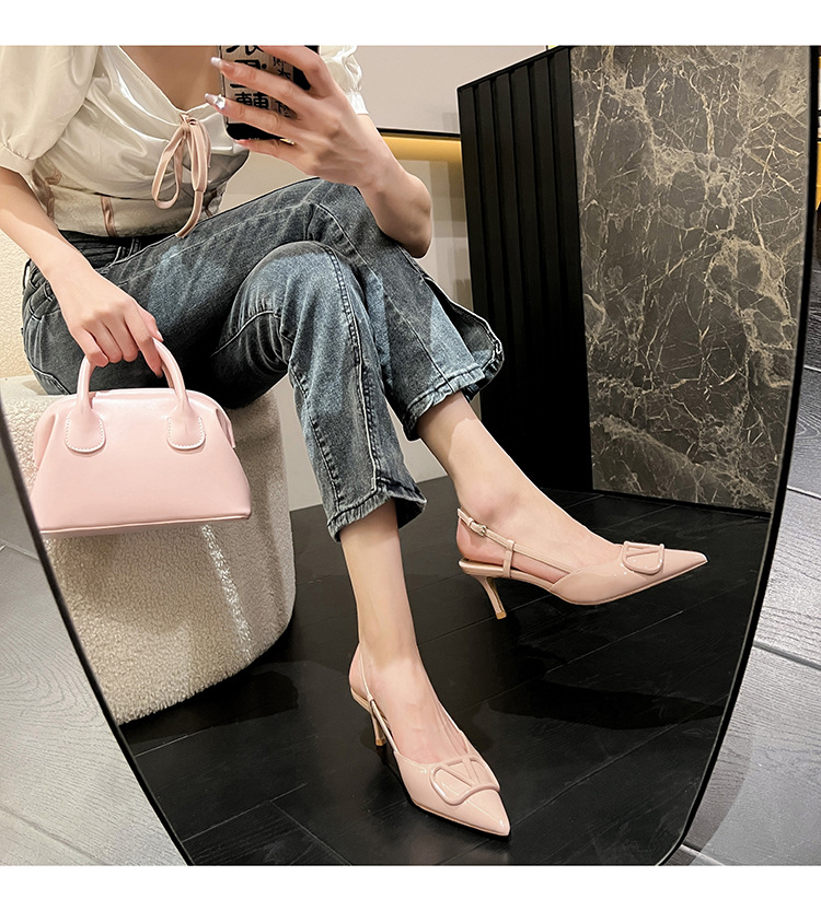 Kanglida vjia V 버클 누드 컬러 하이힐 여성용 다용도 프렌치 포인티드 슈즈 원라인 스틸레토 힐 샌들