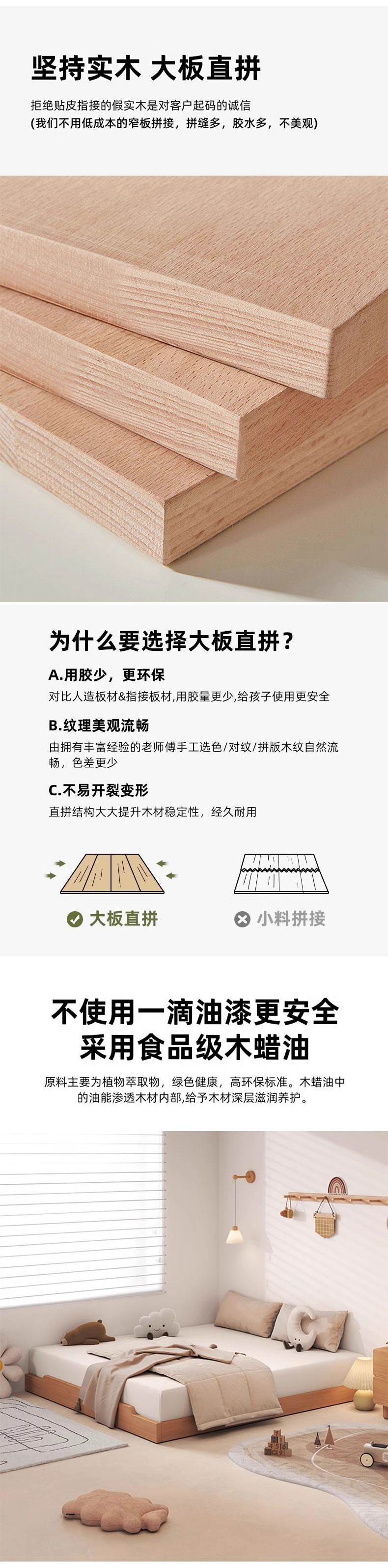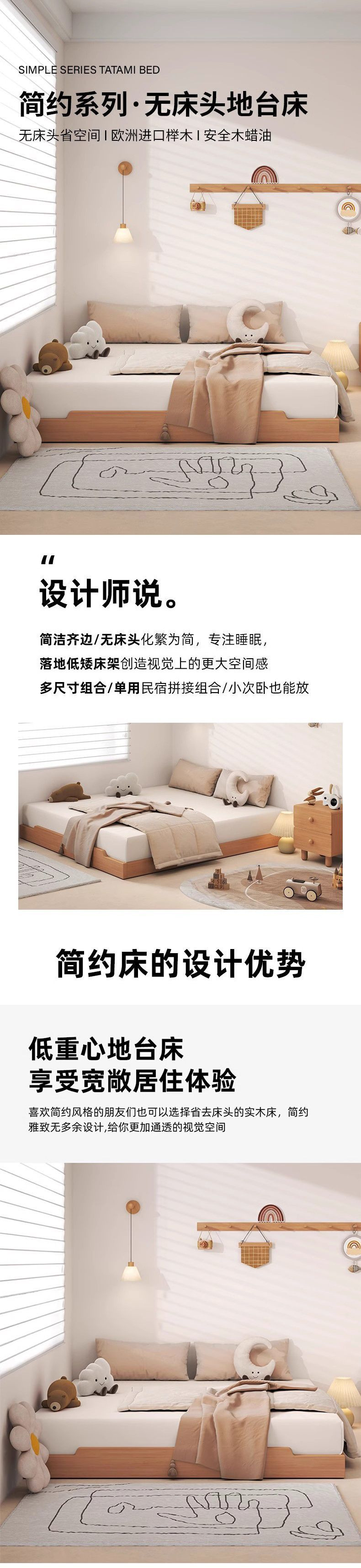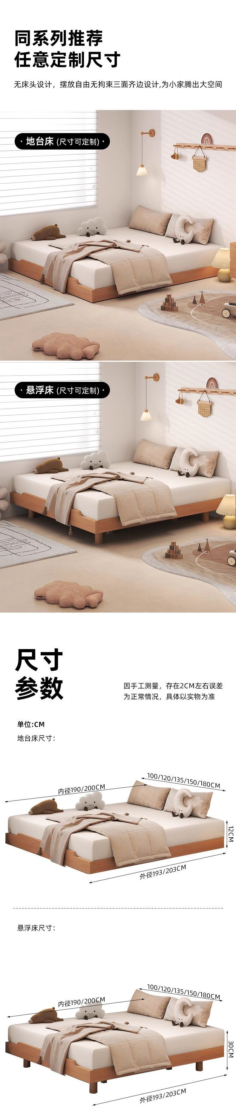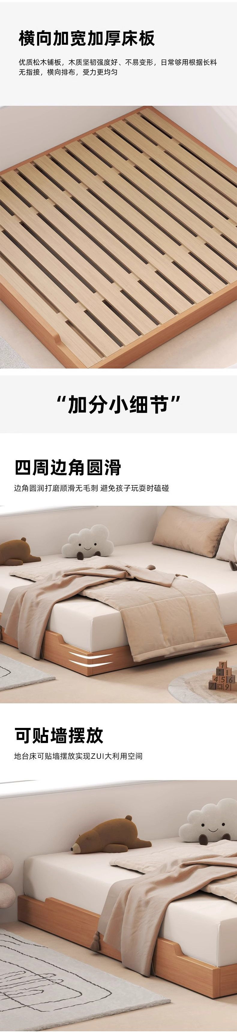 • 원목은 맞춤형 싱글 침대 + 더블 캐비닛 프레임 구조를 지원합니다.