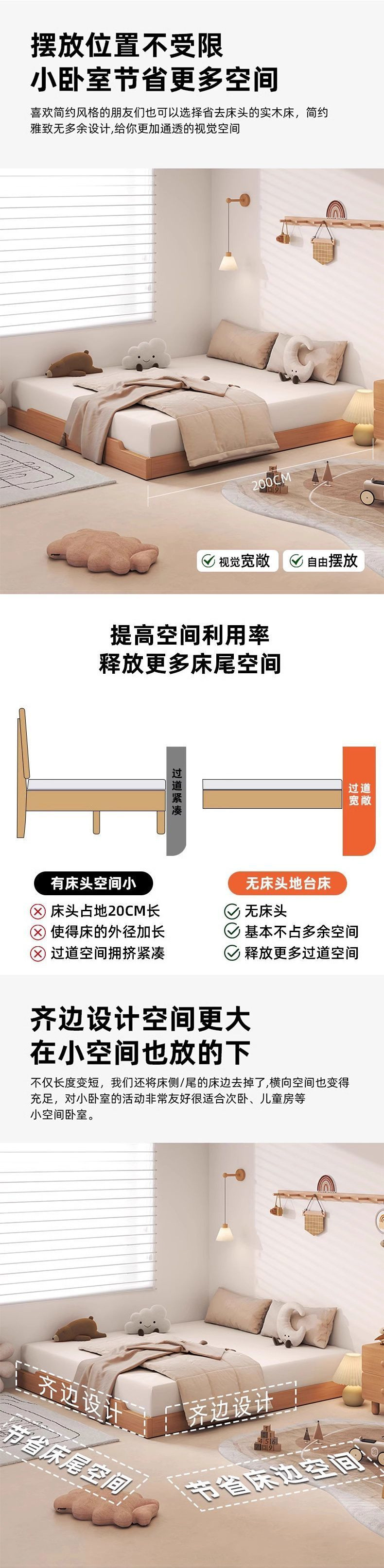 • 단단한 나무는 맞춤형 싱글 침대 + 20cm 스프링 매트리스 프레임 구조를 지원합니다.