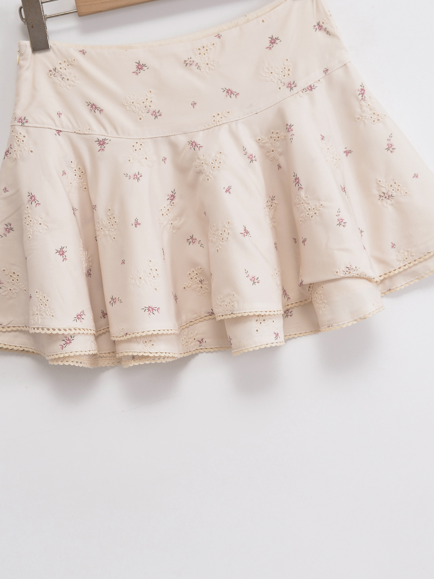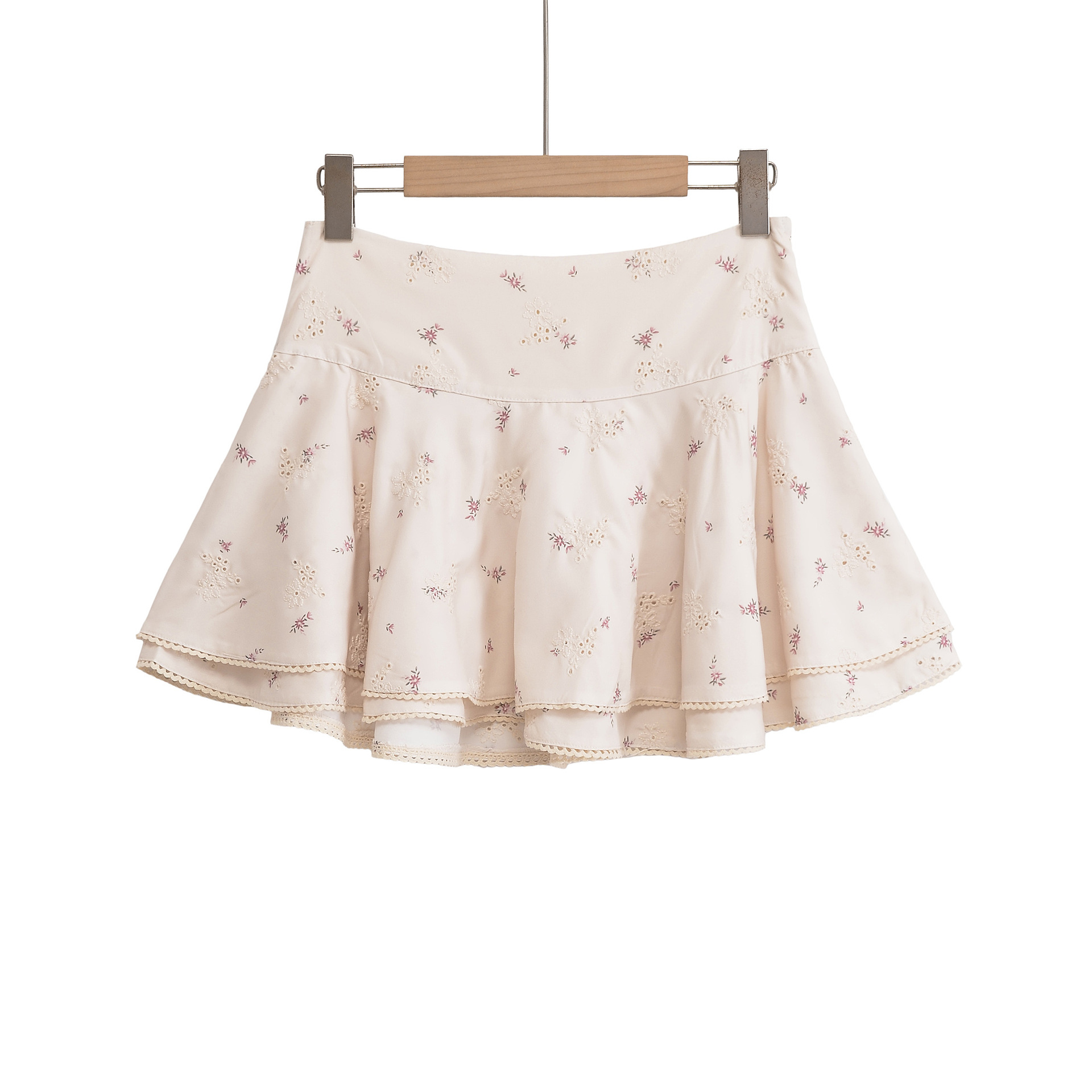국경 간 유럽과 미국 대외 무역 여성 의류 2025 새로운 여름 스타일 달콤한 스타일 대비 색상 자수 레이어드 밑단 미니 스커트스토어 가기