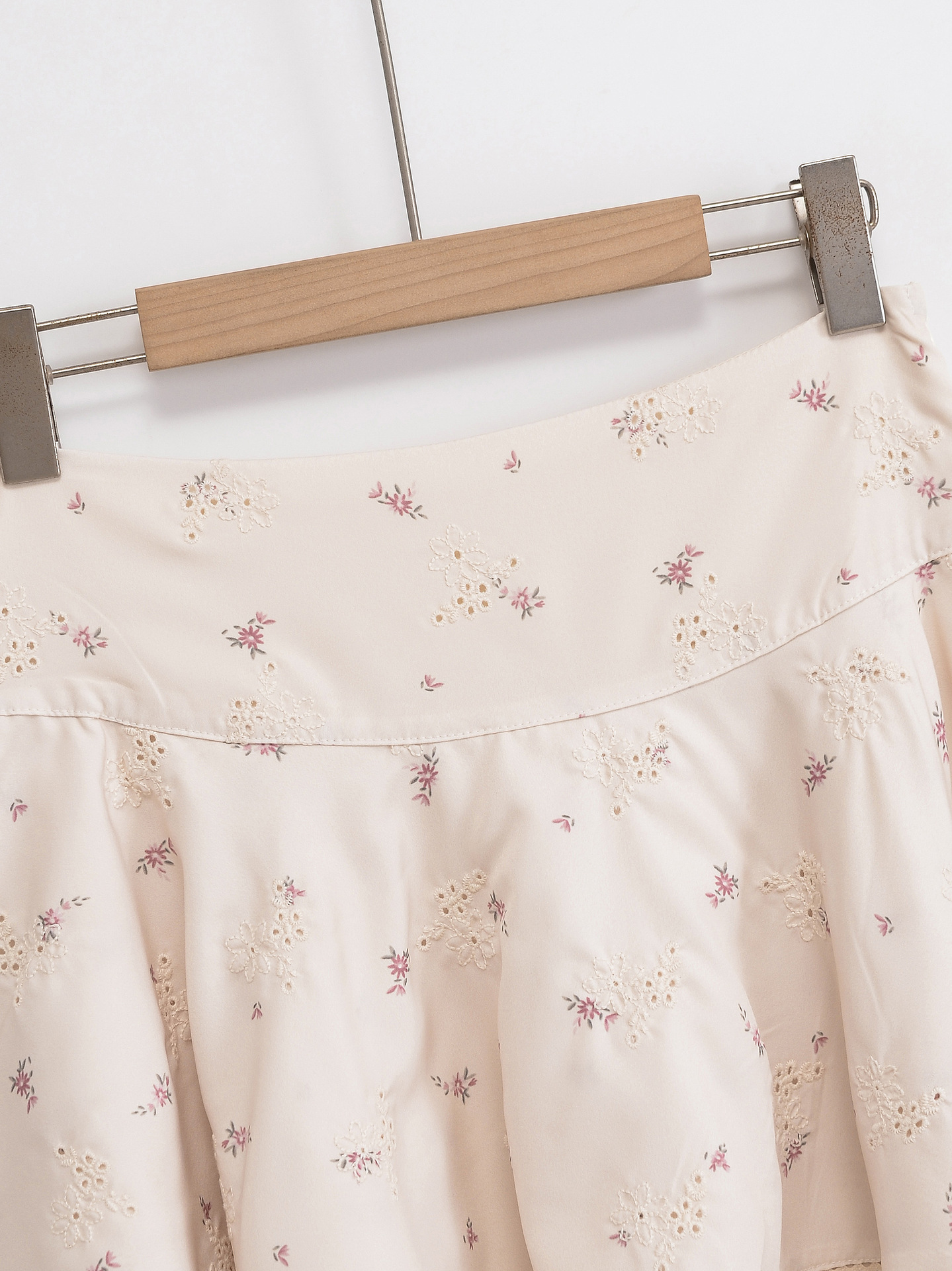 국경 간 유럽과 미국 대외 무역 여성 의류 2025 새로운 여름 스타일 달콤한 스타일 대비 색상 자수 레이어드 밑단 미니 스커트