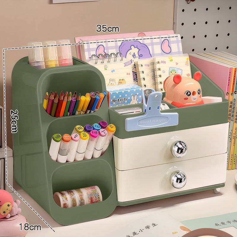 • 올리브그린 [기울어진 펜홀더 + 상단수납 + 2단서랍] 대형사이즈