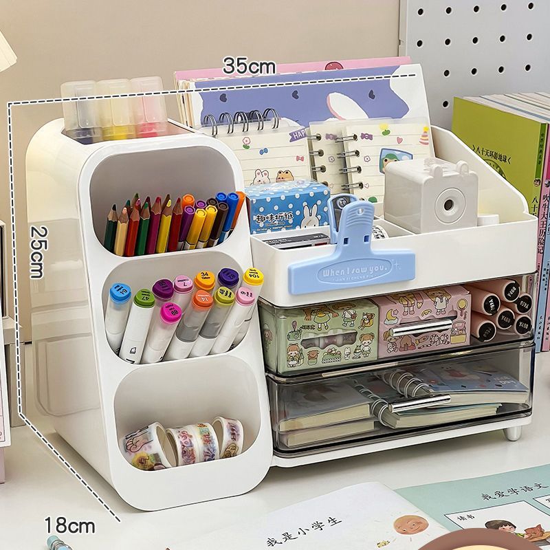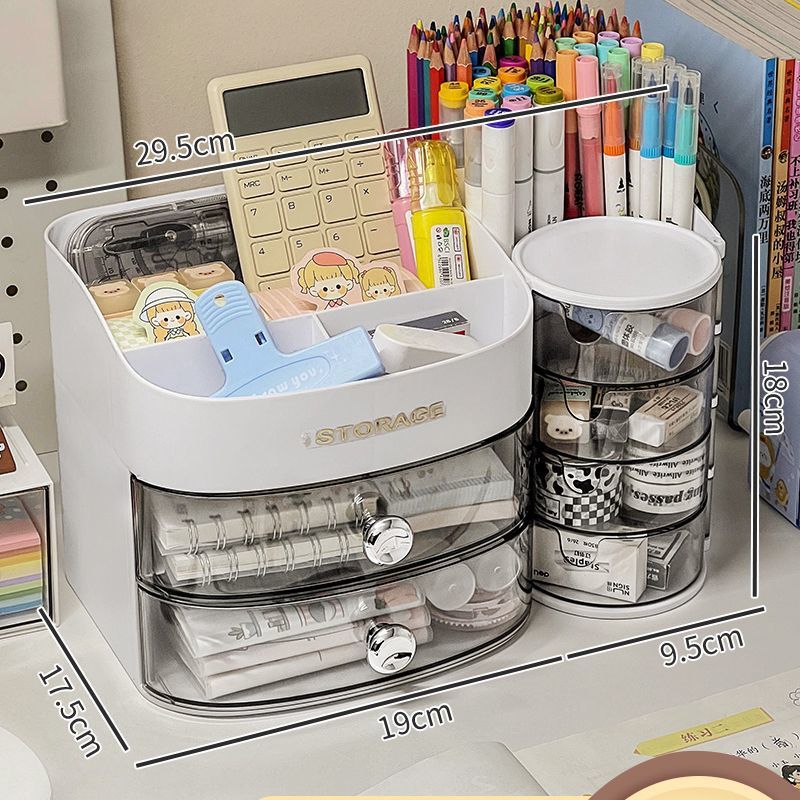 • 펄화이트 [펜홀더+상단수납+회전서랍] M사이즈