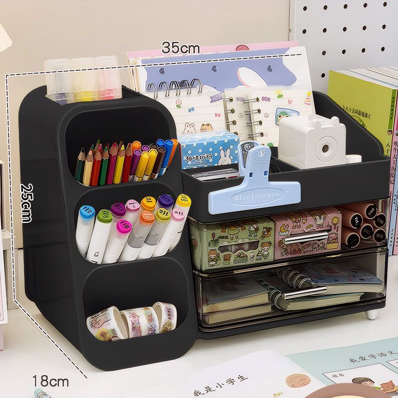• 쿨블랙 [비스듬히 삽입되는 펜홀더 + 상단수납 + 2단서랍] 대형사이즈