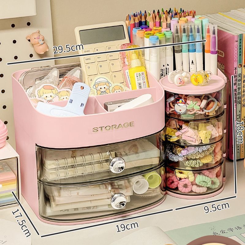 • 사쿠라 핑크 [펜홀더+상단수납+회전서랍] 중형