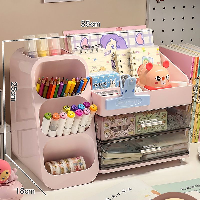 • 사쿠라 핑크 [비스듬한 펜홀더 + 상단 수납 + 2단 서랍] 대형 사이즈