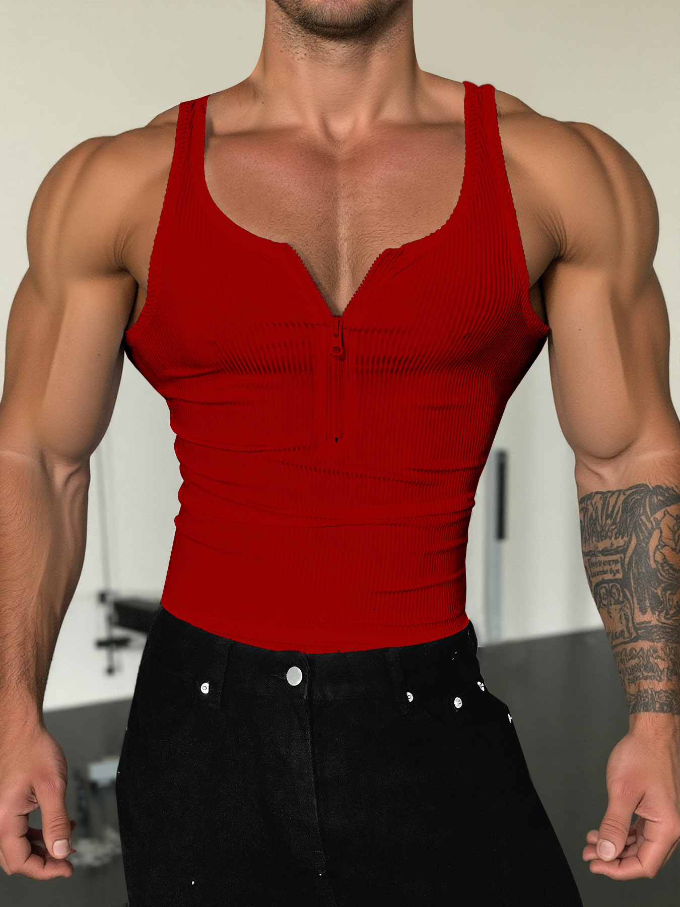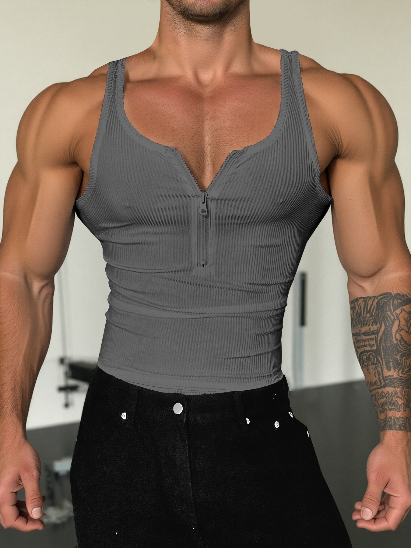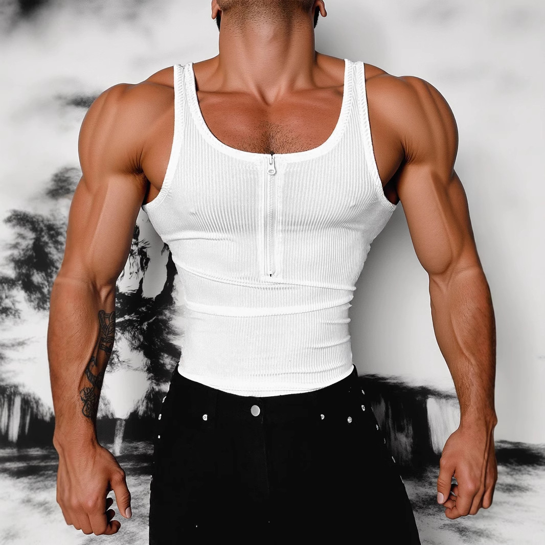 여름 남성 스포츠 피트니스 단색 민소매 브이넥 지퍼 아메리칸 스타일 골지 탑 아마존 독립 사이트스토어 가기