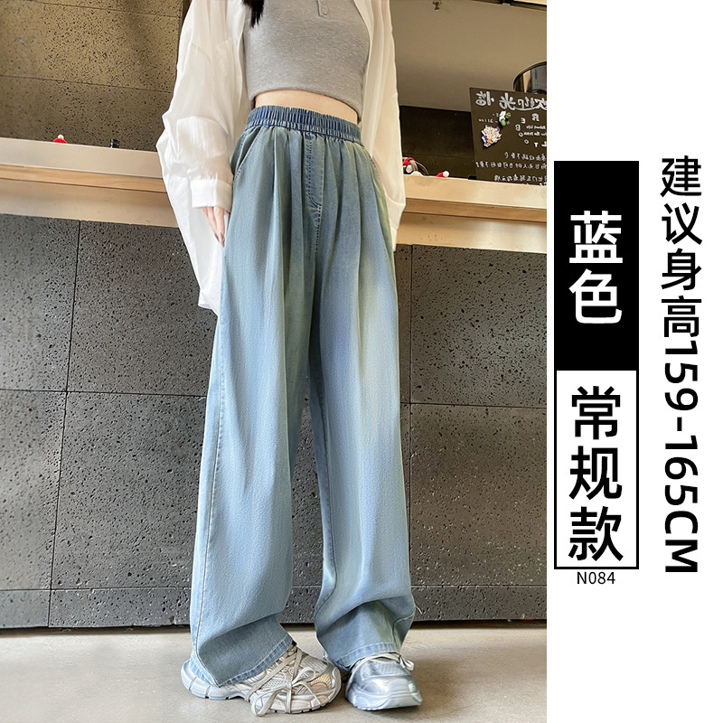 여름 여성용 리오셀 텐셀 청바지 얇은 루즈 대형 지방 mm 스트레이트 레그 아이스 실크 와이드 레그 팬츠스토어 가기