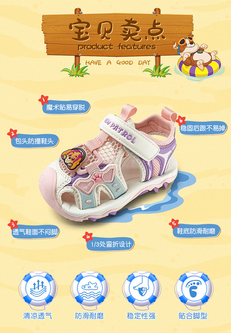 Paw Patrol 어린이 신발 어린이 발가락 샌들 여름 2025 새로운 유행 어린이 메쉬 중공 소년 해변 신발스토어 가기