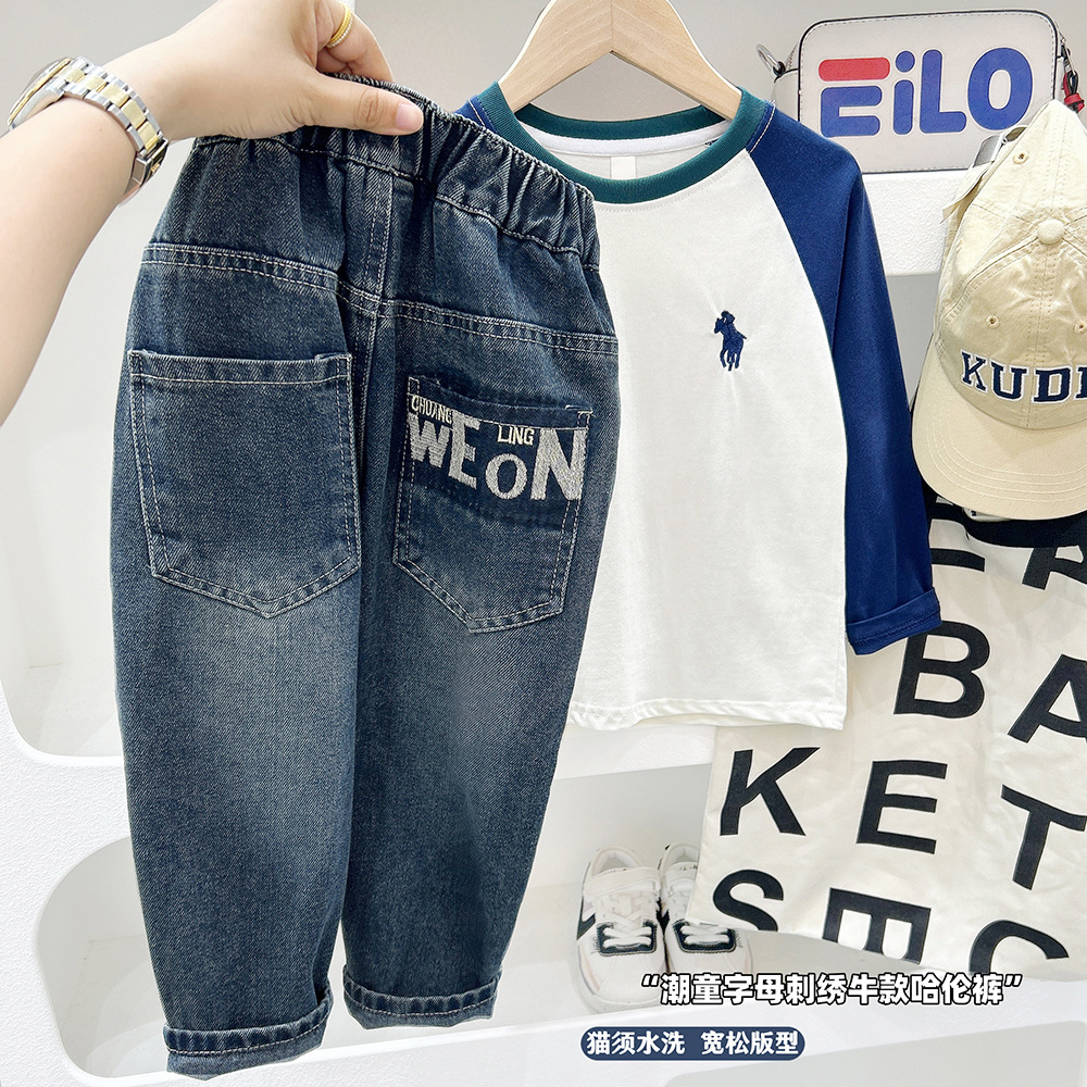 남아 가을 바지, 아동 청바지, 2025 봄 가을 신상품, 큰 아동용 초가을 얇은 스타일, 멋스럽고 캐주얼하며 트렌디함스토어 가기