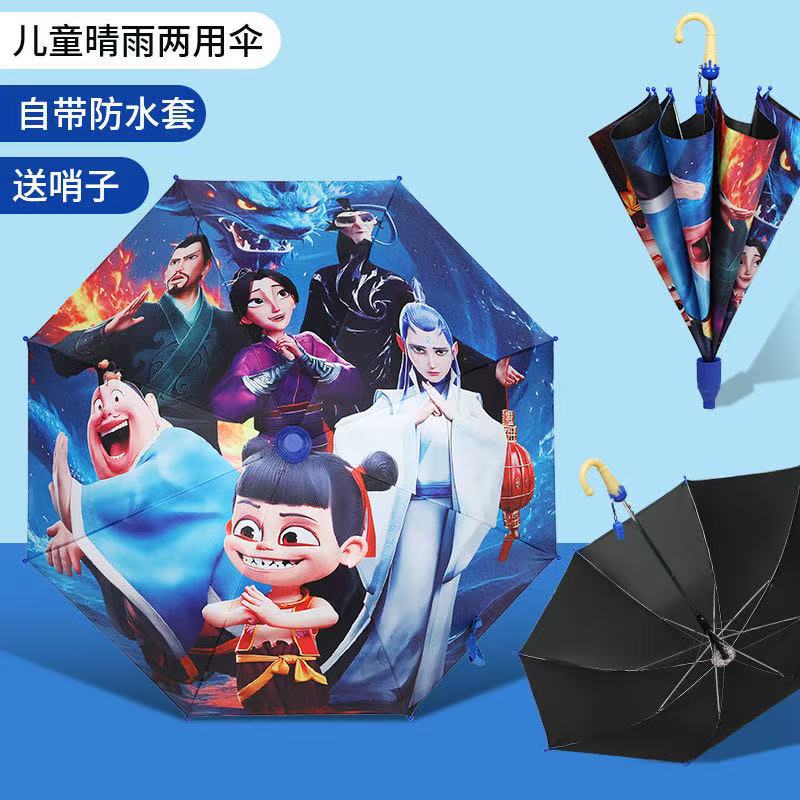 Na Zha Ao Bing 어린이 우산 만화 우산 초등학생 특수 비닐 태양 보호 접이식 긴 손잡이 우산 태양 우산스토어 가기