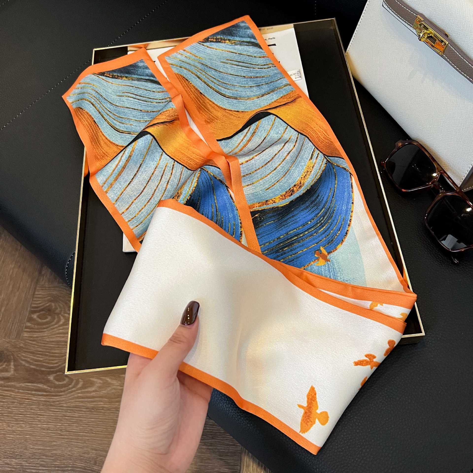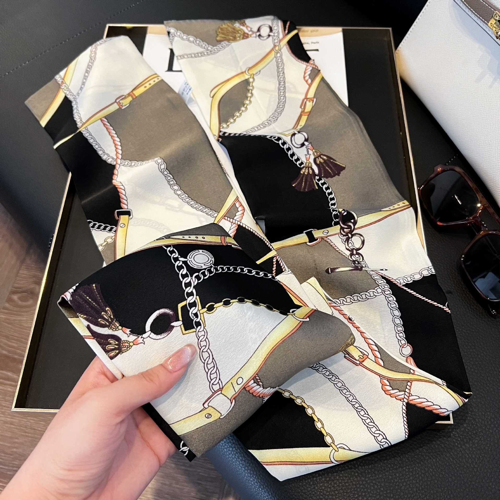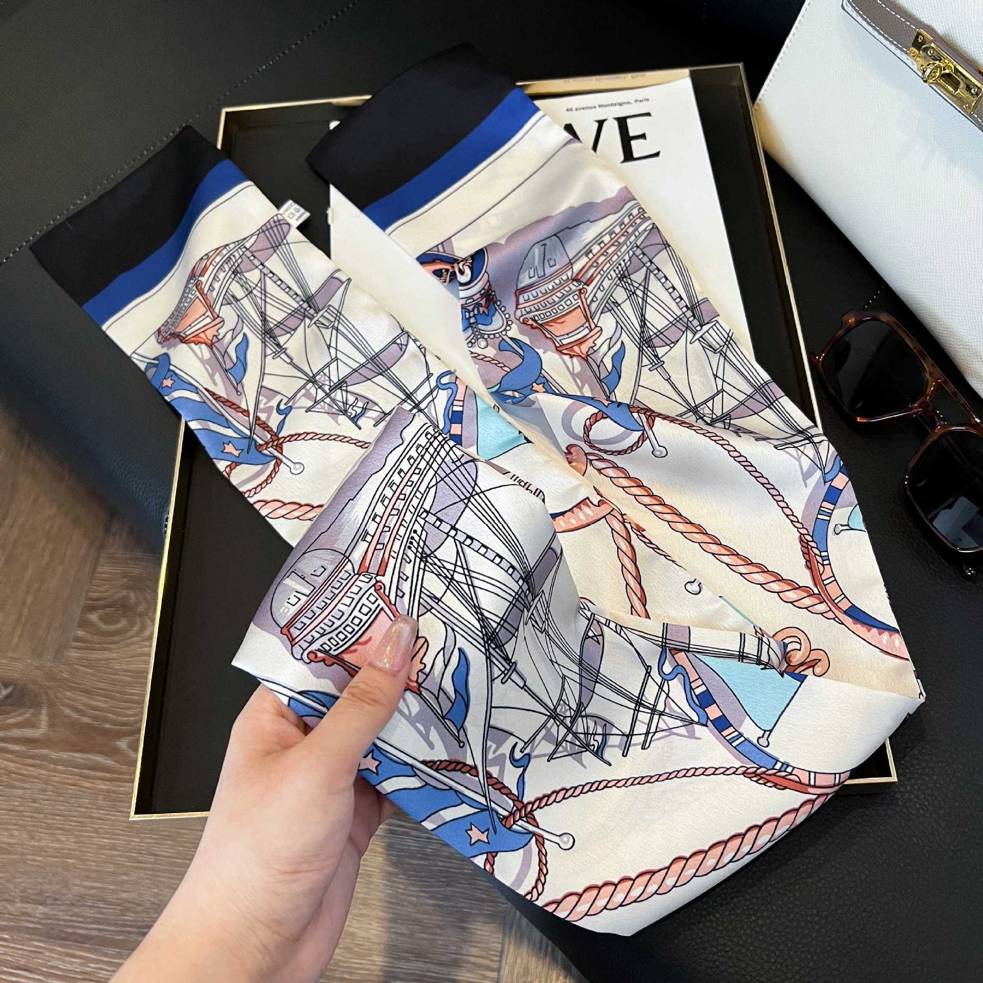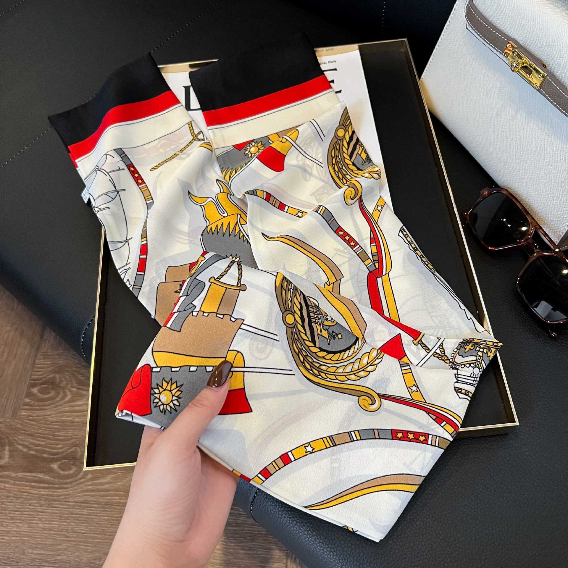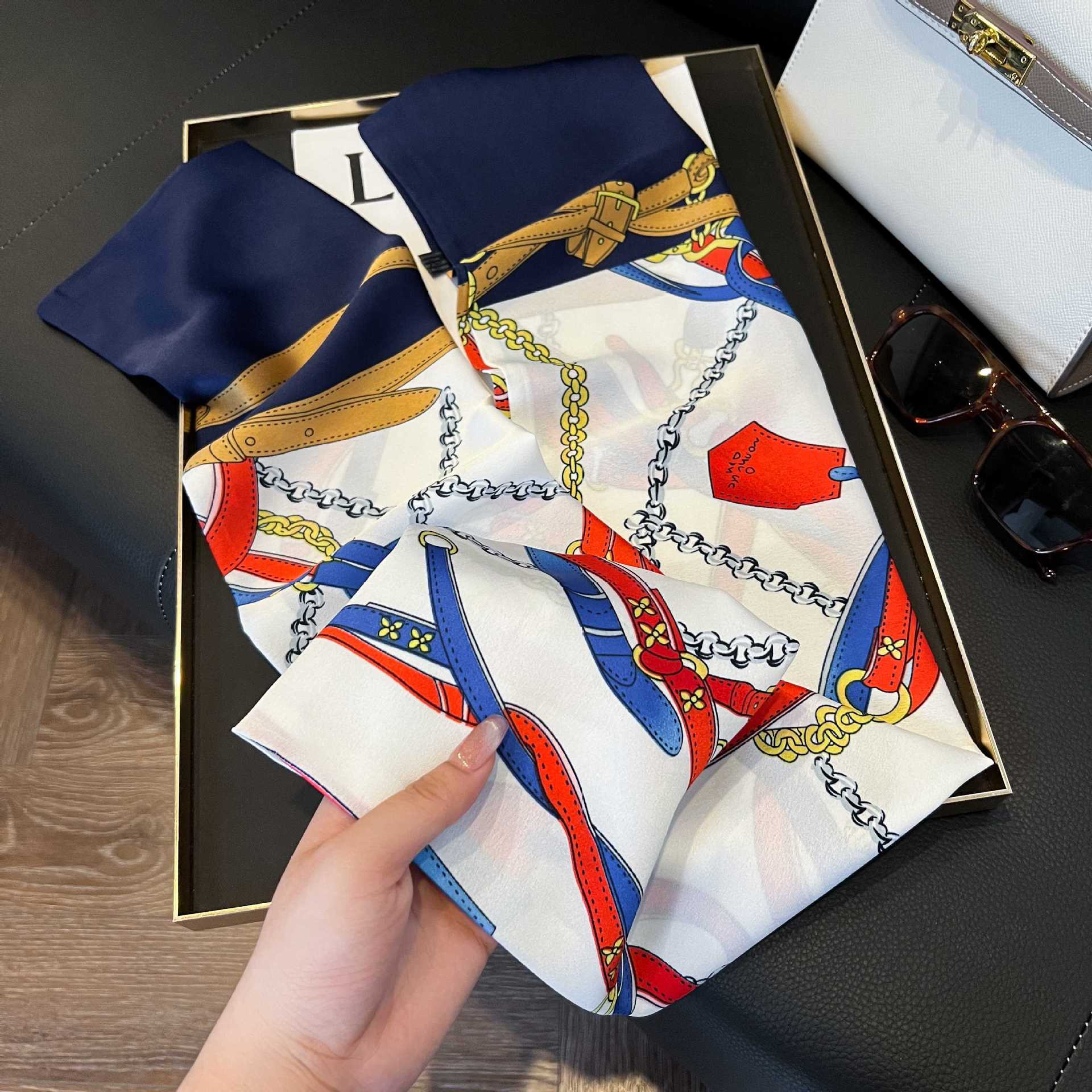 여성을위한 새로운 스타일의 실크 스카프 작은 긴 좁은 머리띠 봄, 가을 패션 엄마 스카프 여름 얇은 플러터 스카프 도매스토어 가기