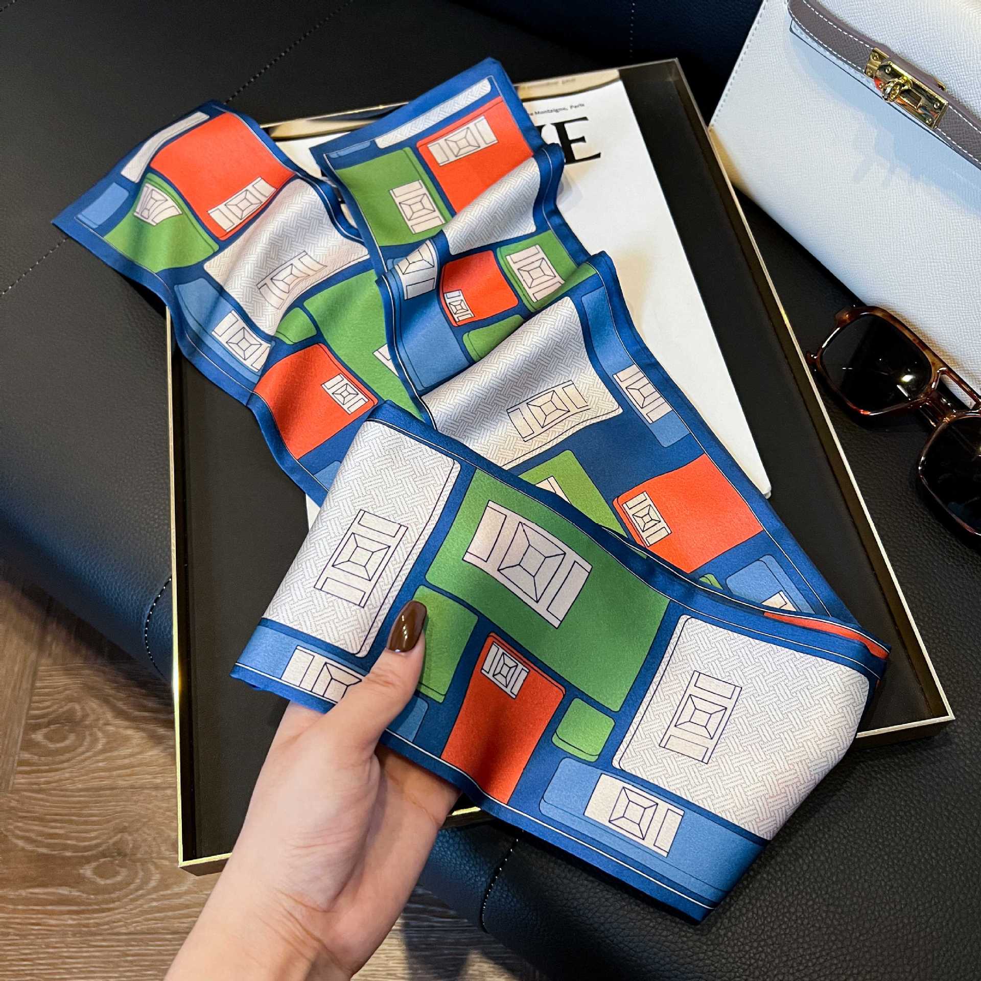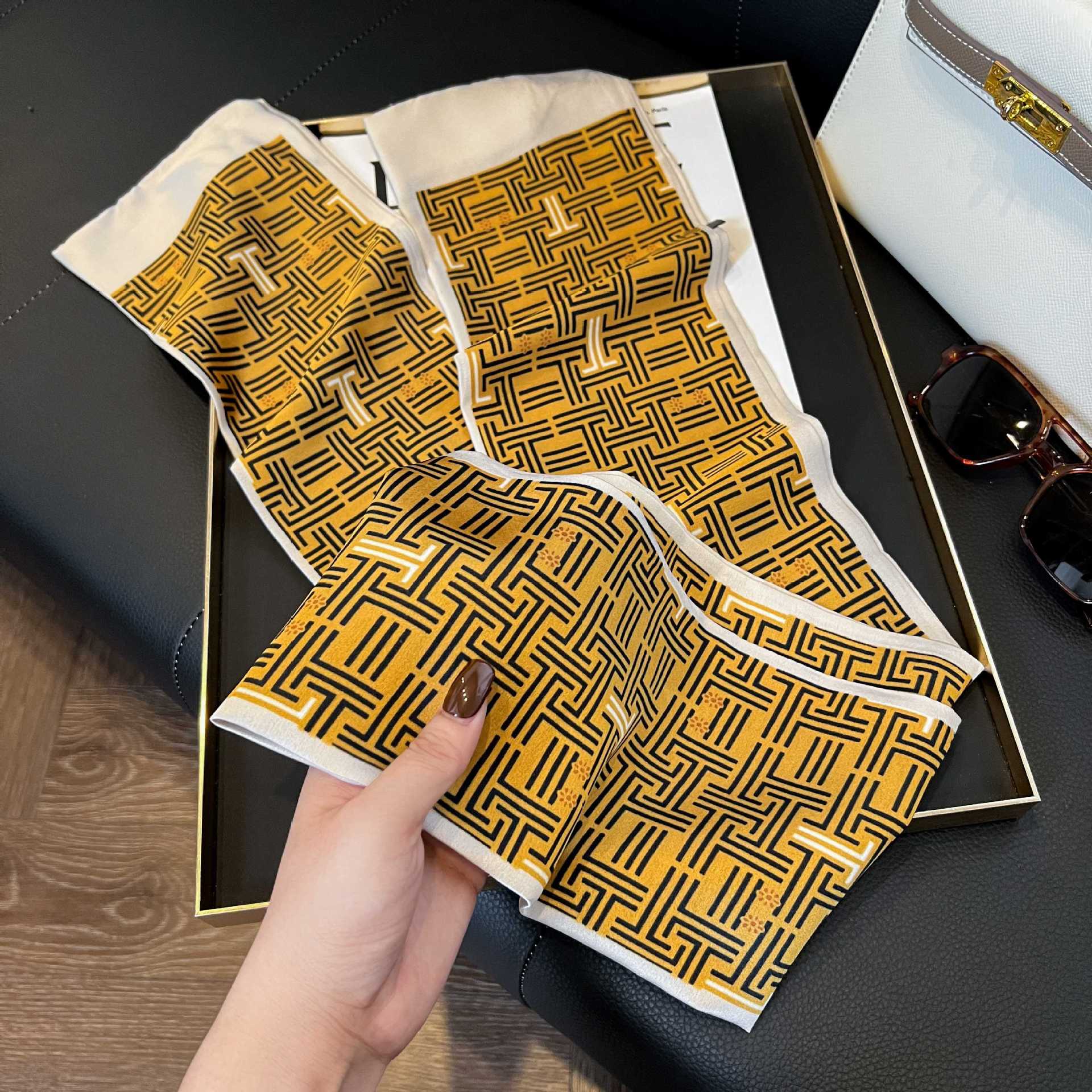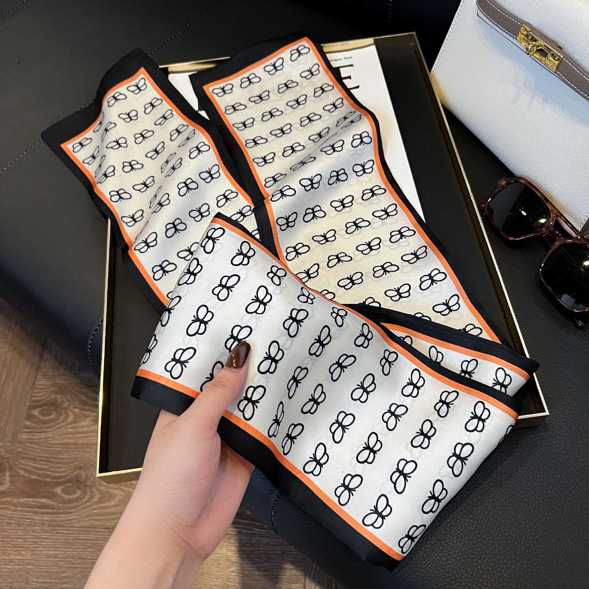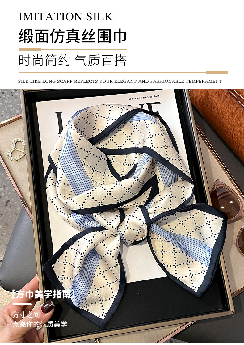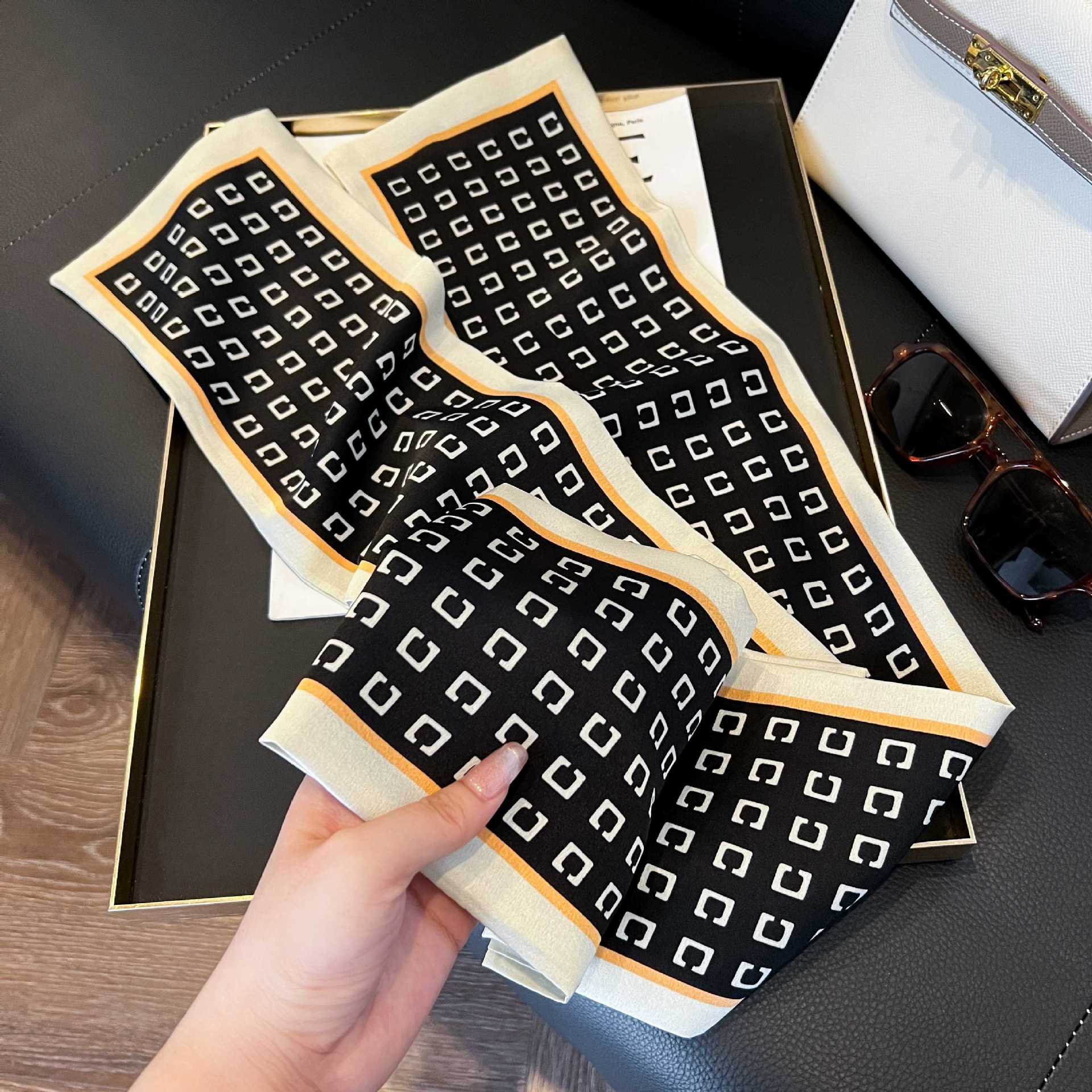 여성을위한 새로운 스타일의 실크 스카프 작은 긴 좁은 머리띠 봄, 가을 패션 엄마 스카프 여름 얇은 플러터 스카프 도매스토어 가기