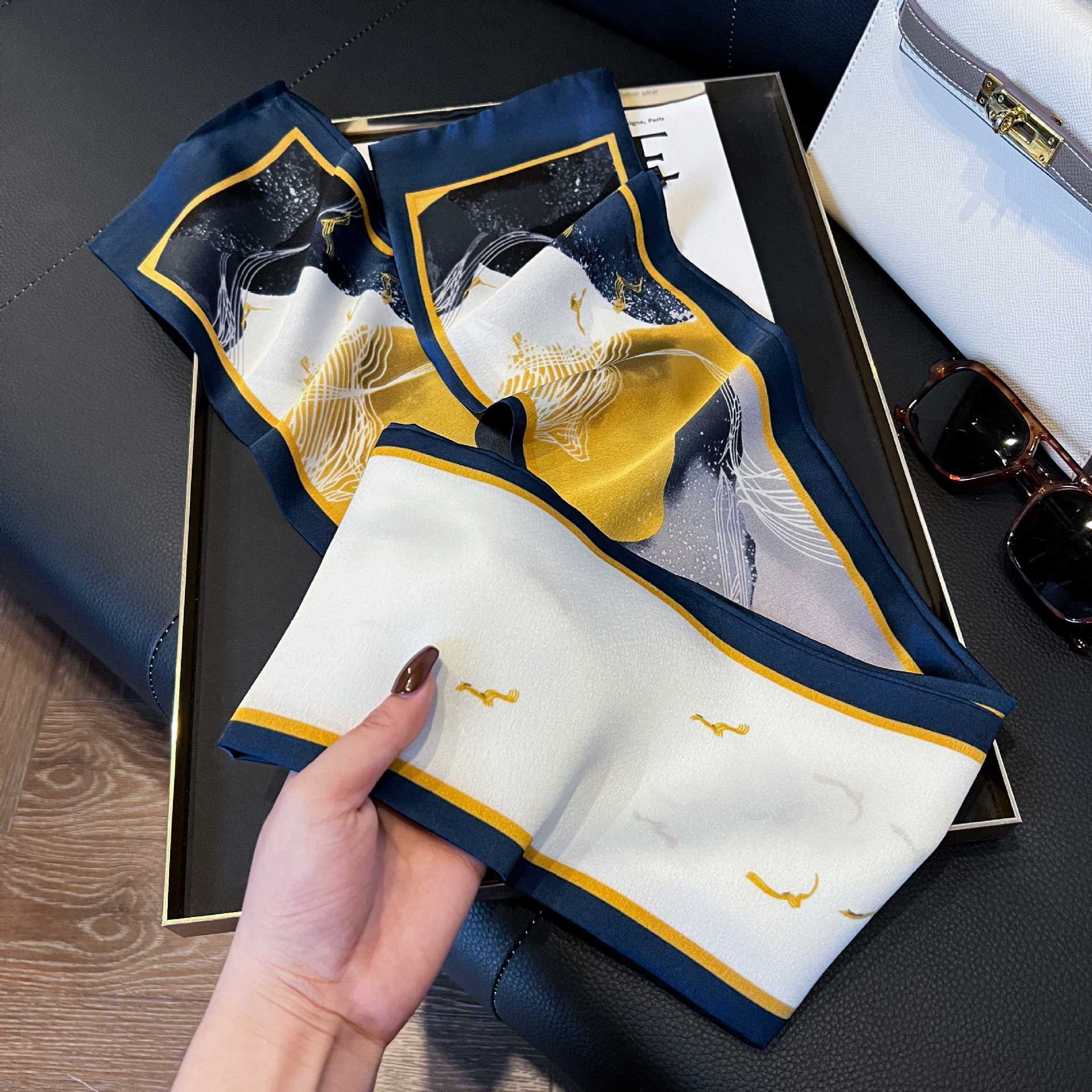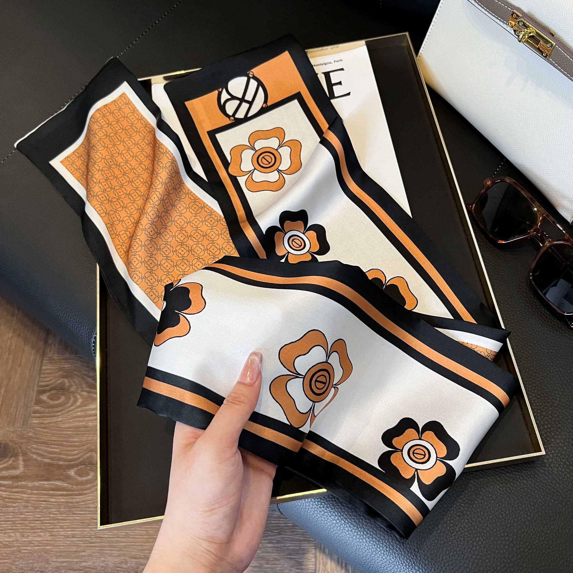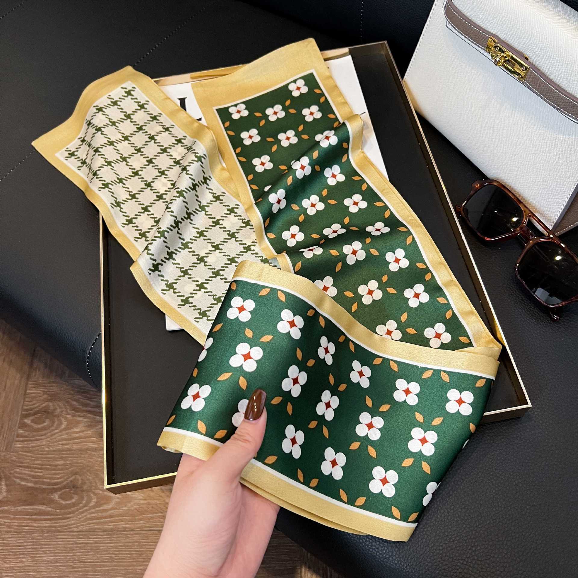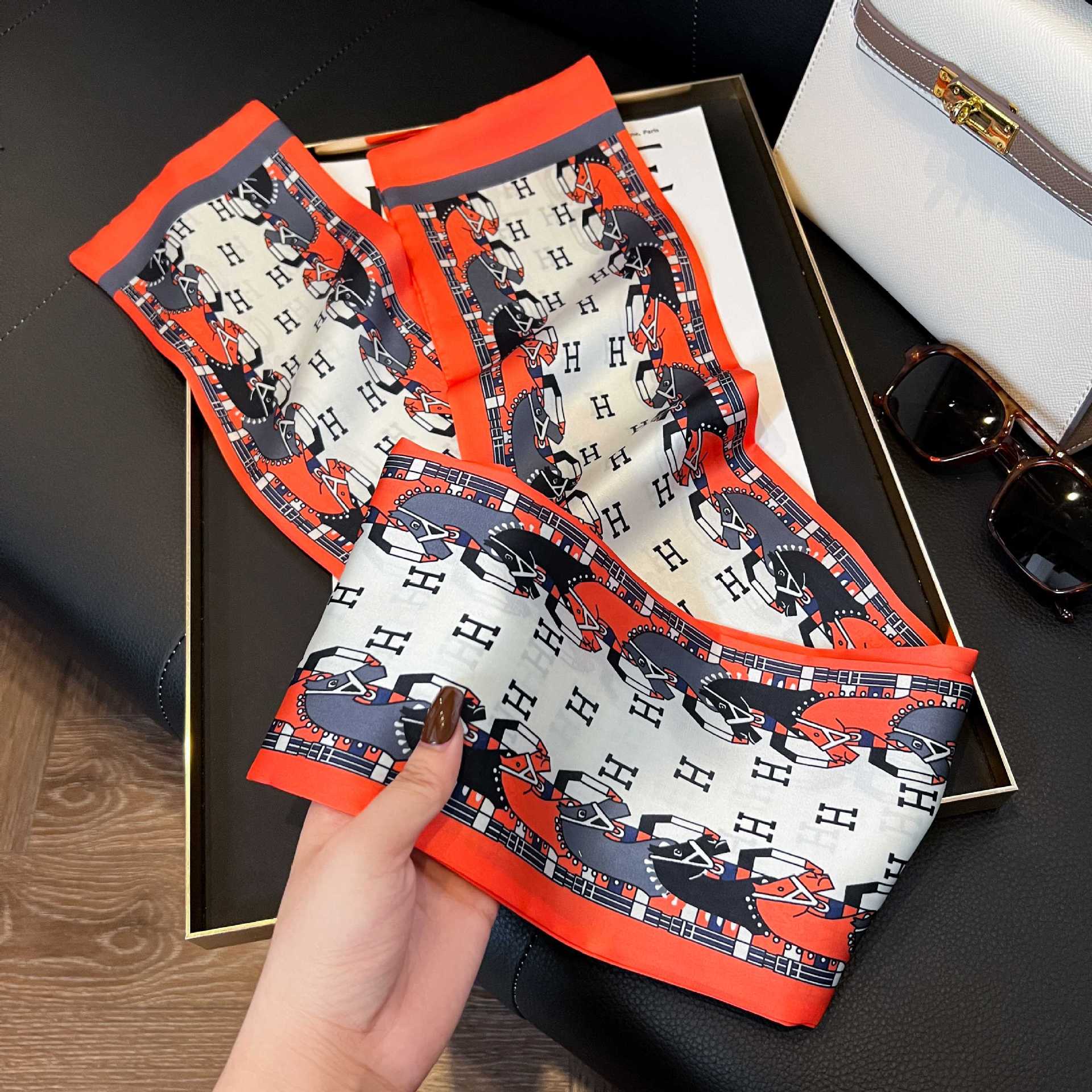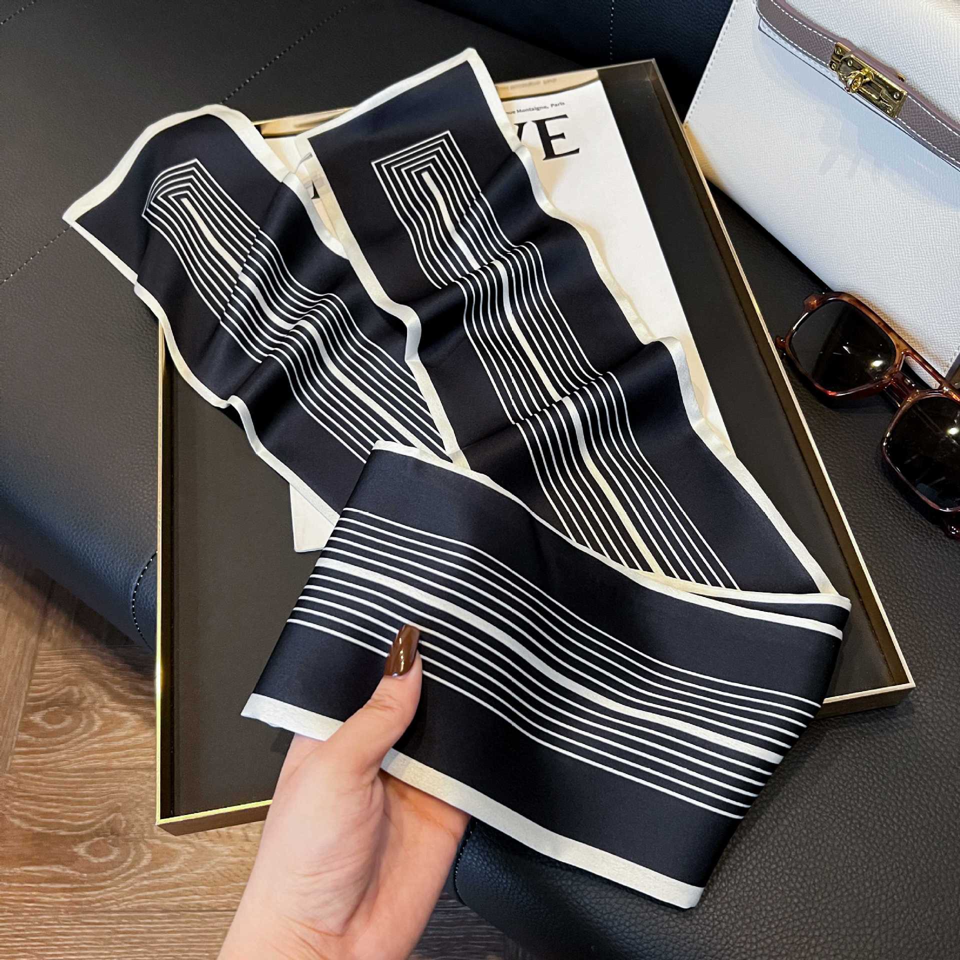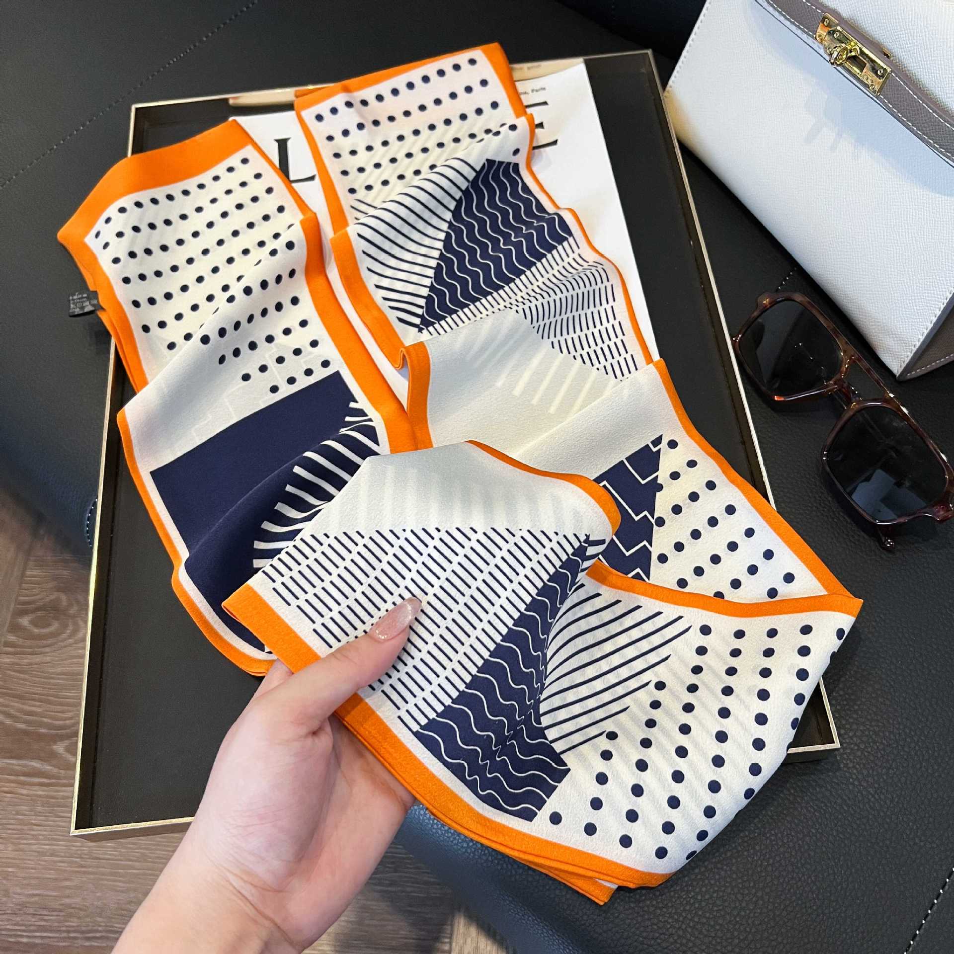 여성을위한 새로운 스타일의 실크 스카프 작은 긴 좁은 머리띠 봄, 가을 패션 엄마 스카프 여름 얇은 플러터 스카프 도매스토어 가기