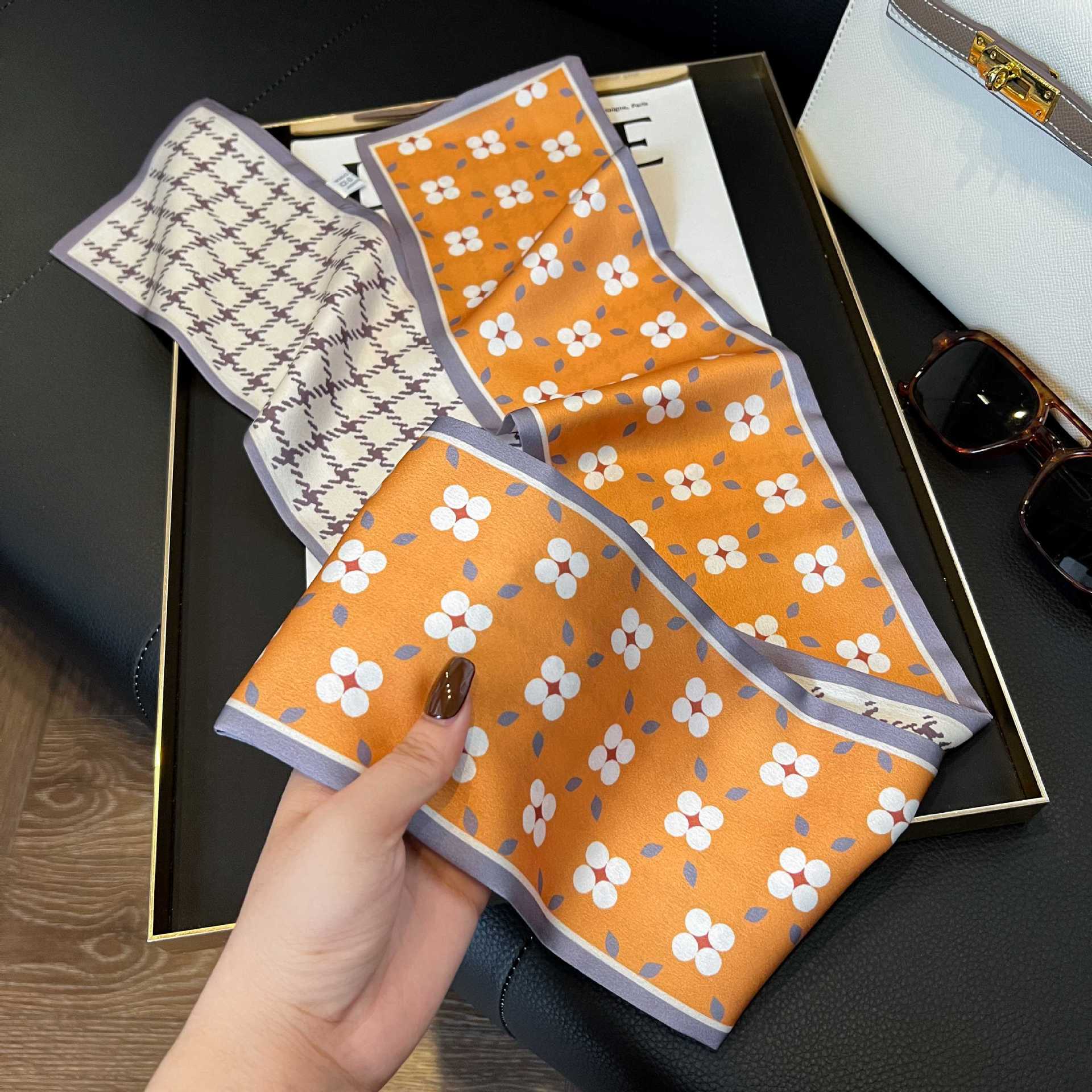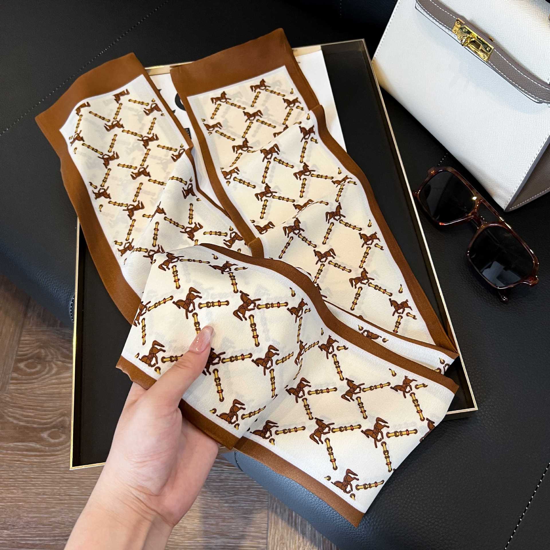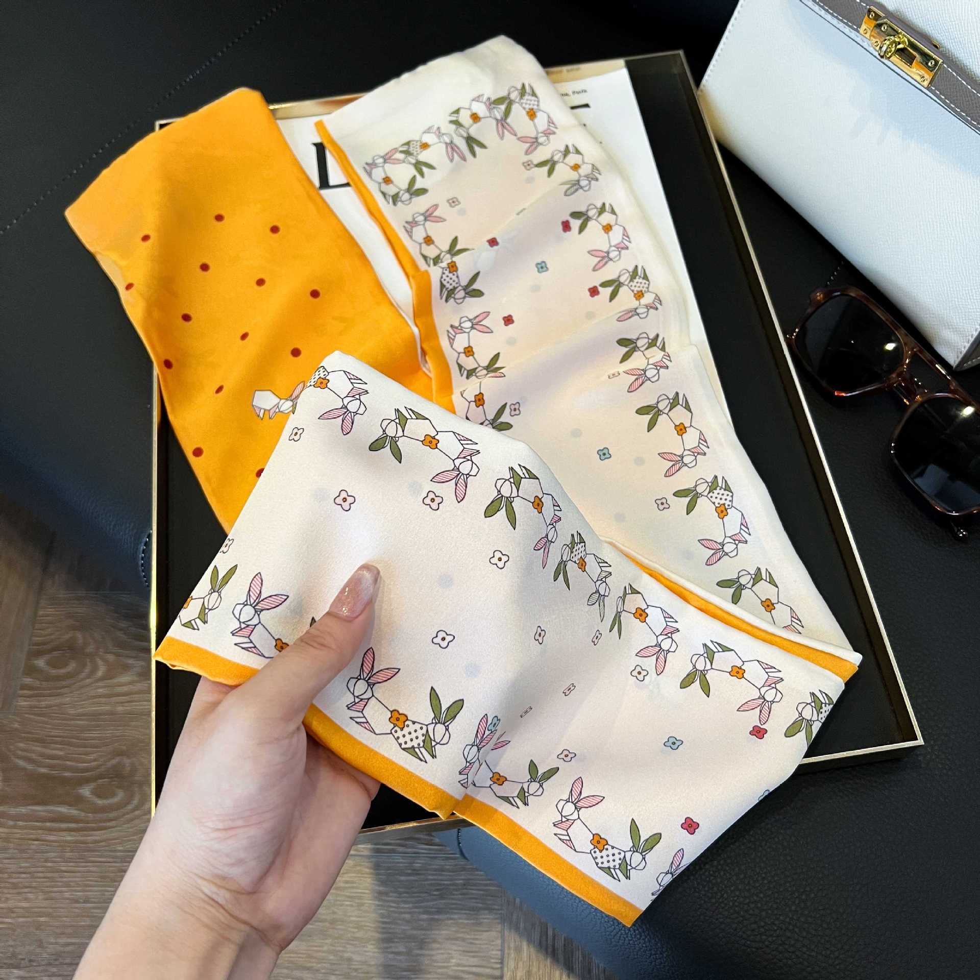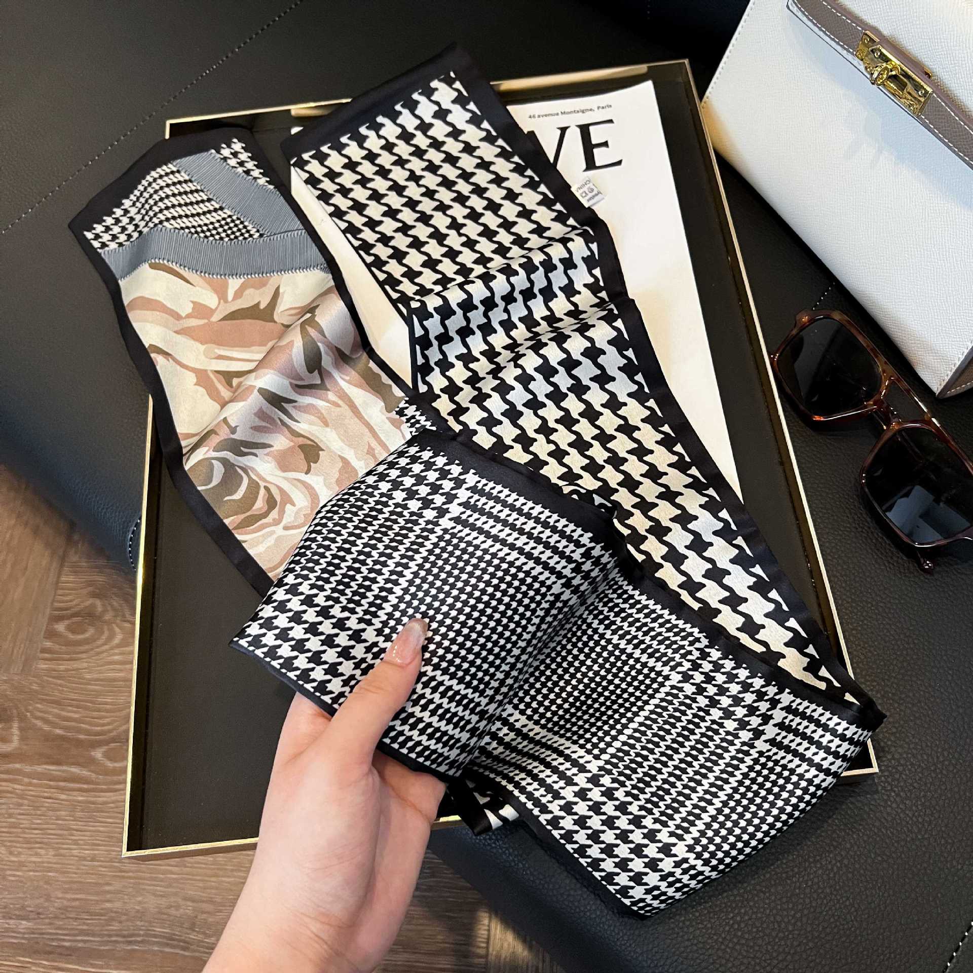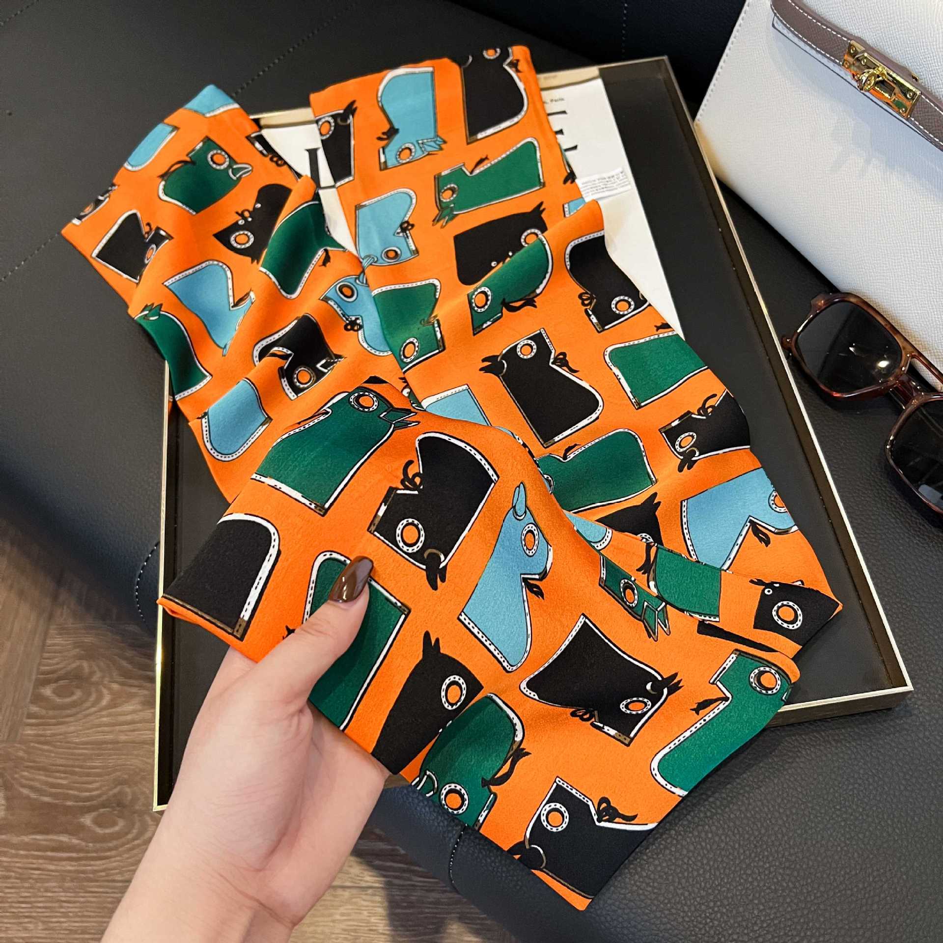 여성을위한 새로운 스타일의 실크 스카프 작은 긴 좁은 머리띠 봄, 가을 패션 엄마 스카프 여름 얇은 플러터 스카프 도매스토어 가기
