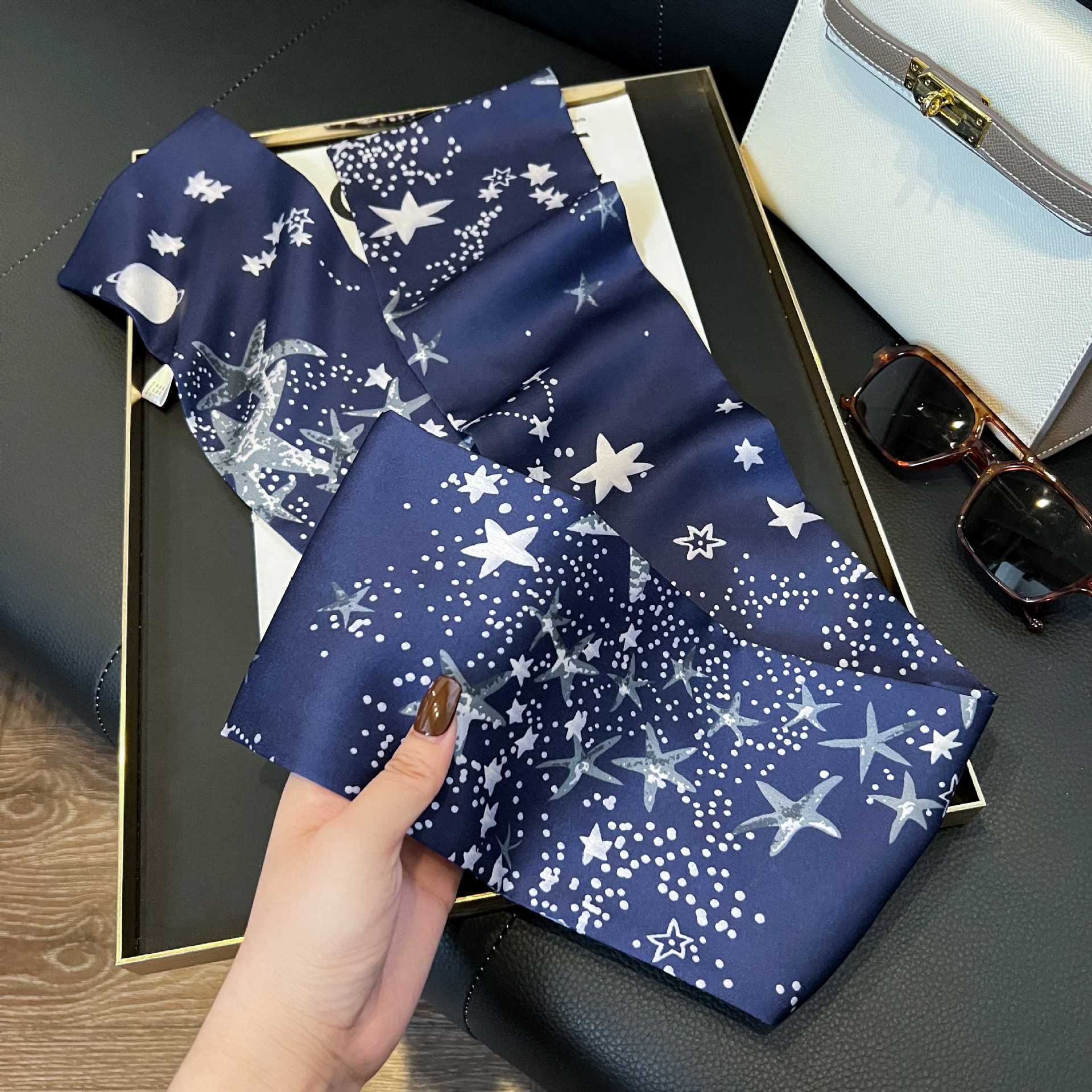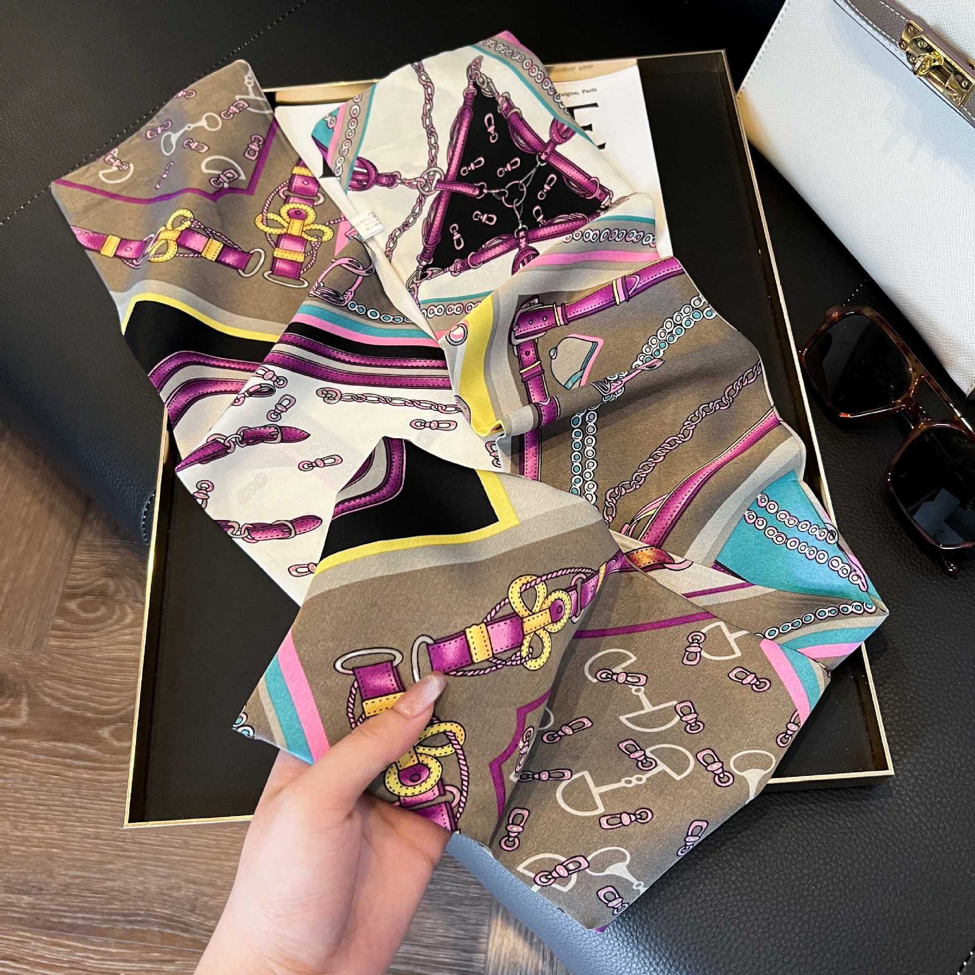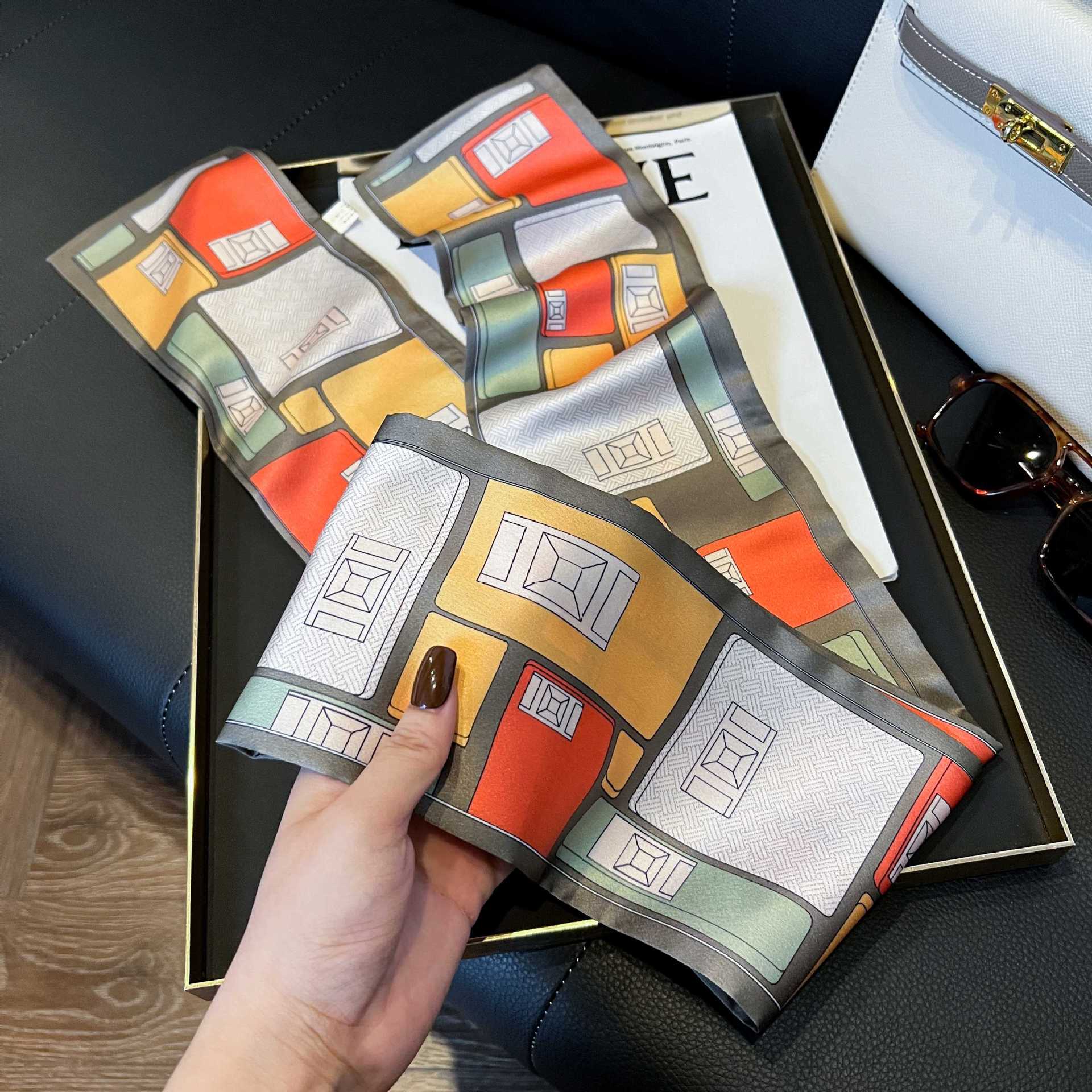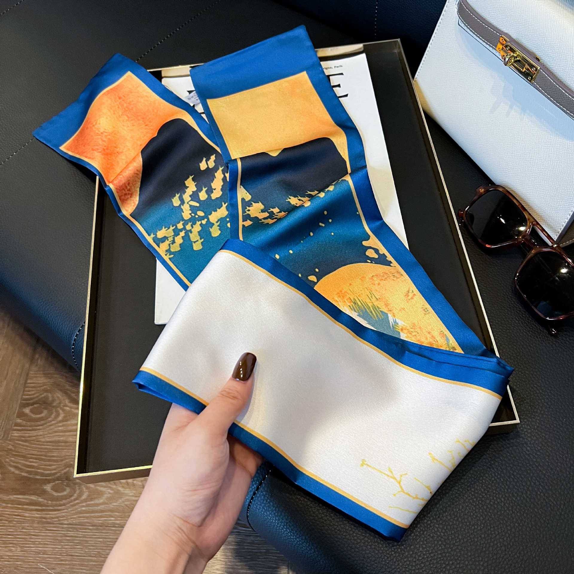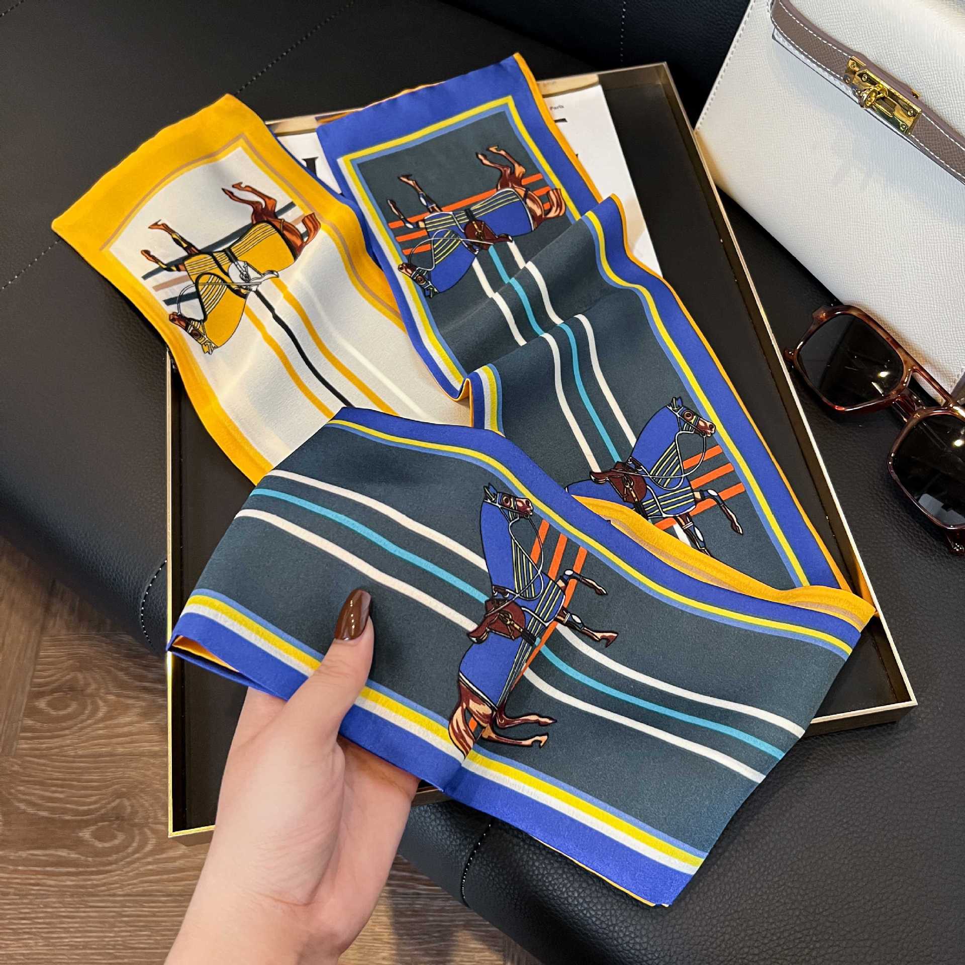 여성을위한 새로운 스타일의 실크 스카프 작은 긴 좁은 머리띠 봄, 가을 패션 엄마 스카프 여름 얇은 플러터 스카프 도매스토어 가기