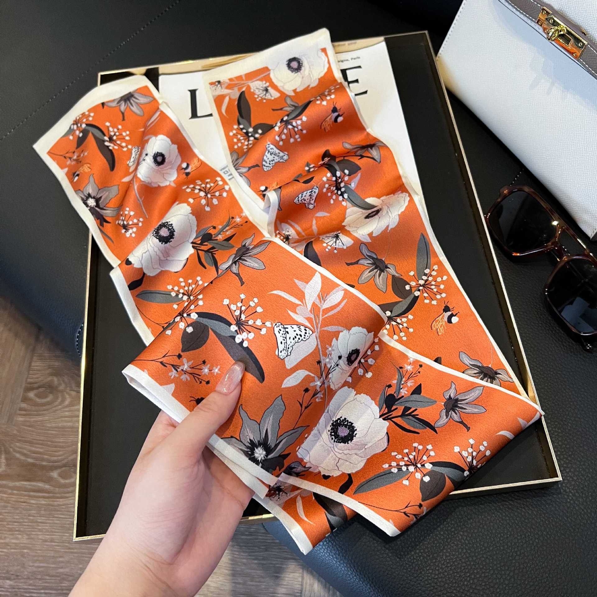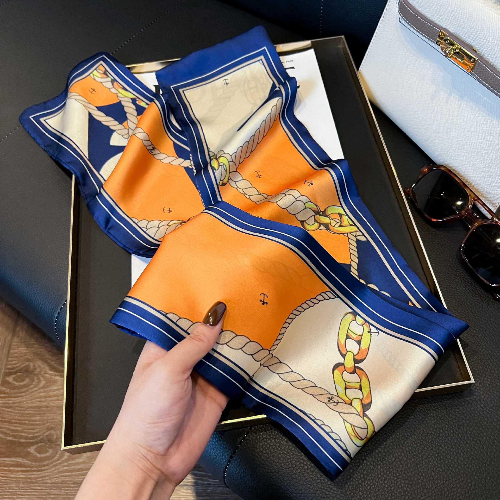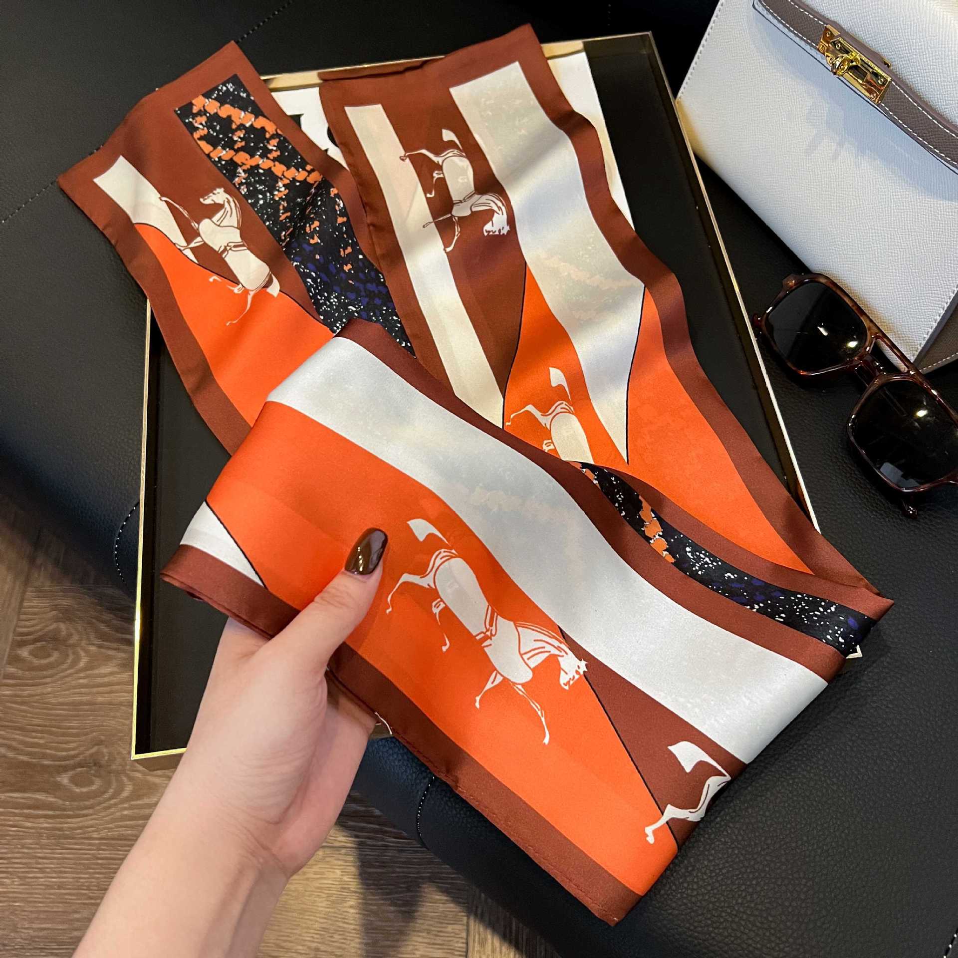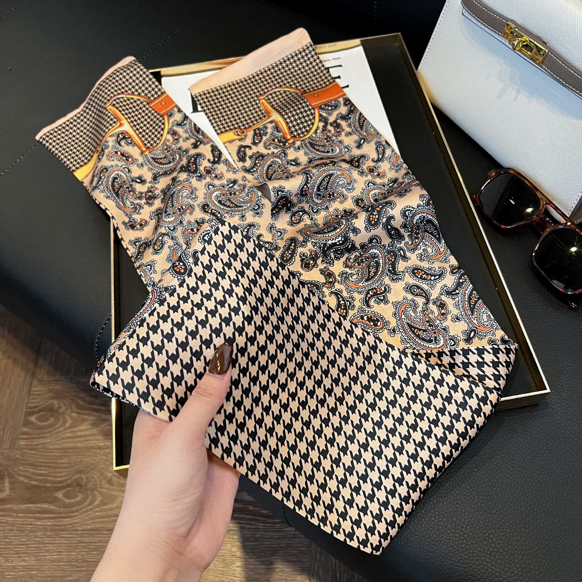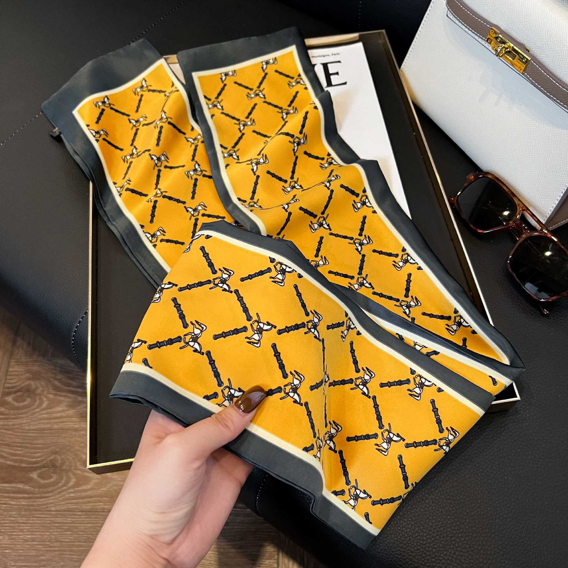 여성을위한 새로운 스타일의 실크 스카프 작은 긴 좁은 머리띠 봄, 가을 패션 엄마 스카프 여름 얇은 플러터 스카프 도매스토어 가기