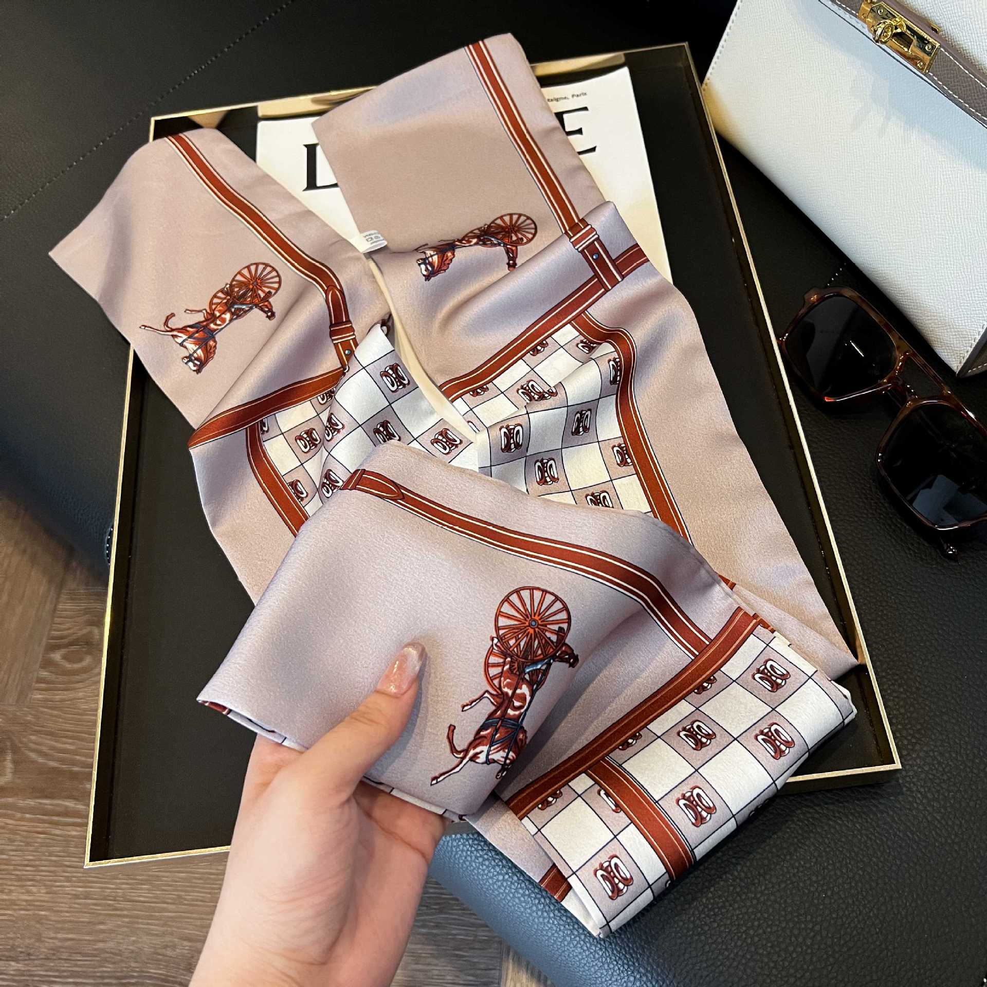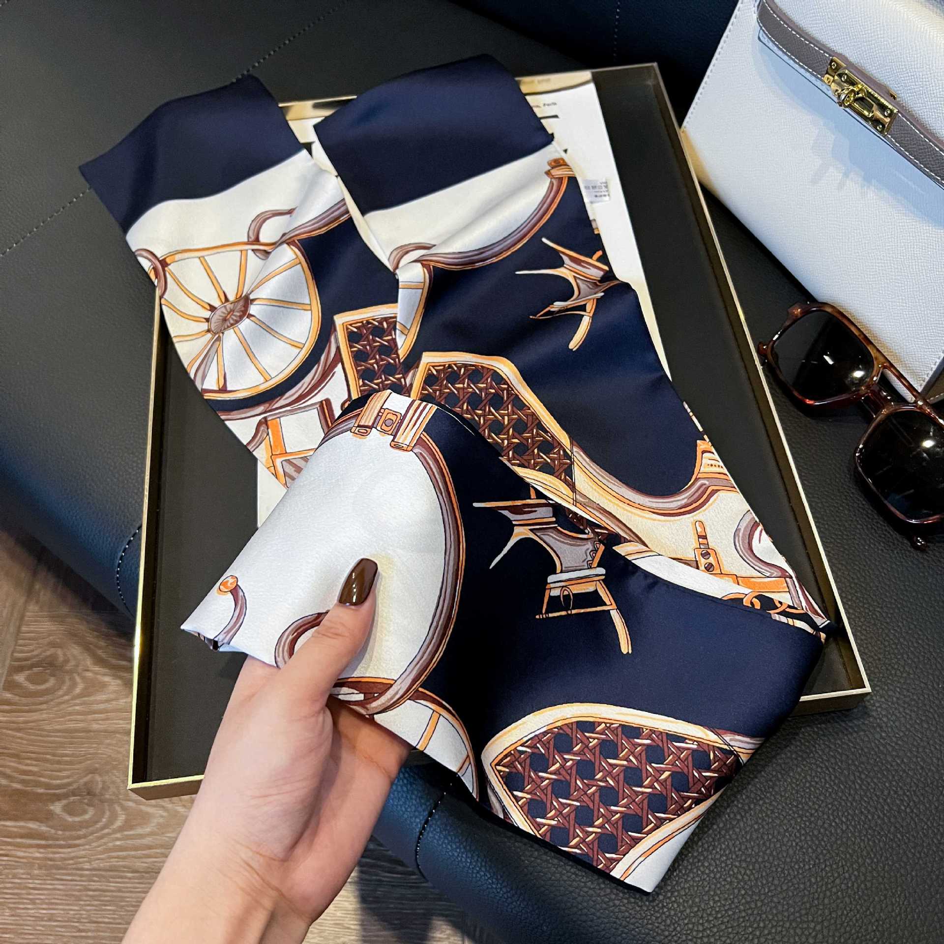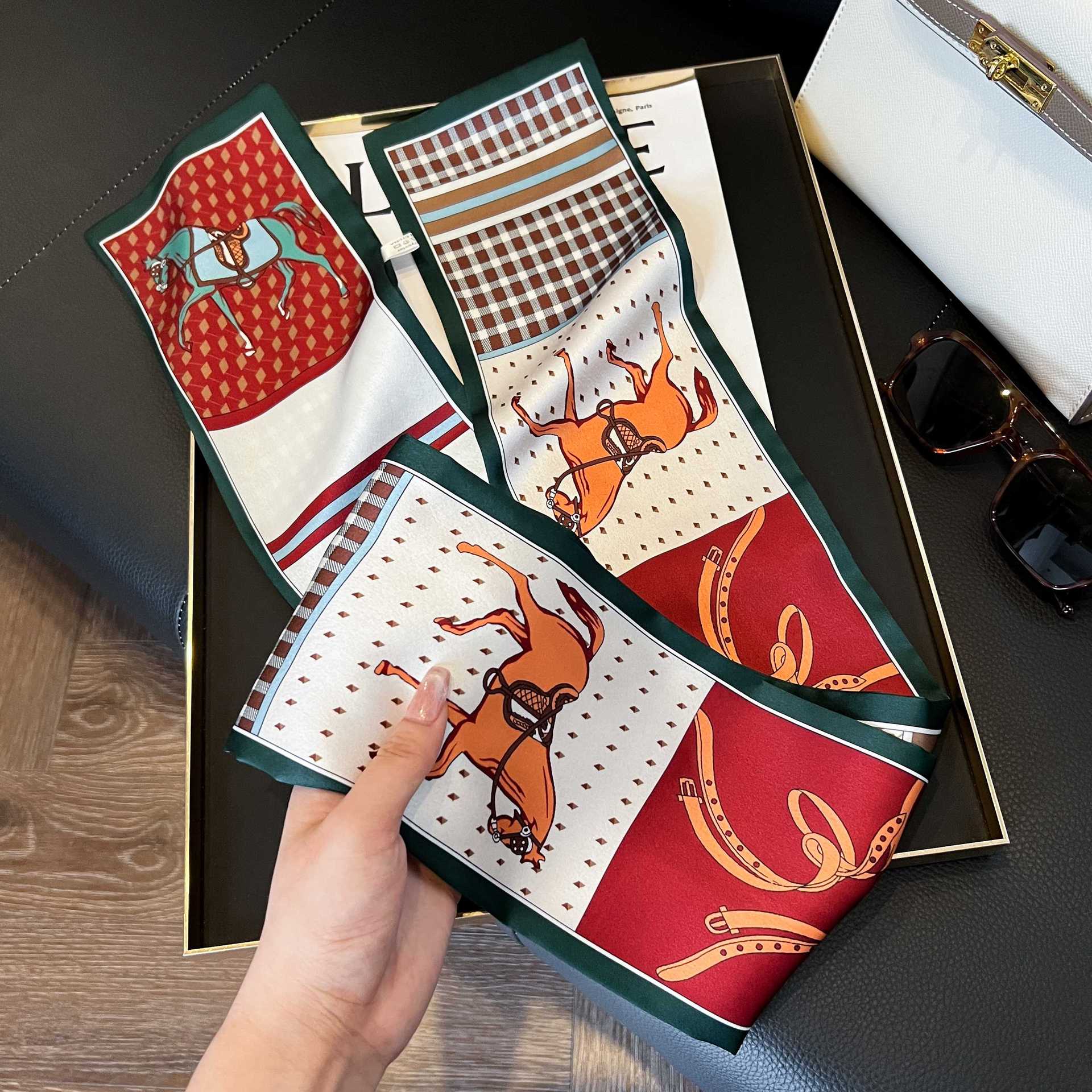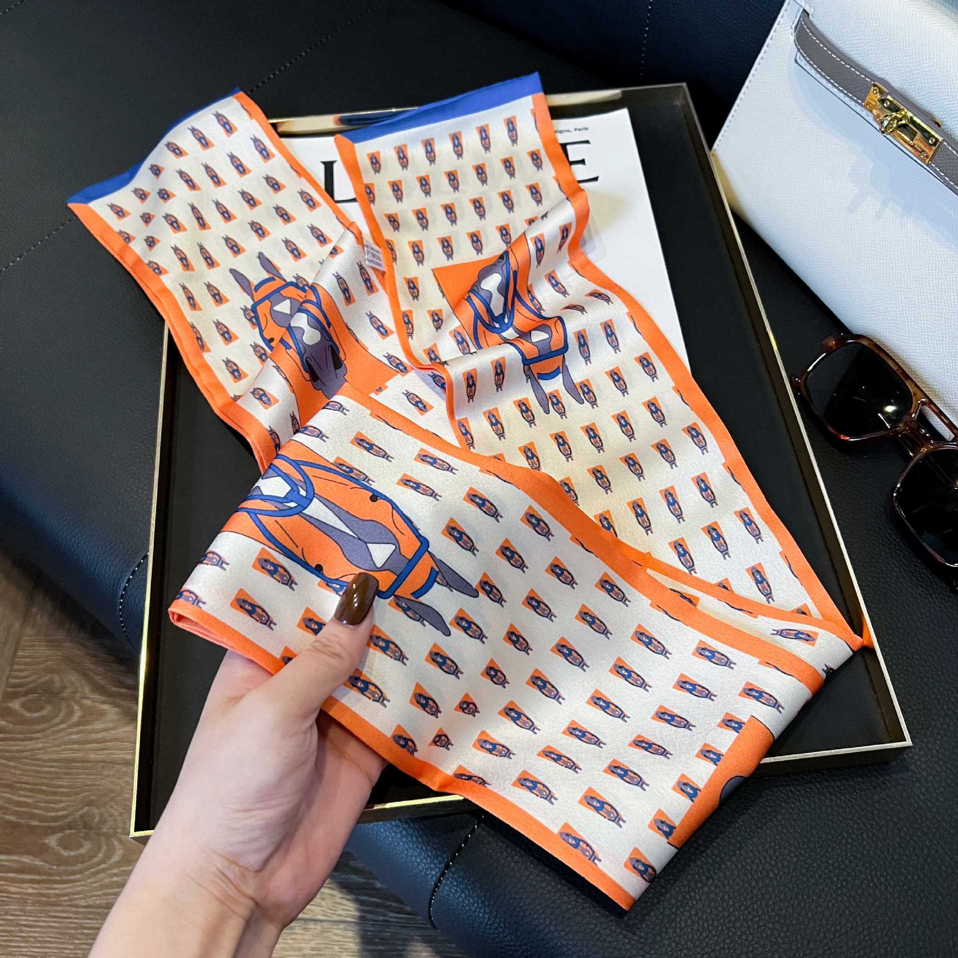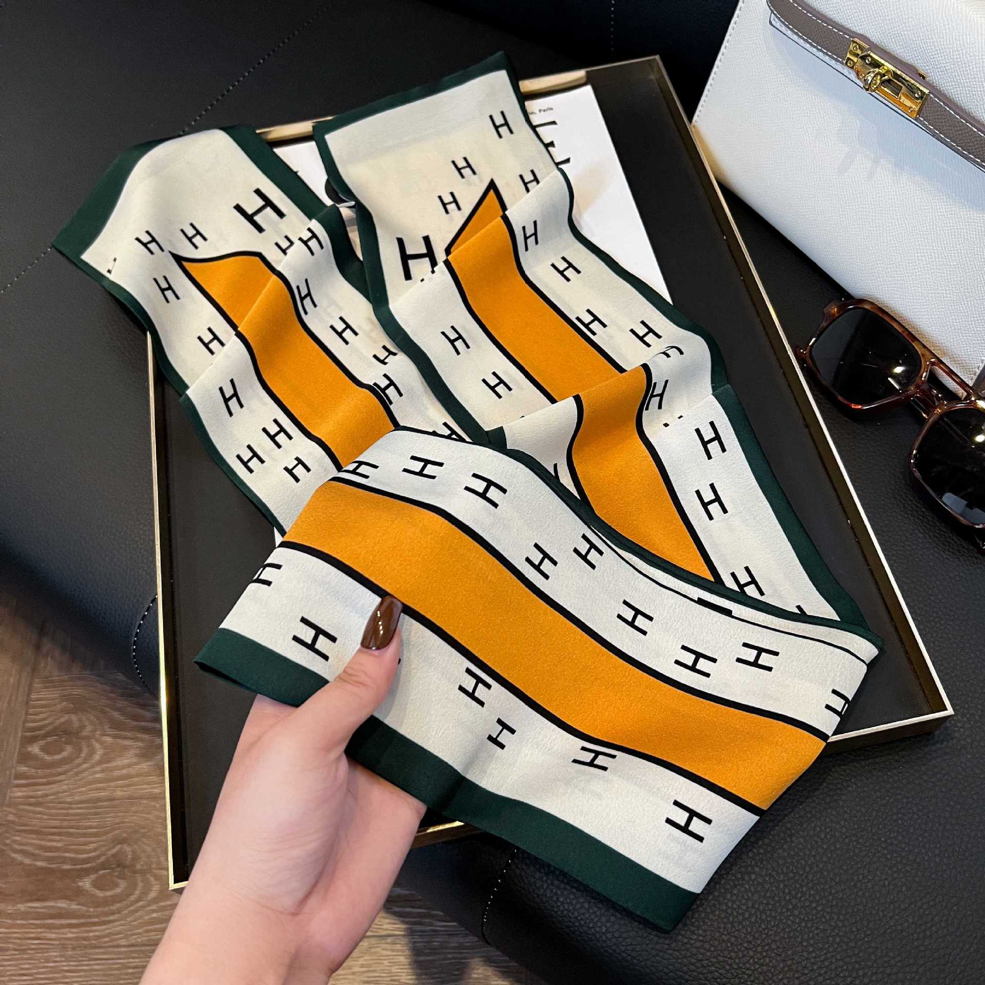 여성을위한 새로운 스타일의 실크 스카프 작은 긴 좁은 머리띠 봄, 가을 패션 엄마 스카프 여름 얇은 플러터 스카프 도매스토어 가기