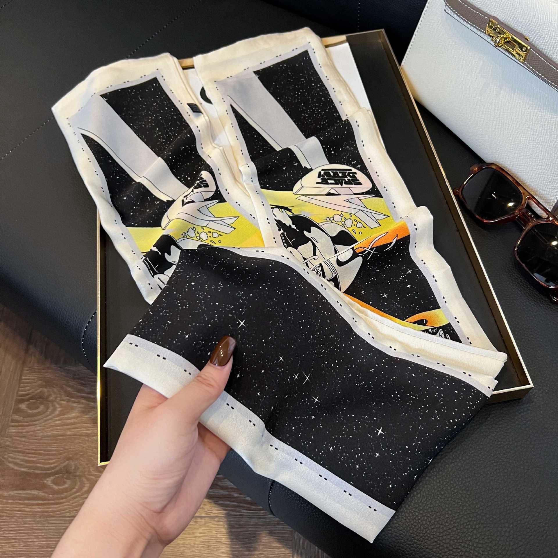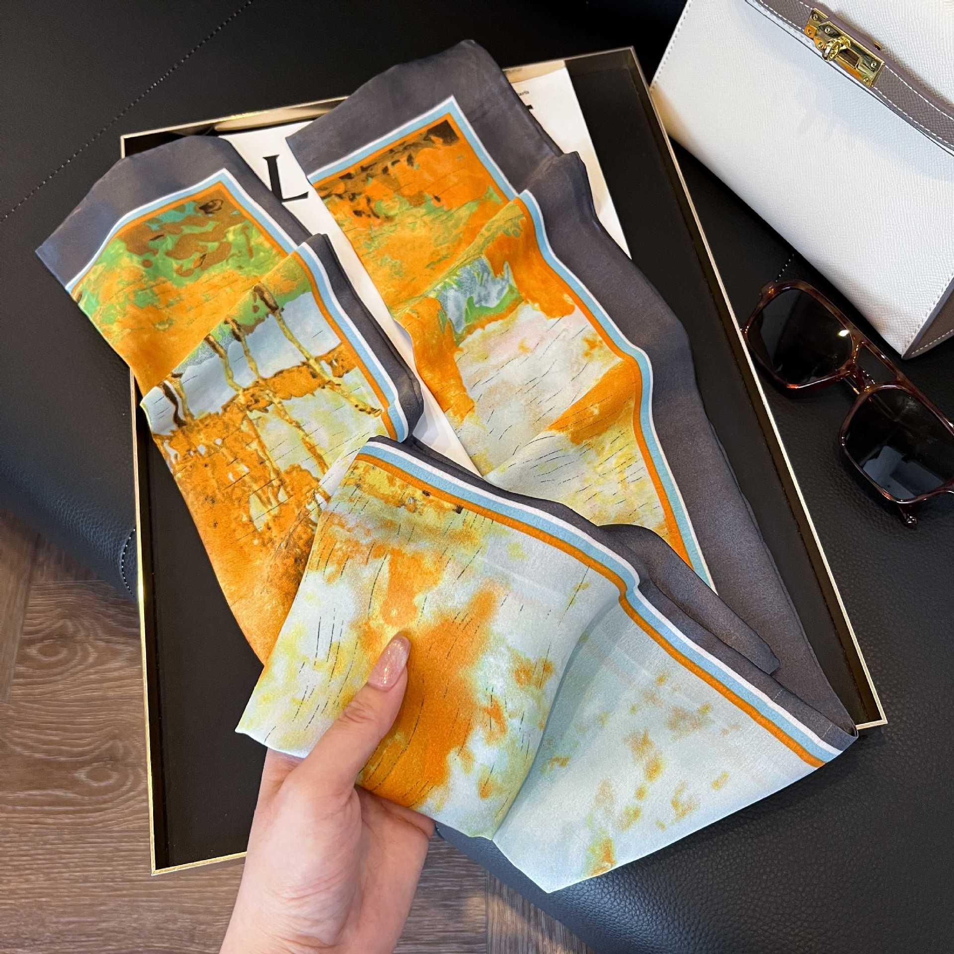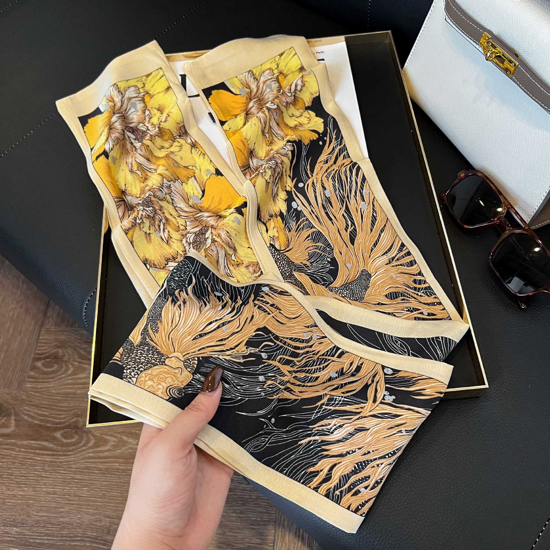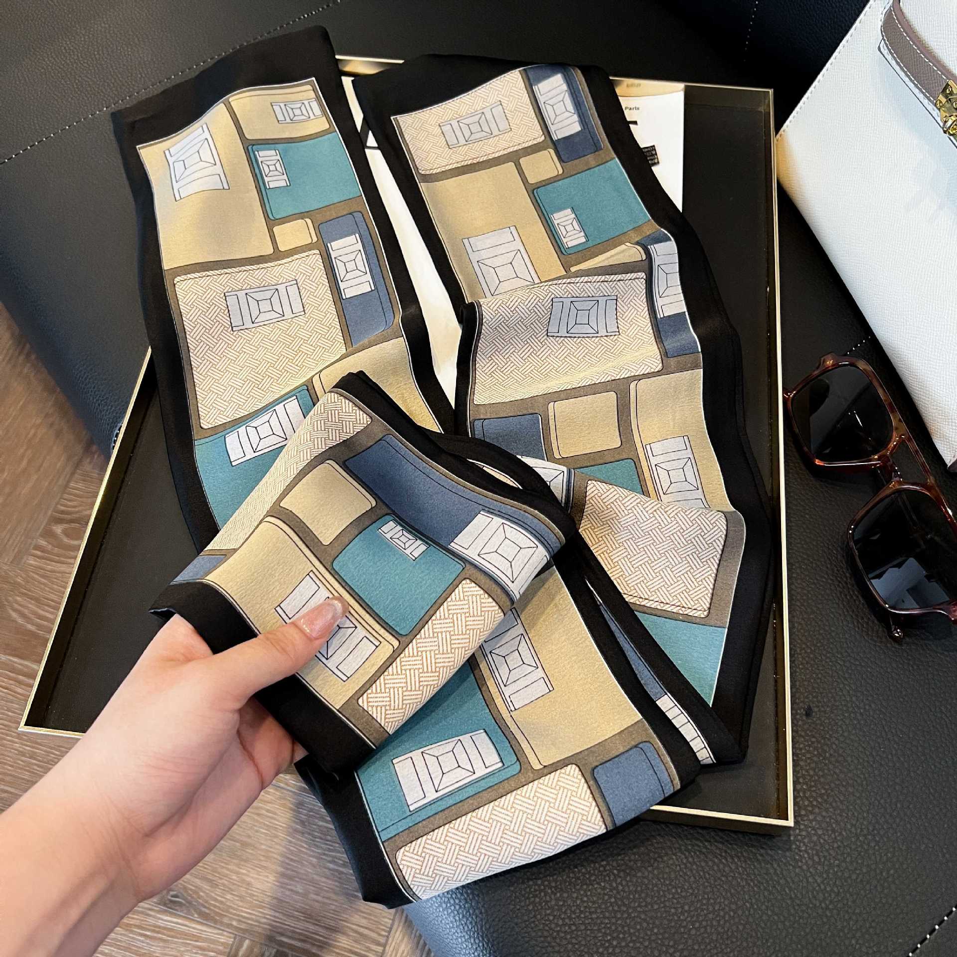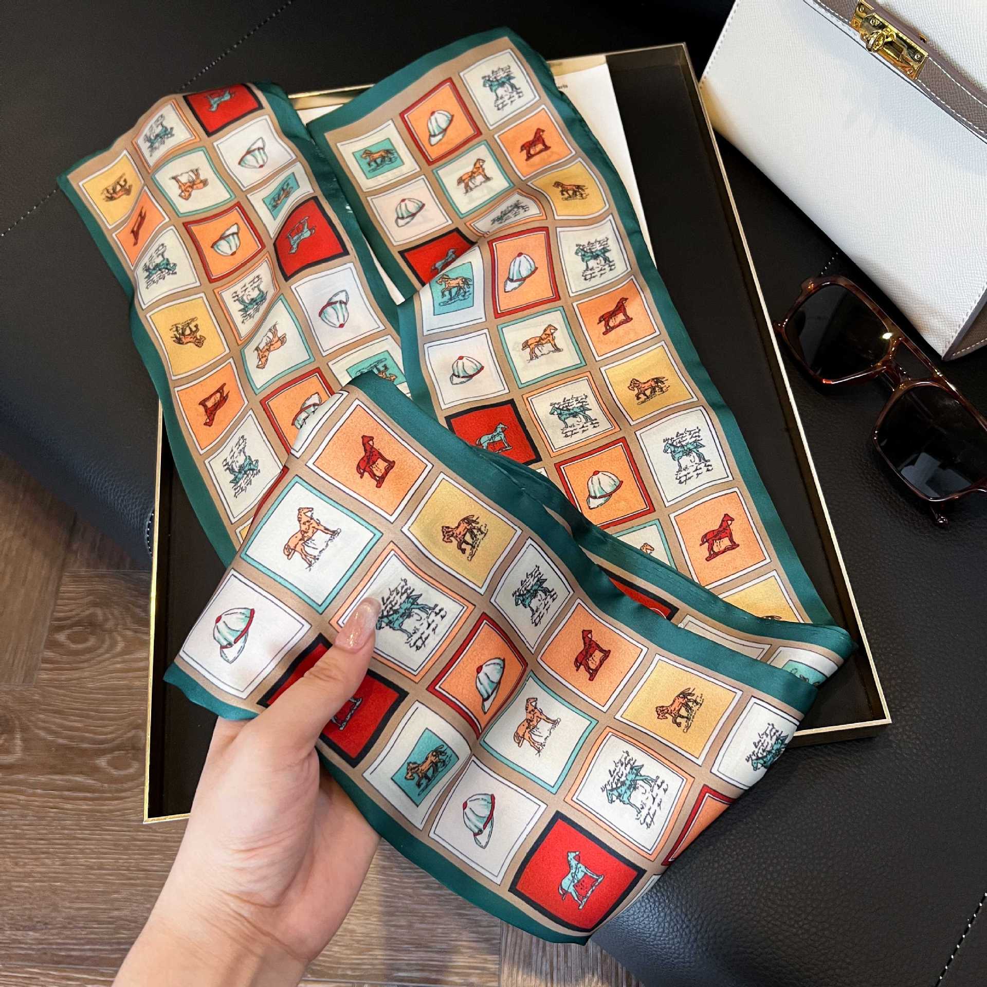 여성을위한 새로운 스타일의 실크 스카프 작은 긴 좁은 머리띠 봄, 가을 패션 엄마 스카프 여름 얇은 플러터 스카프 도매스토어 가기