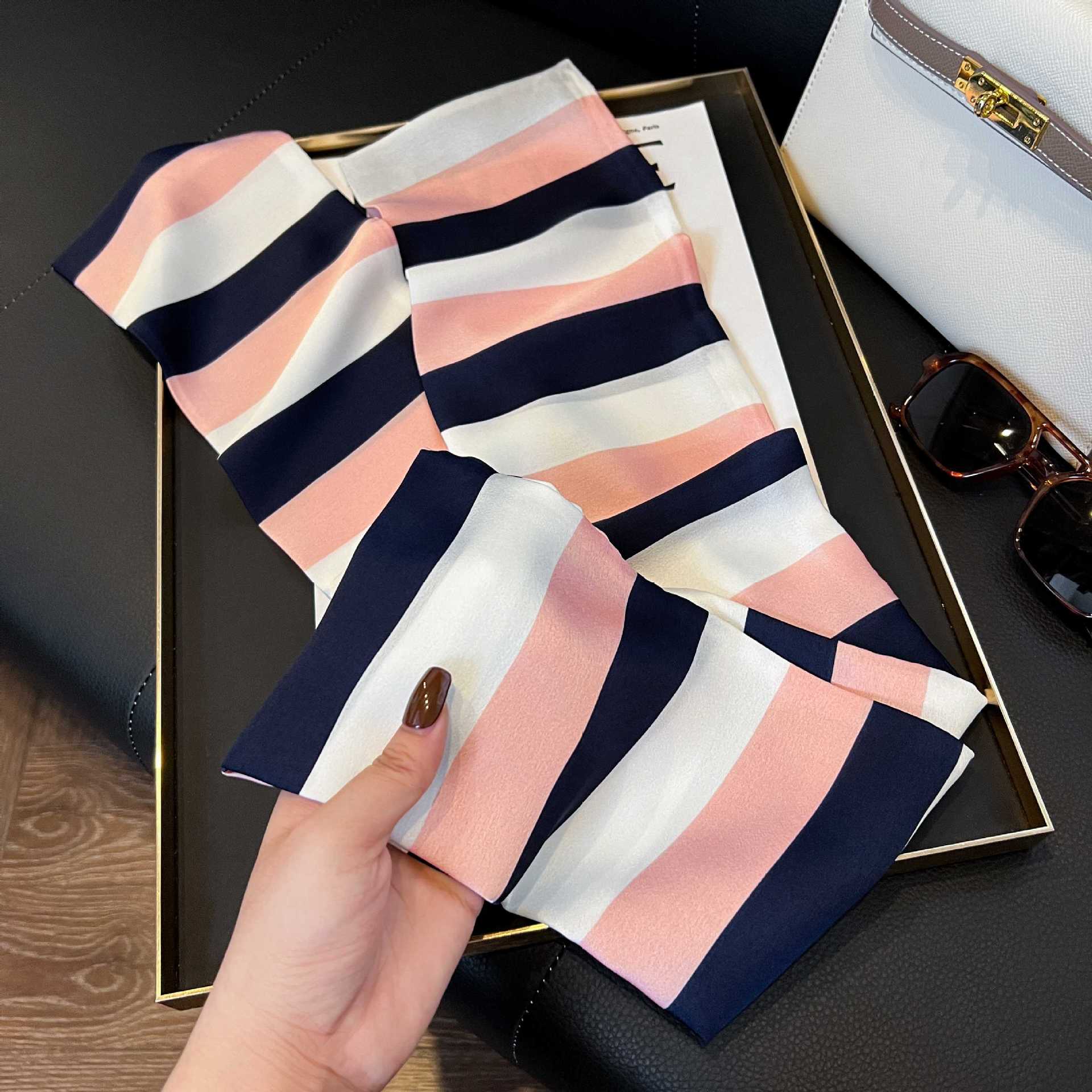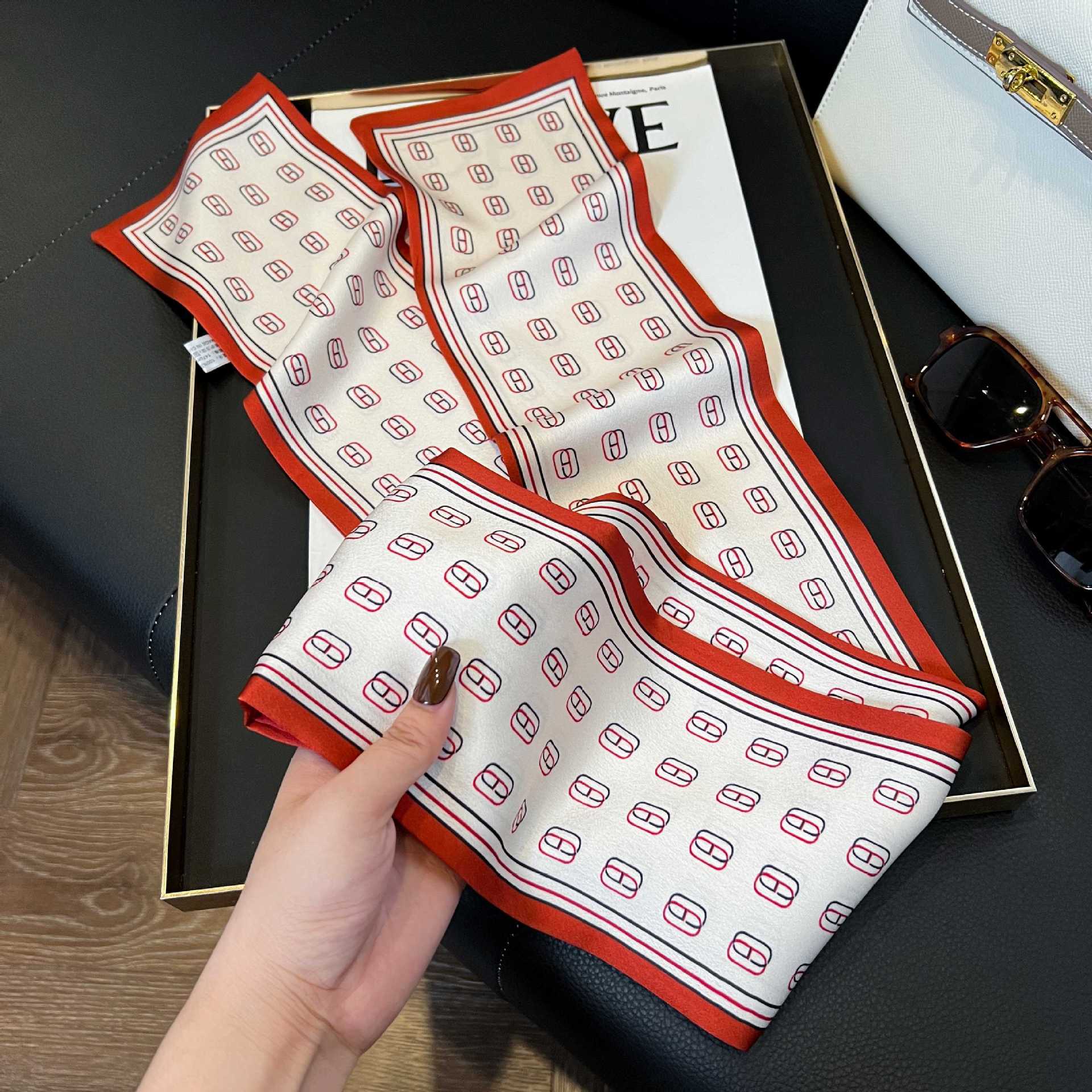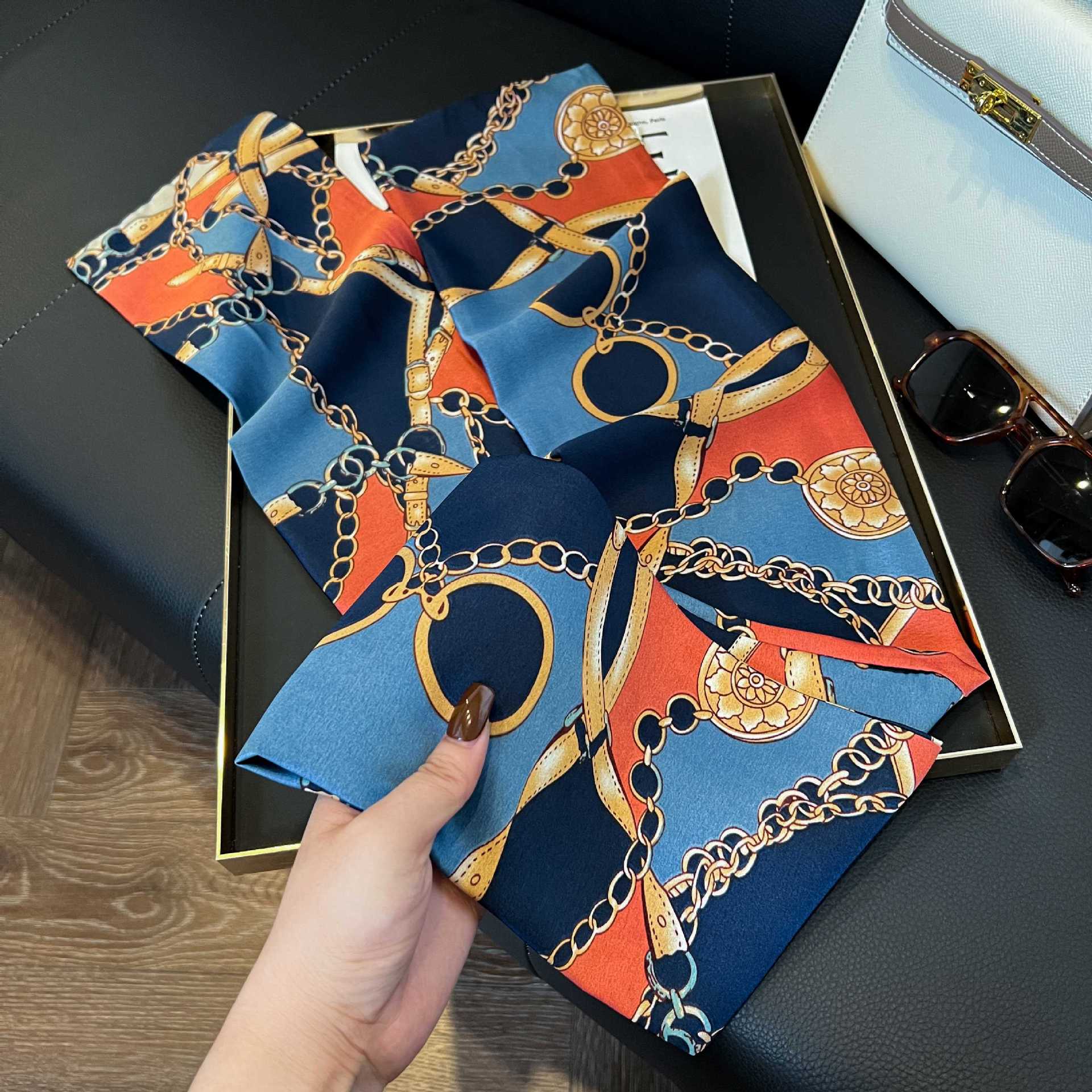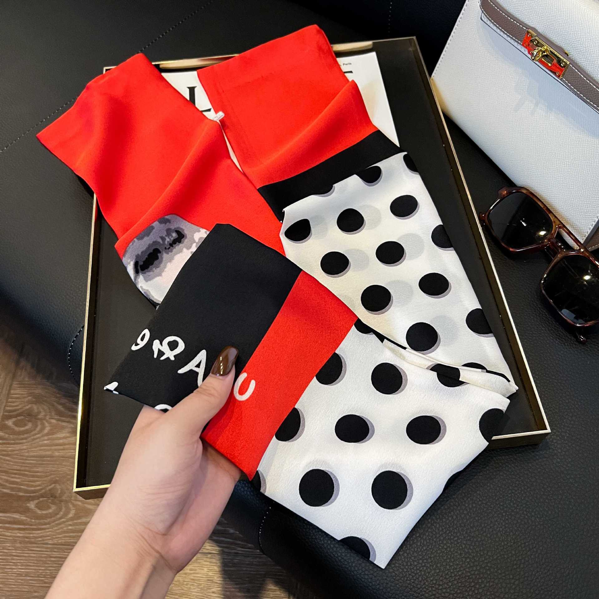 여성을위한 새로운 스타일의 실크 스카프 작은 긴 좁은 머리띠 봄, 가을 패션 엄마 스카프 여름 얇은 플러터 스카프 도매