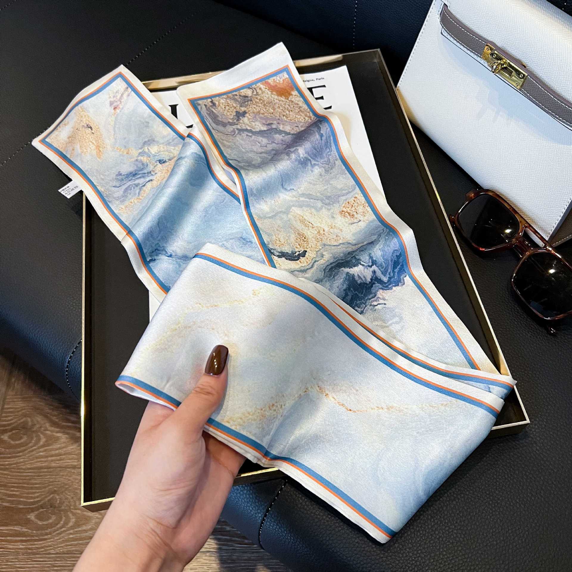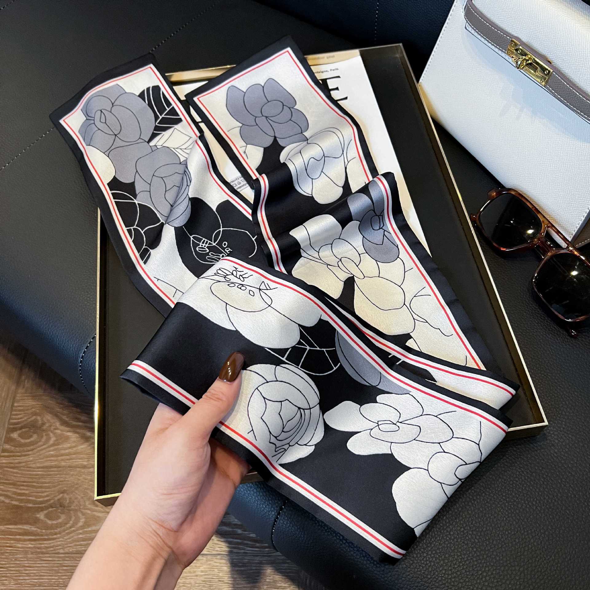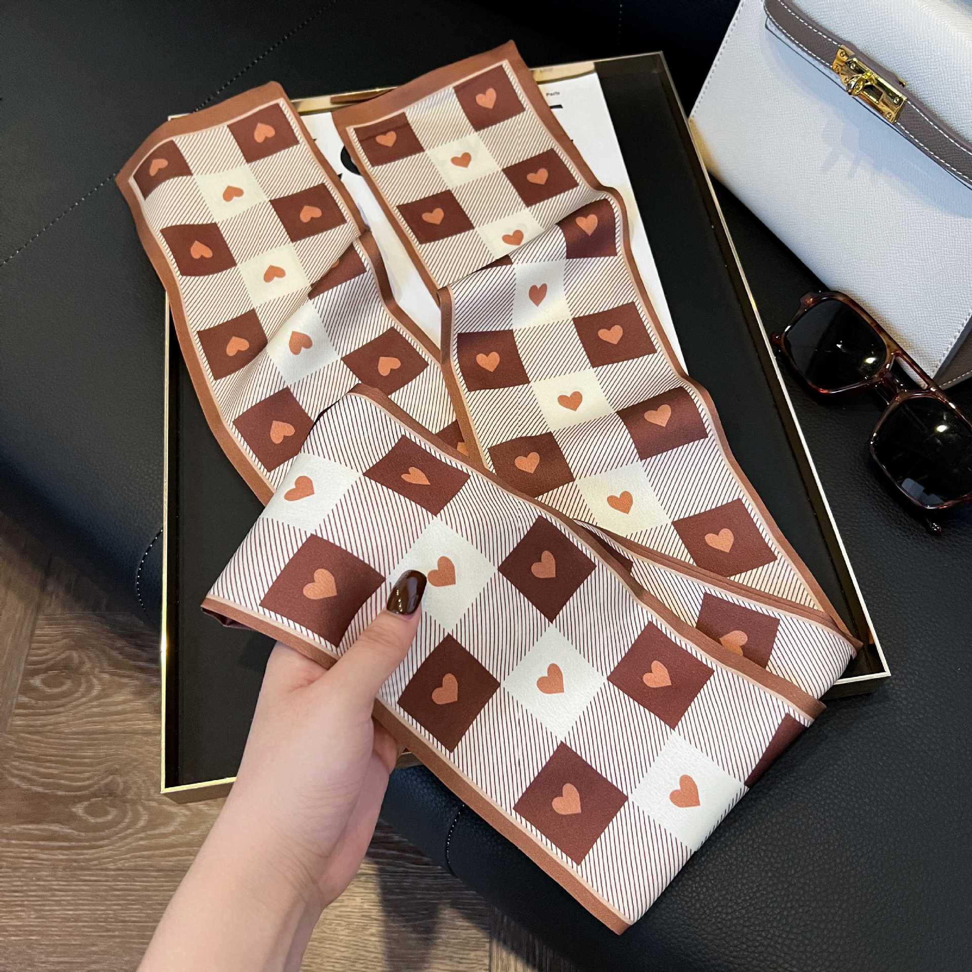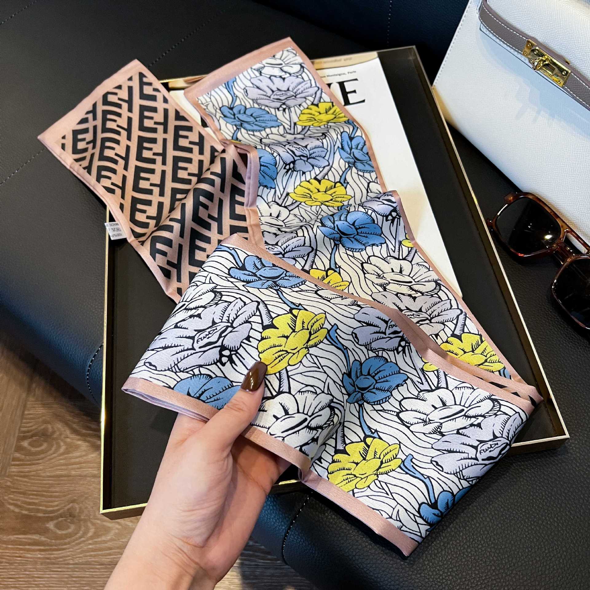 여성을위한 새로운 스타일의 실크 스카프 작은 긴 좁은 머리띠 봄, 가을 패션 엄마 스카프 여름 얇은 플러터 스카프 도매