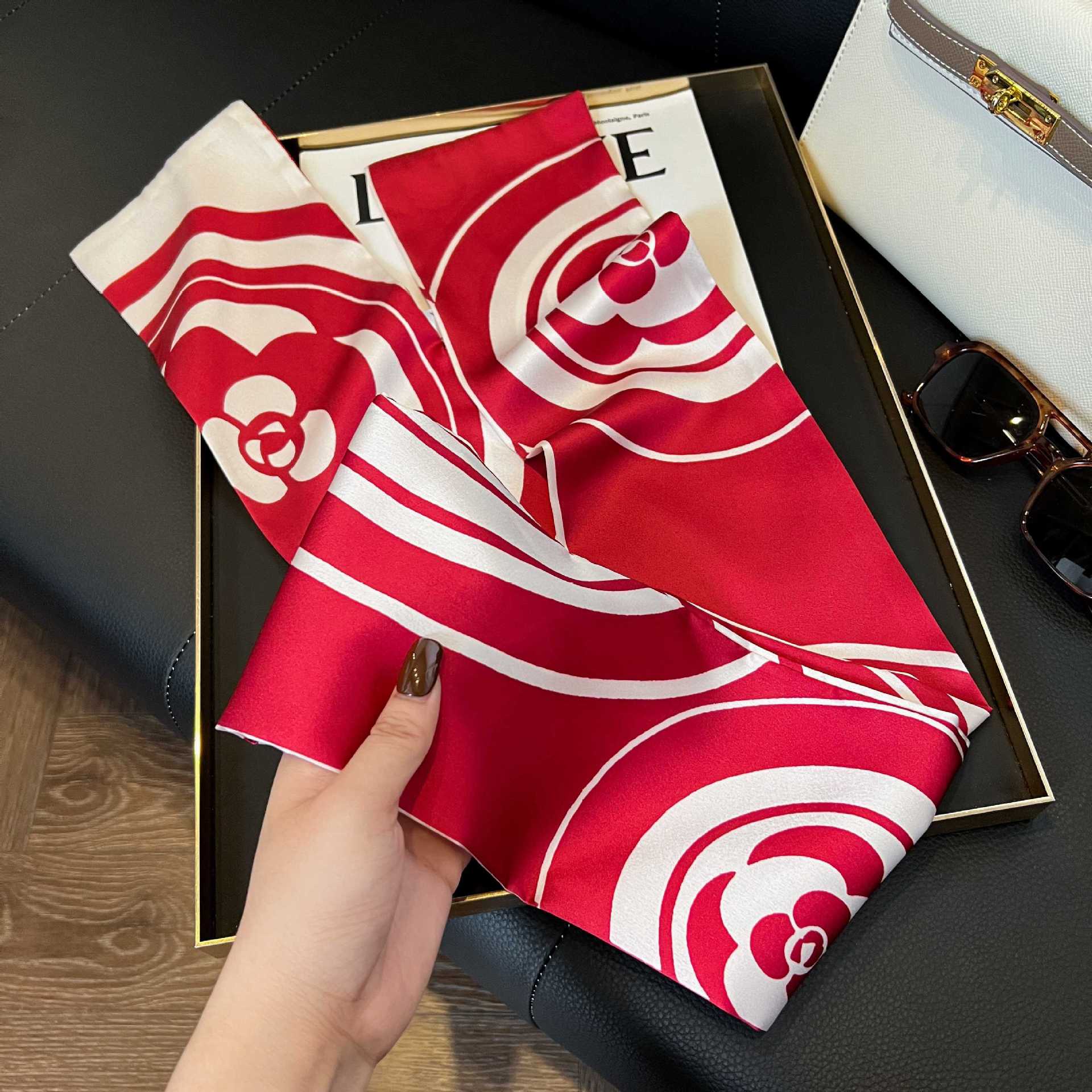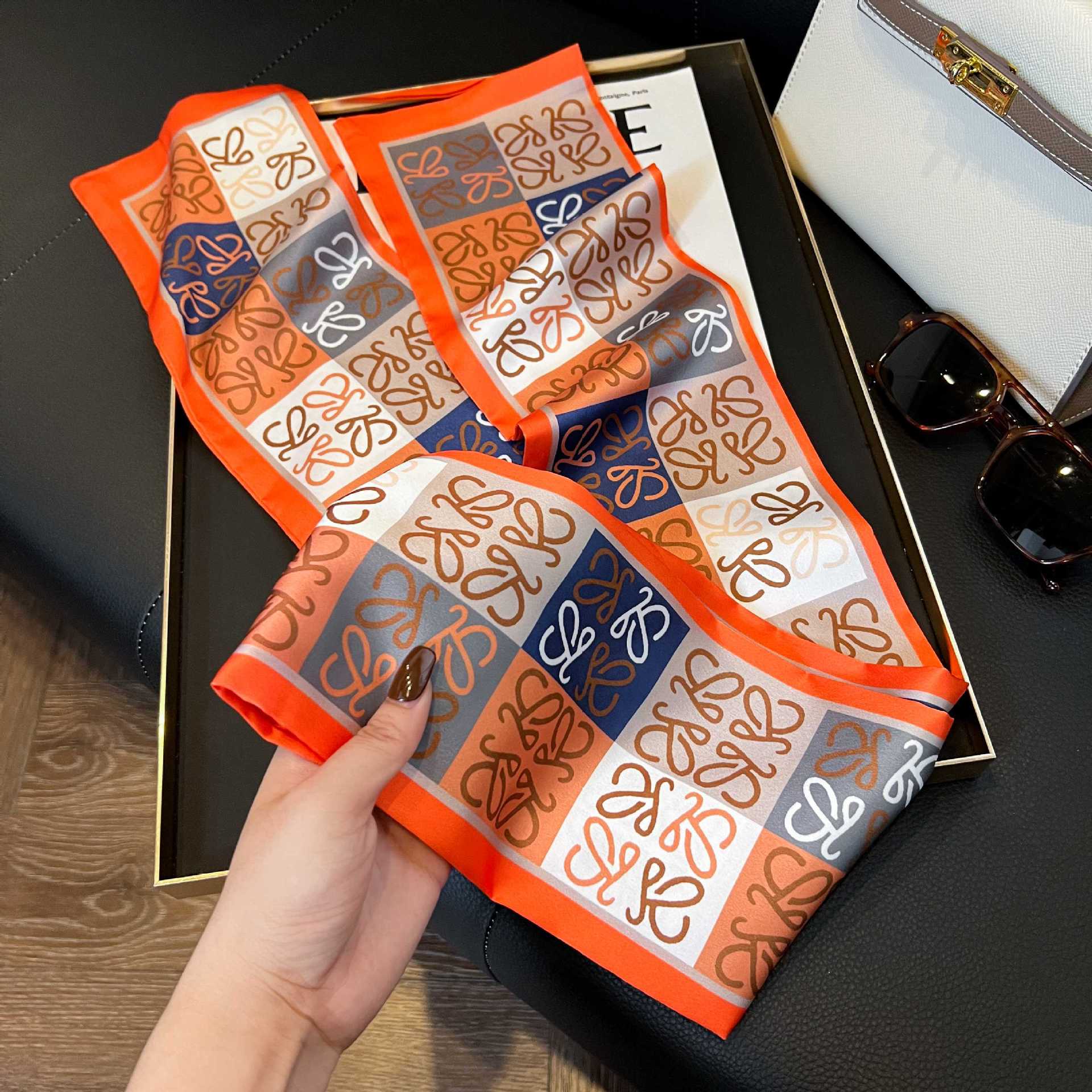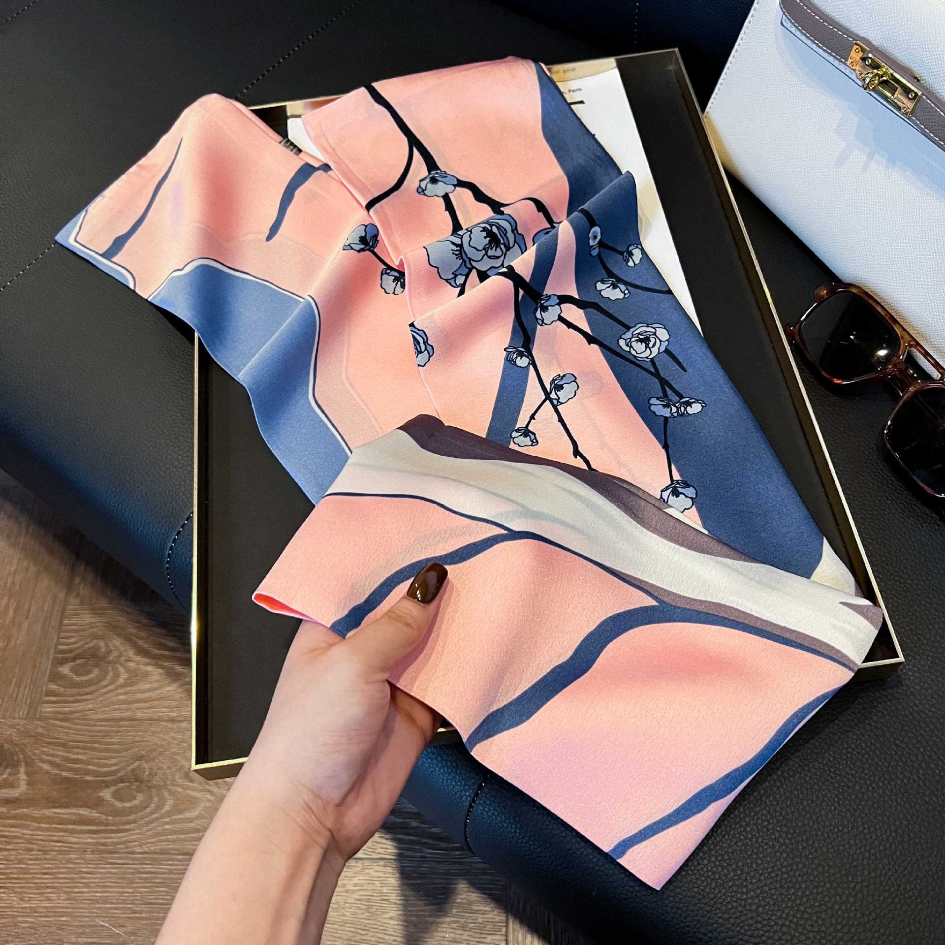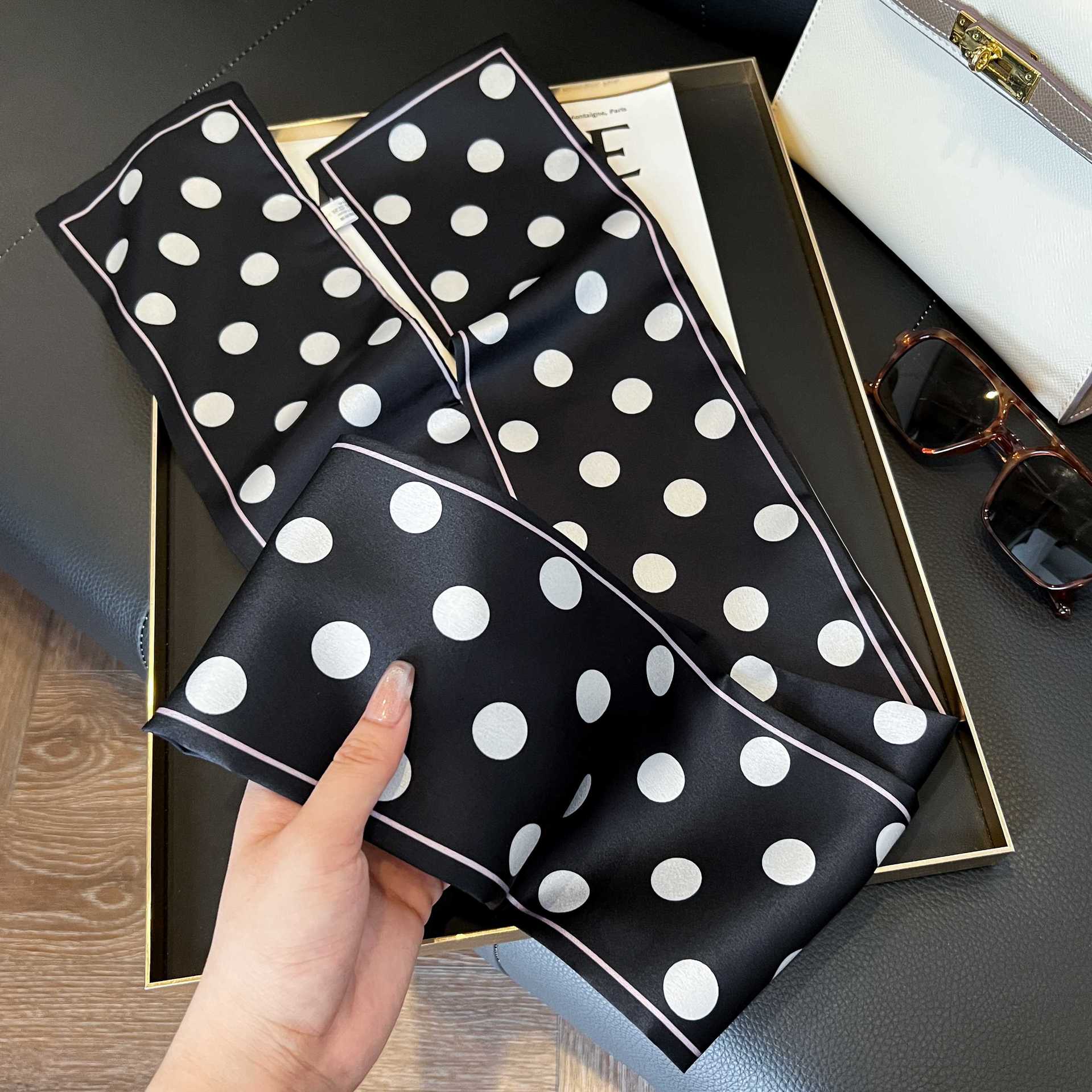 여성을위한 새로운 스타일의 실크 스카프 작은 긴 좁은 머리띠 봄, 가을 패션 엄마 스카프 여름 얇은 플러터 스카프 도매