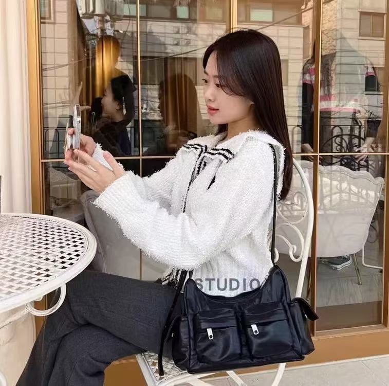 Samo Ondoh 한국 패션 여성 겨드랑이 오토바이 숄더 백 멀티 포켓 조절 가능한 크로스 바디 백스토어 가기