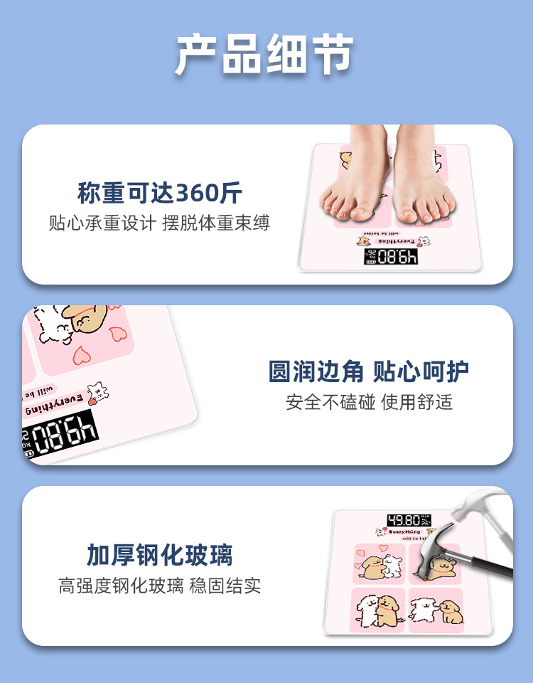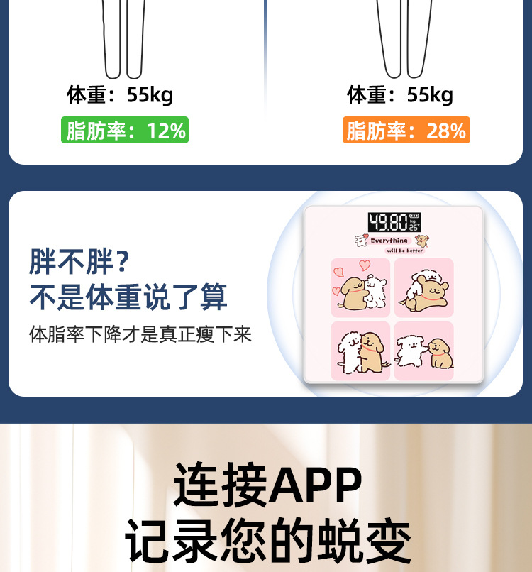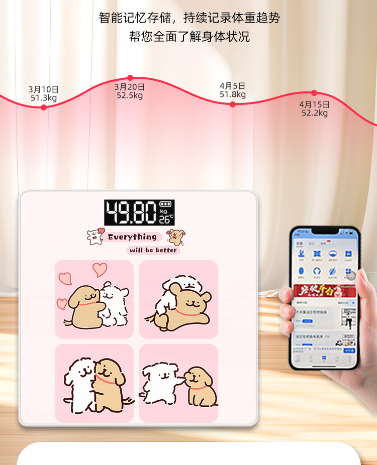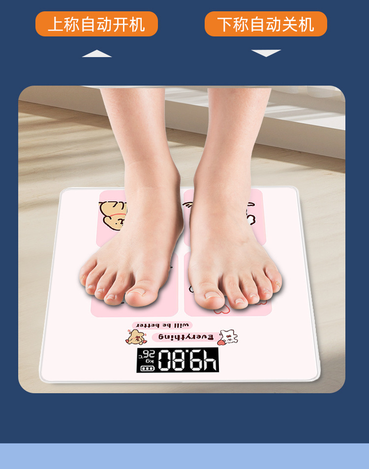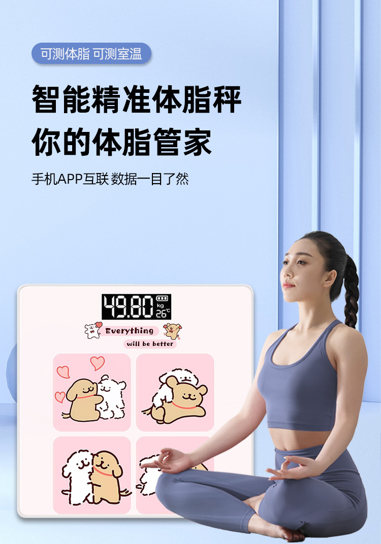 Bluetooth 체지방 측정기는 맞춤형 로고를 갖춘 국경 간 전자 저울 귀여운 만화 정확한 가정용 인체 건강 체중계스토어 가기