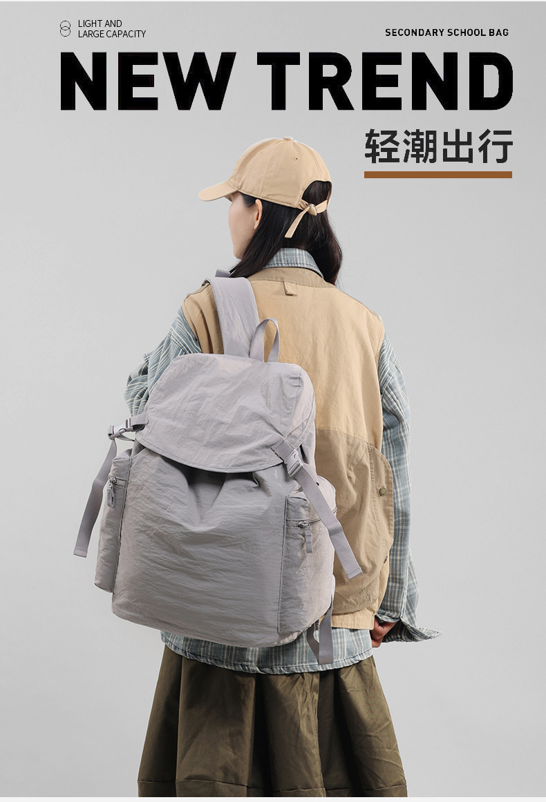 프렌치 스타일 드로스트링 백팩 대용량 아웃도어 하이킹 등산 가방 중학생 고등학생 책가방
