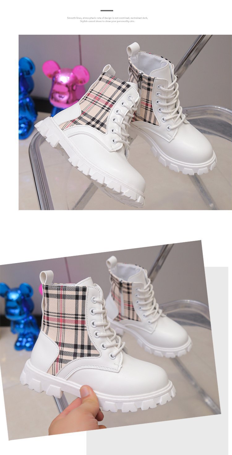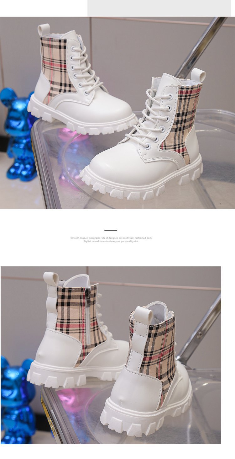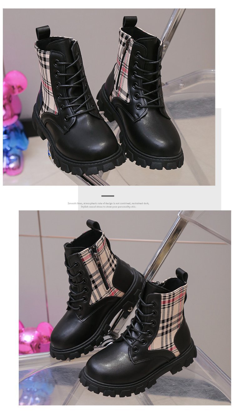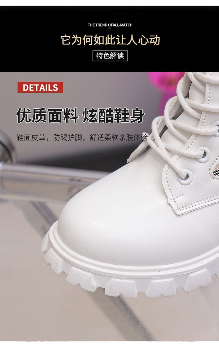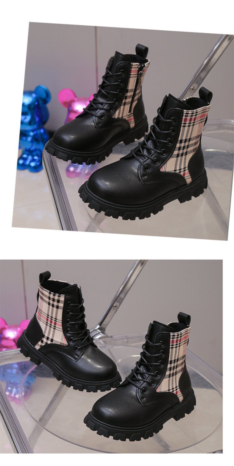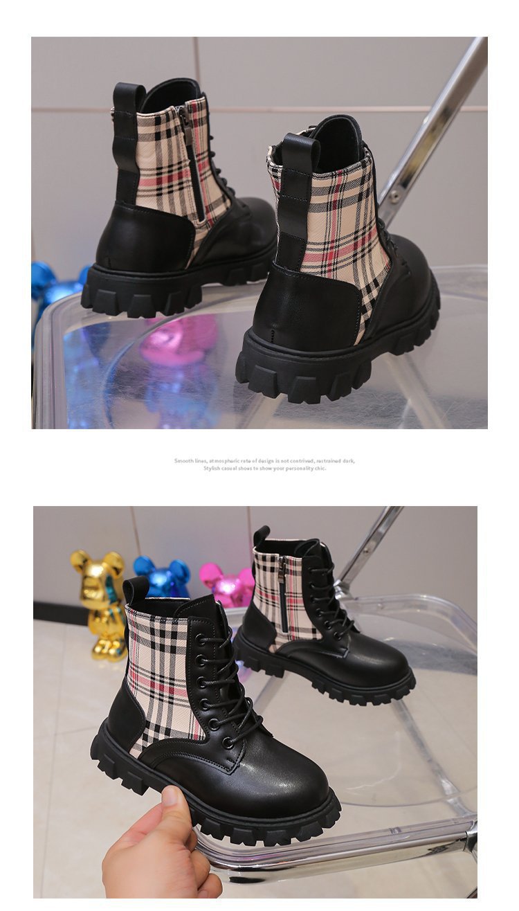 캐주얼 패션 어린이 마틴 부츠 2023 새로운 영국 스타일 미드 탑 레이스 업 라운드 발가락 대외 무역 아기 가죽 신발