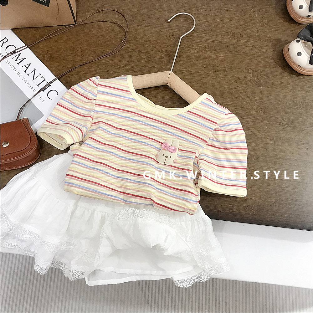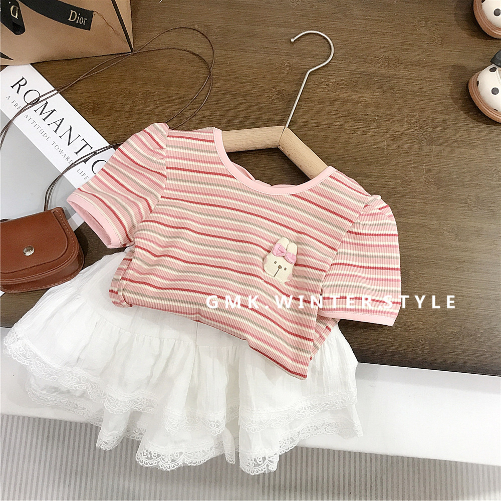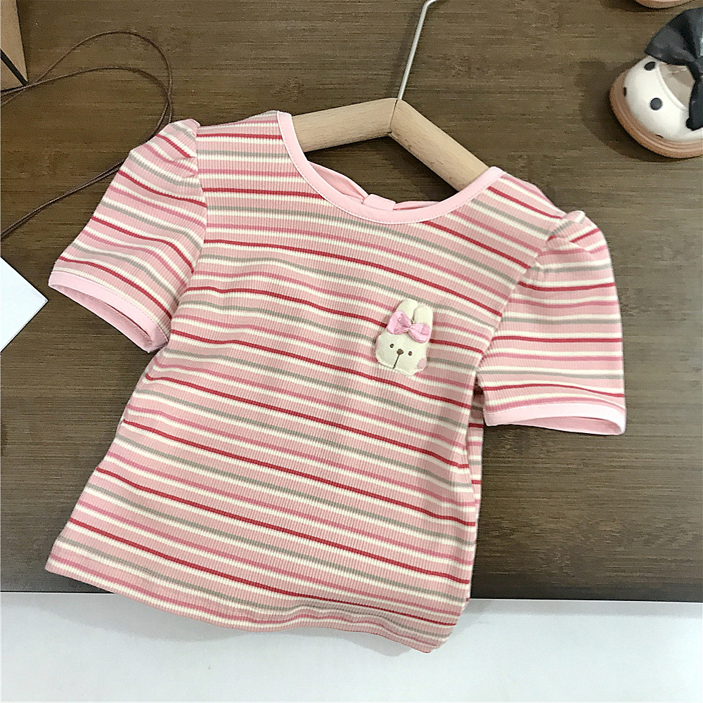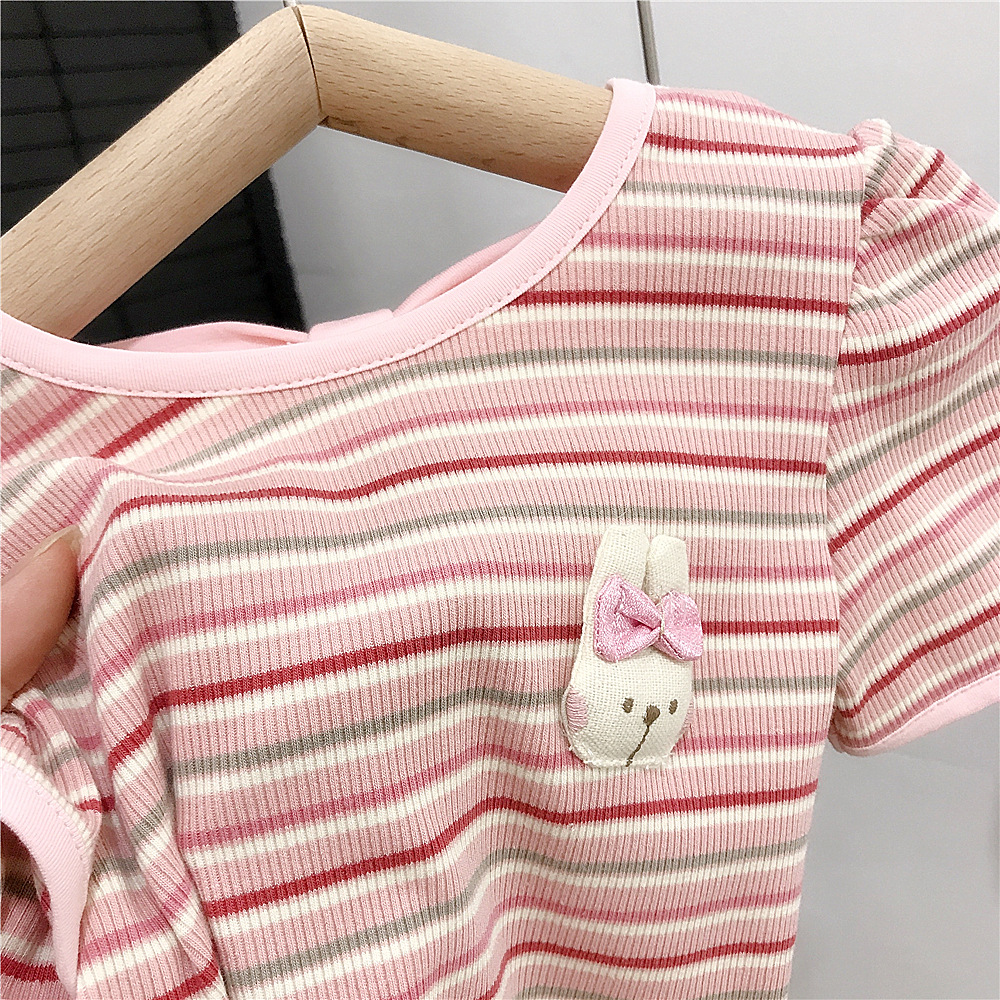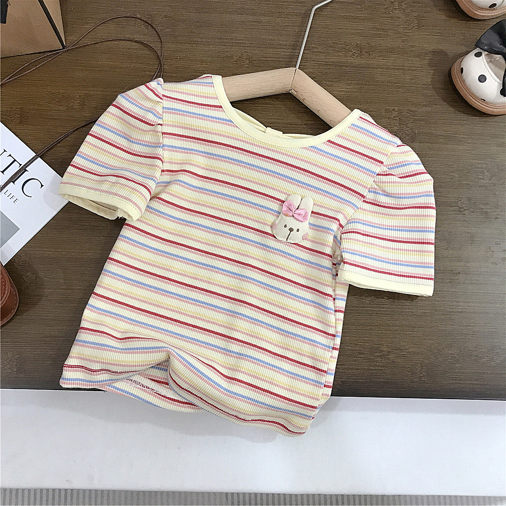 여아 반팔 스트라이프 티셔츠 한국식 베이비 탑 여름 신작 서양식 여름 바닥 셔츠 아동 유행 t 대외 무역