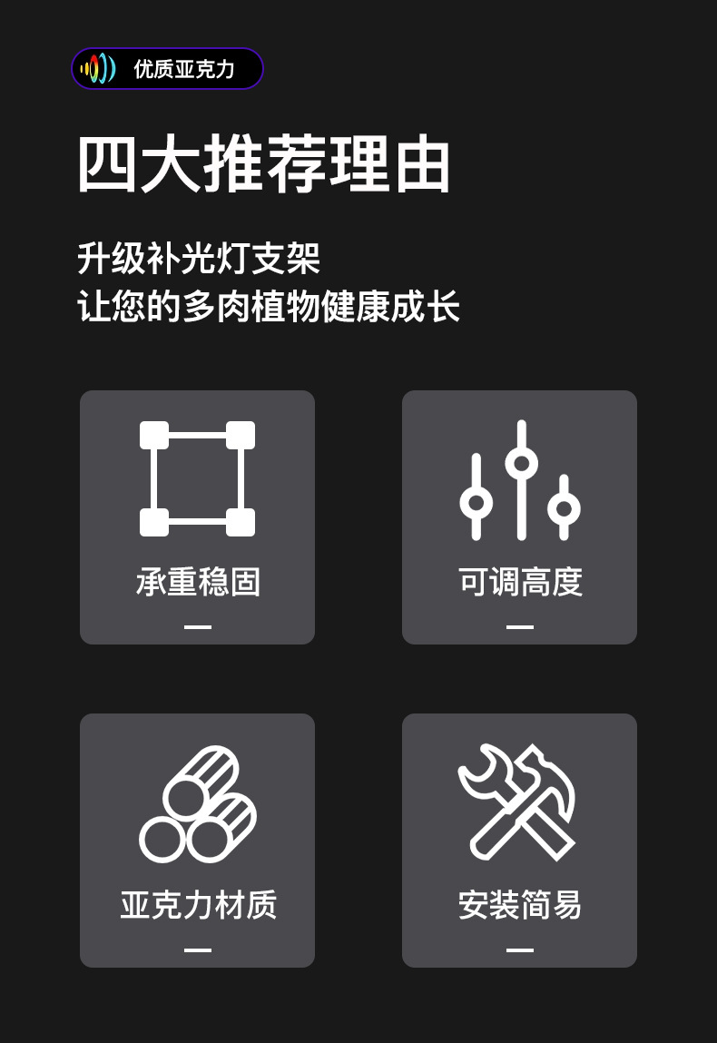 T8T20 식물 램프 수직 스탠드 다육 성장 보조 조명은 아크릴 램프 스탠드를 들어 올릴 수 있습니다