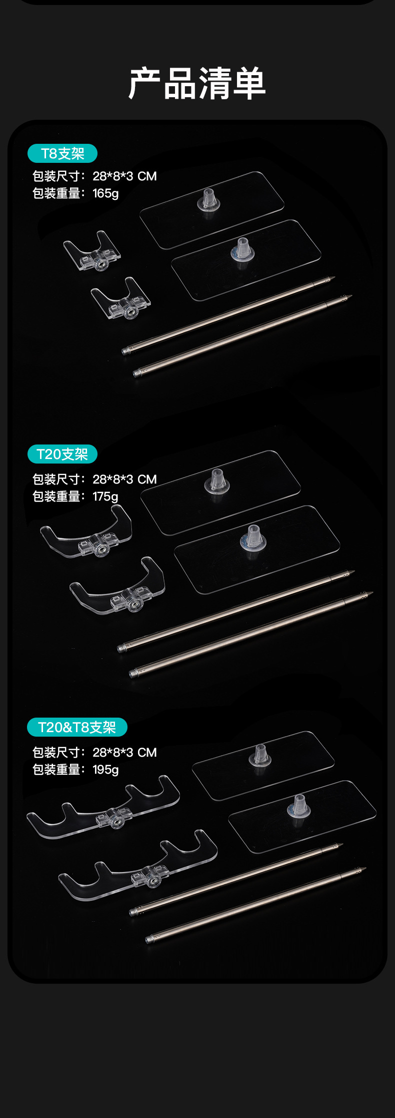 • 아크릴 T8 단일 행 [3CM 너비] 브래킷 쌍