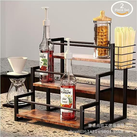 나무와 철제 결합 다층 레드 와인 디스플레이 랙 주방 향신료 보관 랙 다목적 사다리형 정리 랙