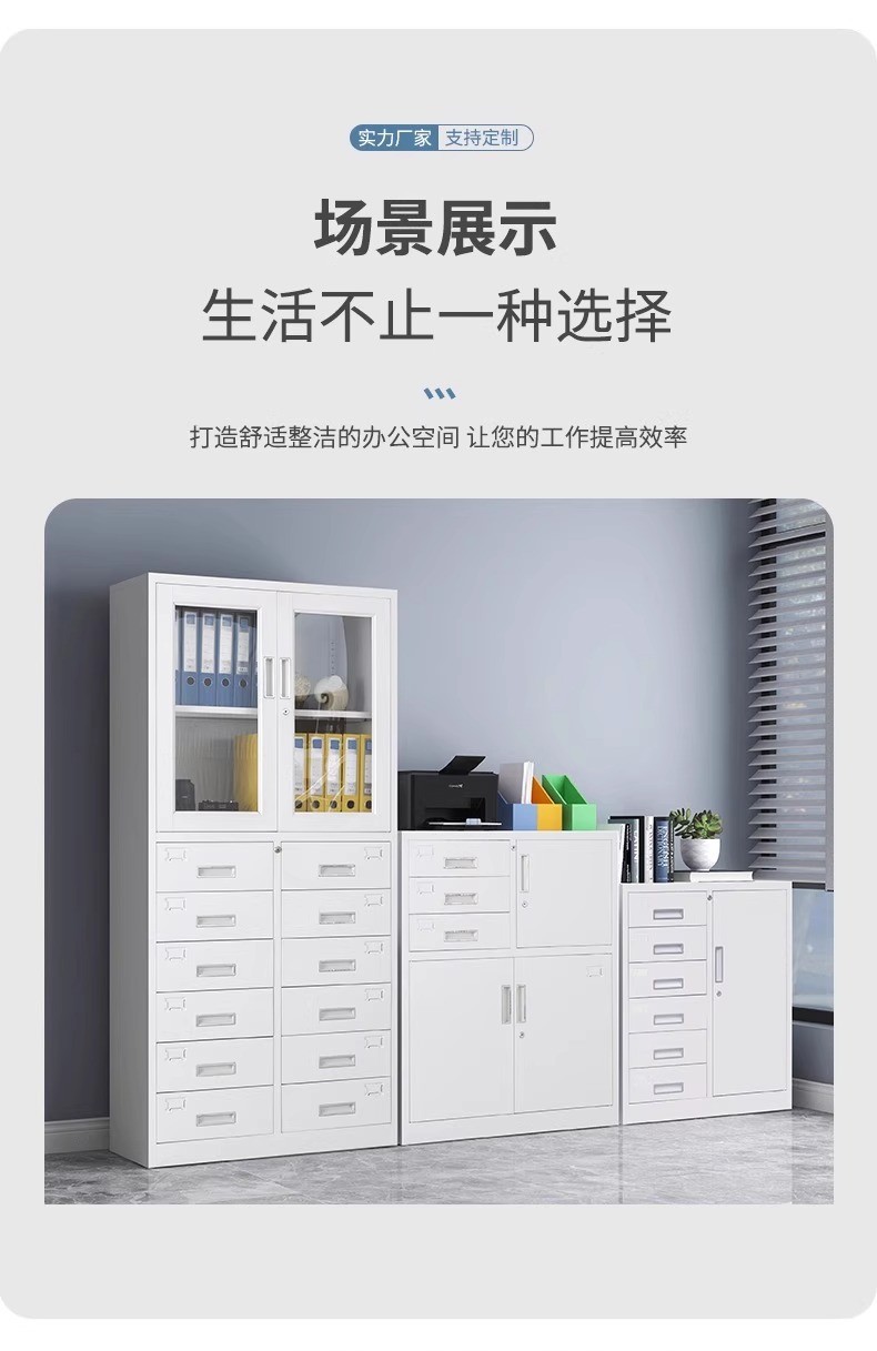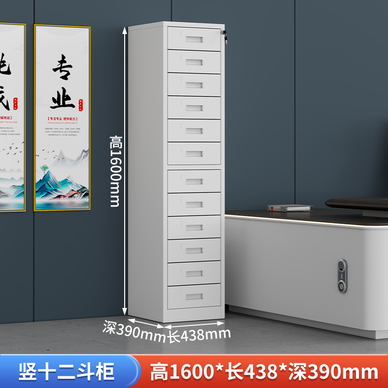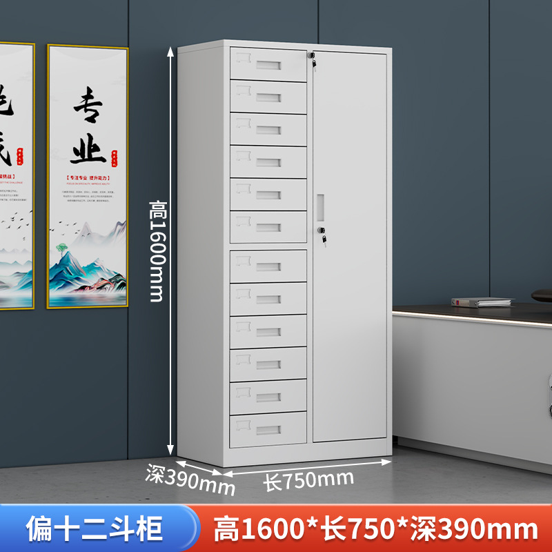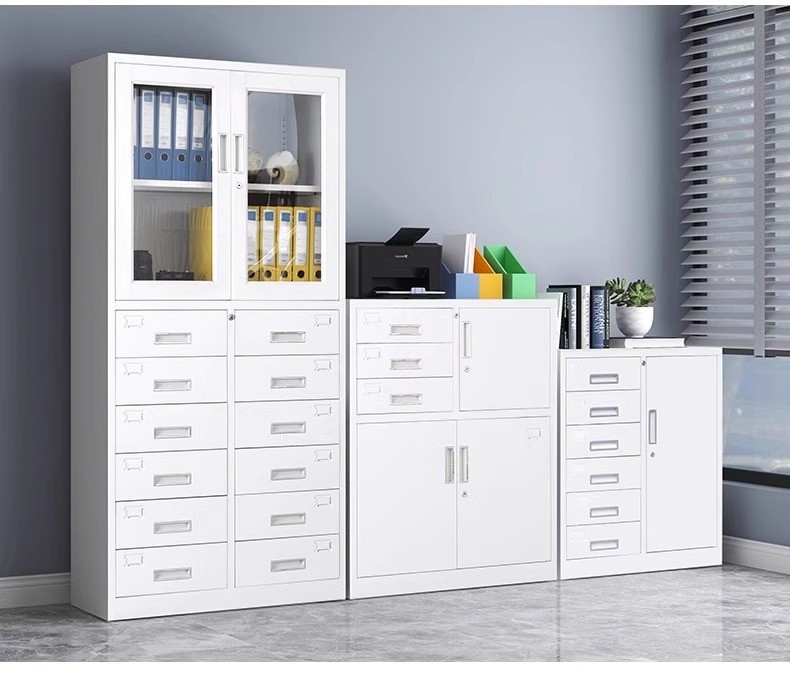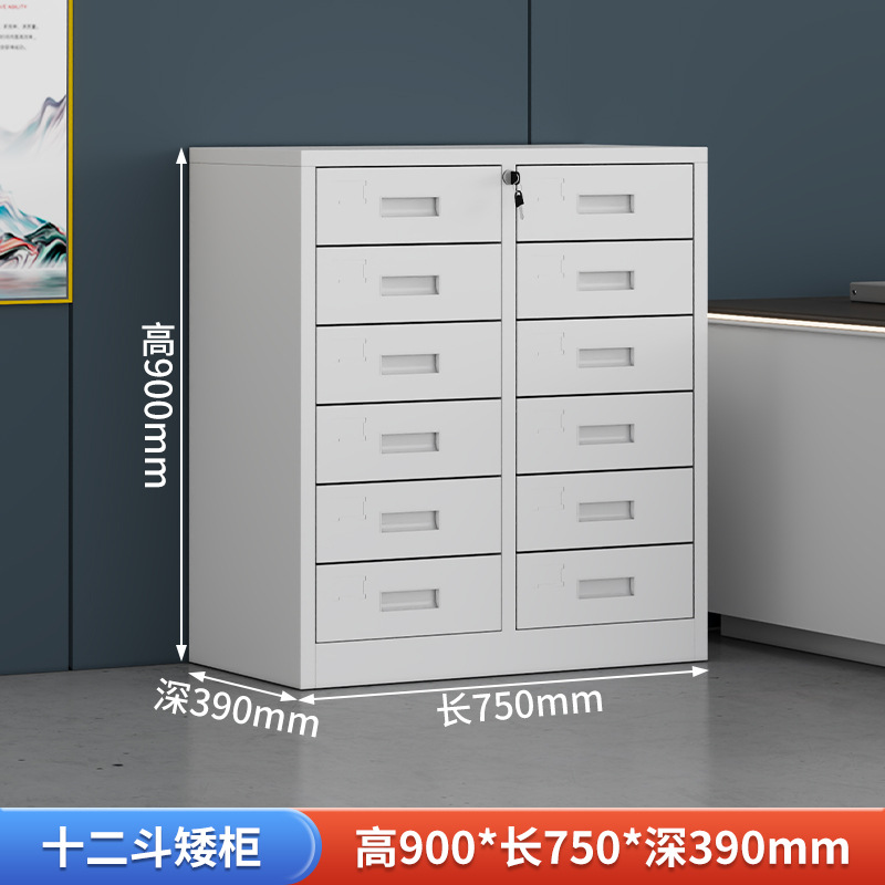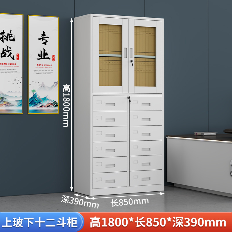 • 유리문이 있는 두꺼운 상단 및 하단 12단 서랍장