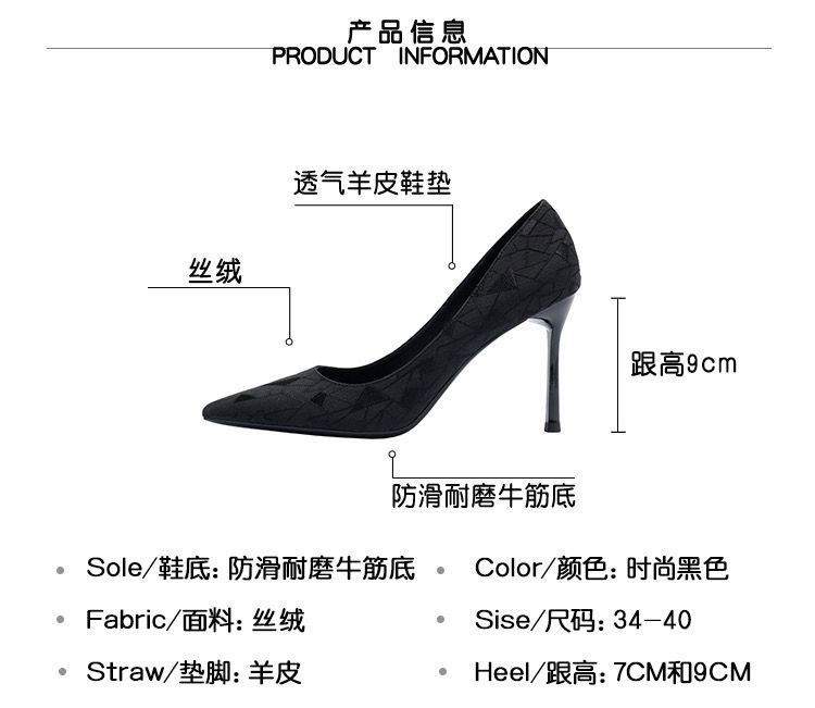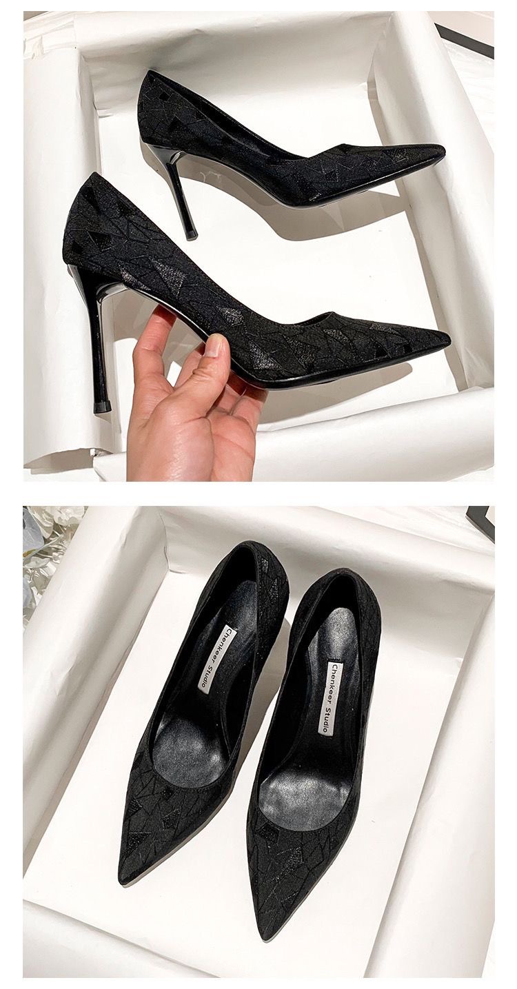 다재다능한 블랙 스틸레토 하이힐, 포인티드 토 힐, 우아한 여성 블랙 인터넷 연예인 섹시 스틸레토, 여성용 피곤하지 않은 신발스토어 가기