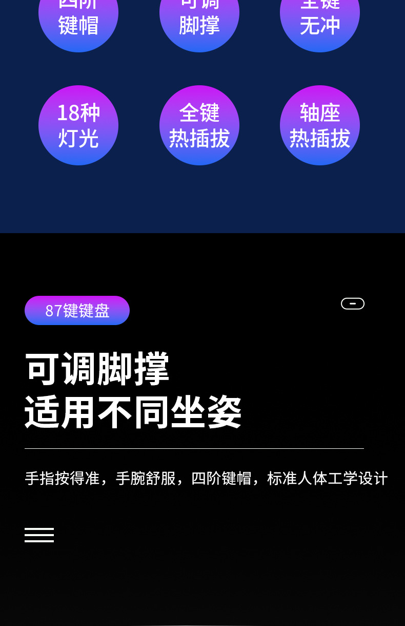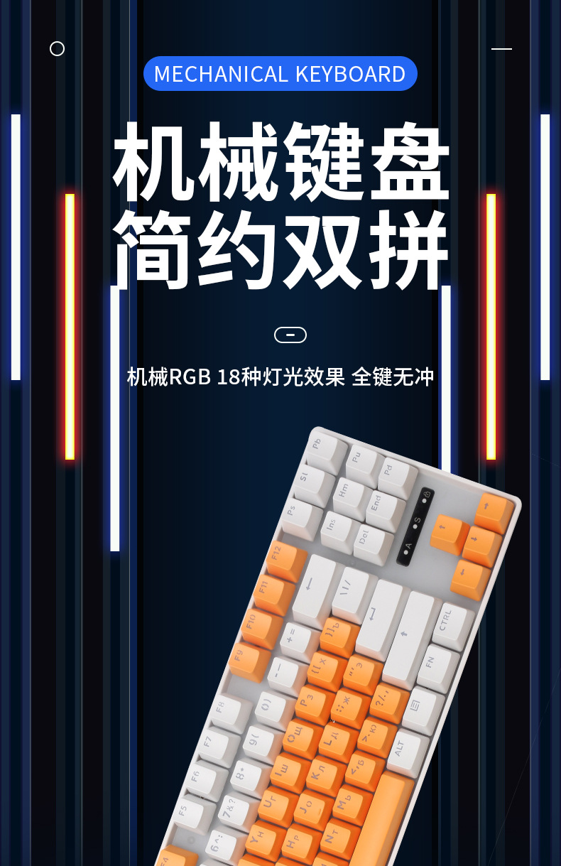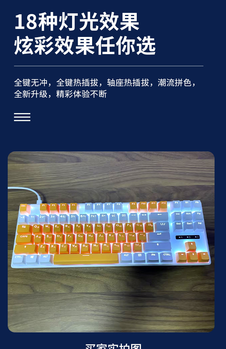 K87 키 구성 18가지 조명, 심플한 듀얼 컬러 키보드, 고품질, 고가치 키보드, 사무실의 좋은 도우미스토어 가기