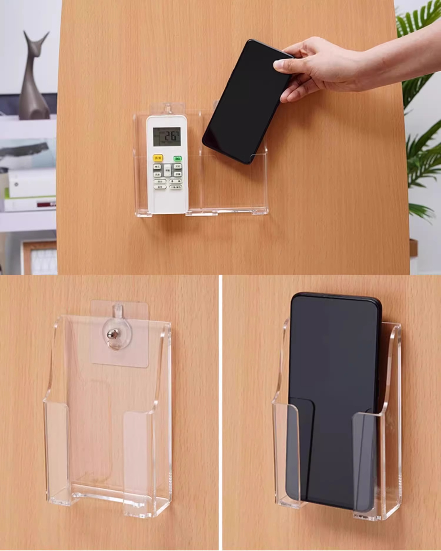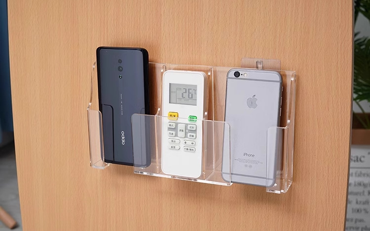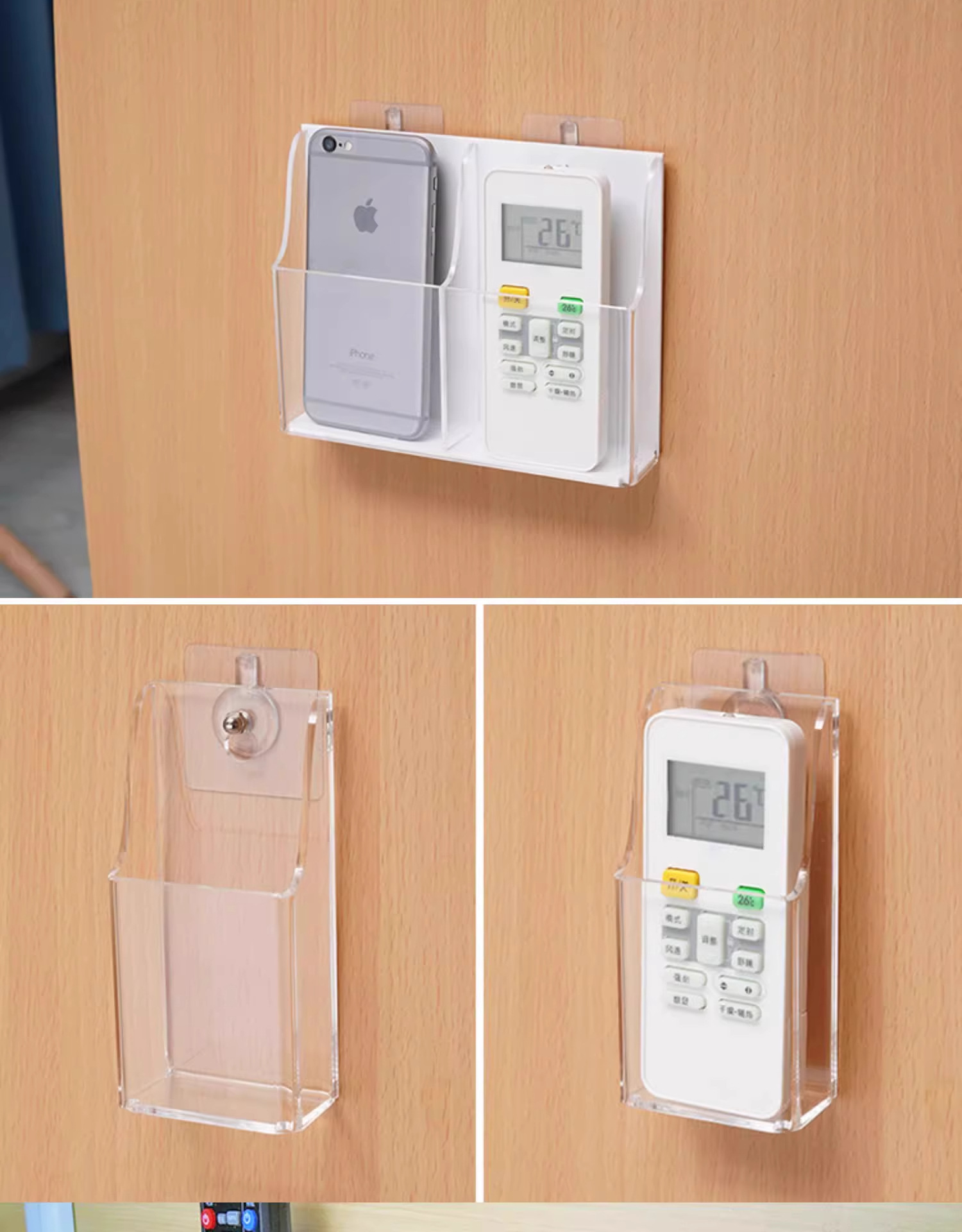 에어컨 및 TV 리모컨 수납함 벽걸이형 수납함 휴대폰 거치대 무타공 수납